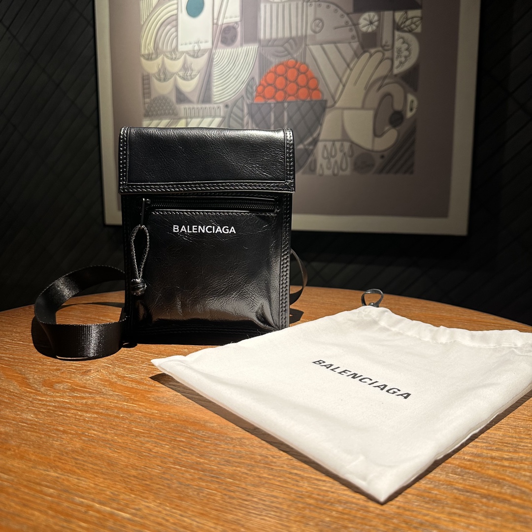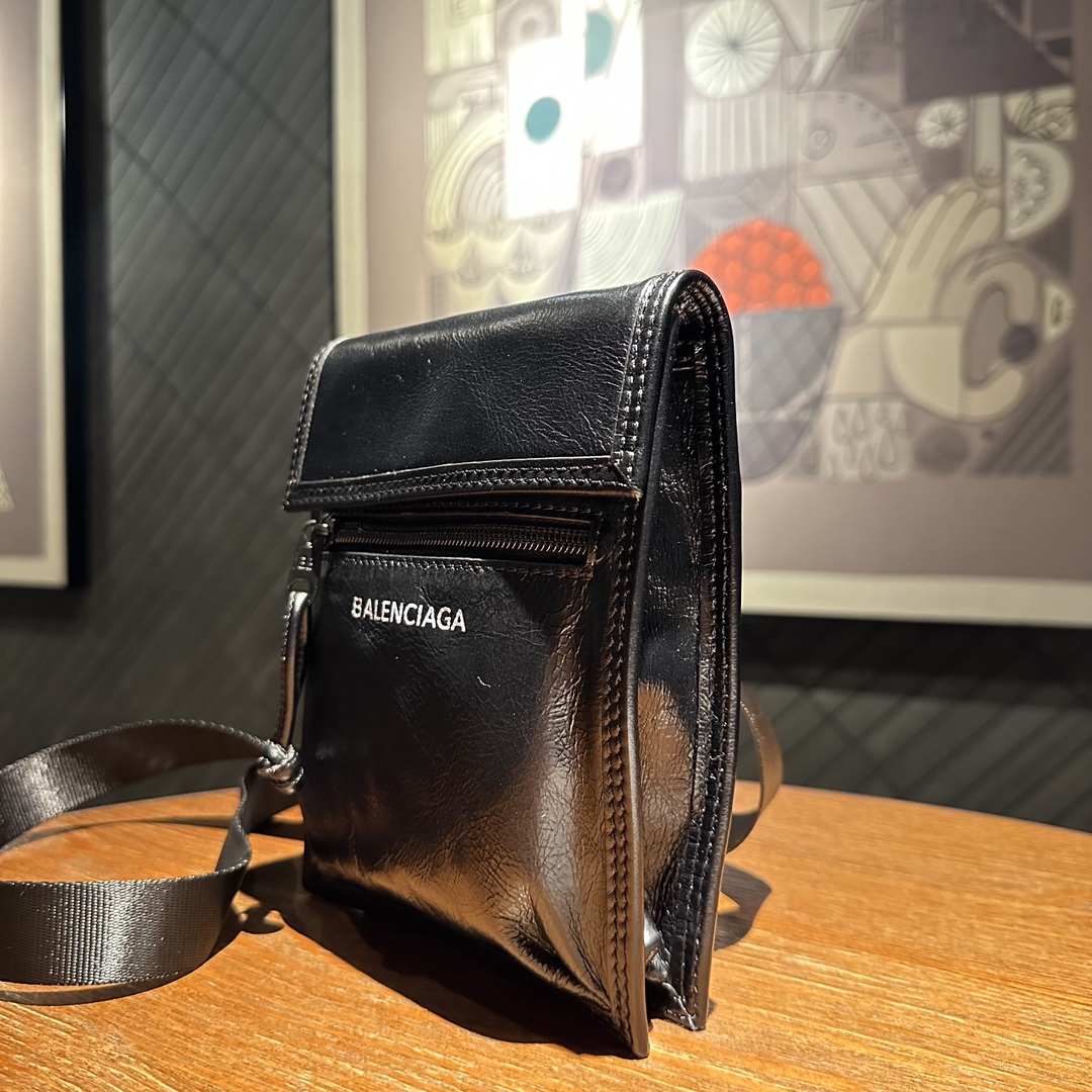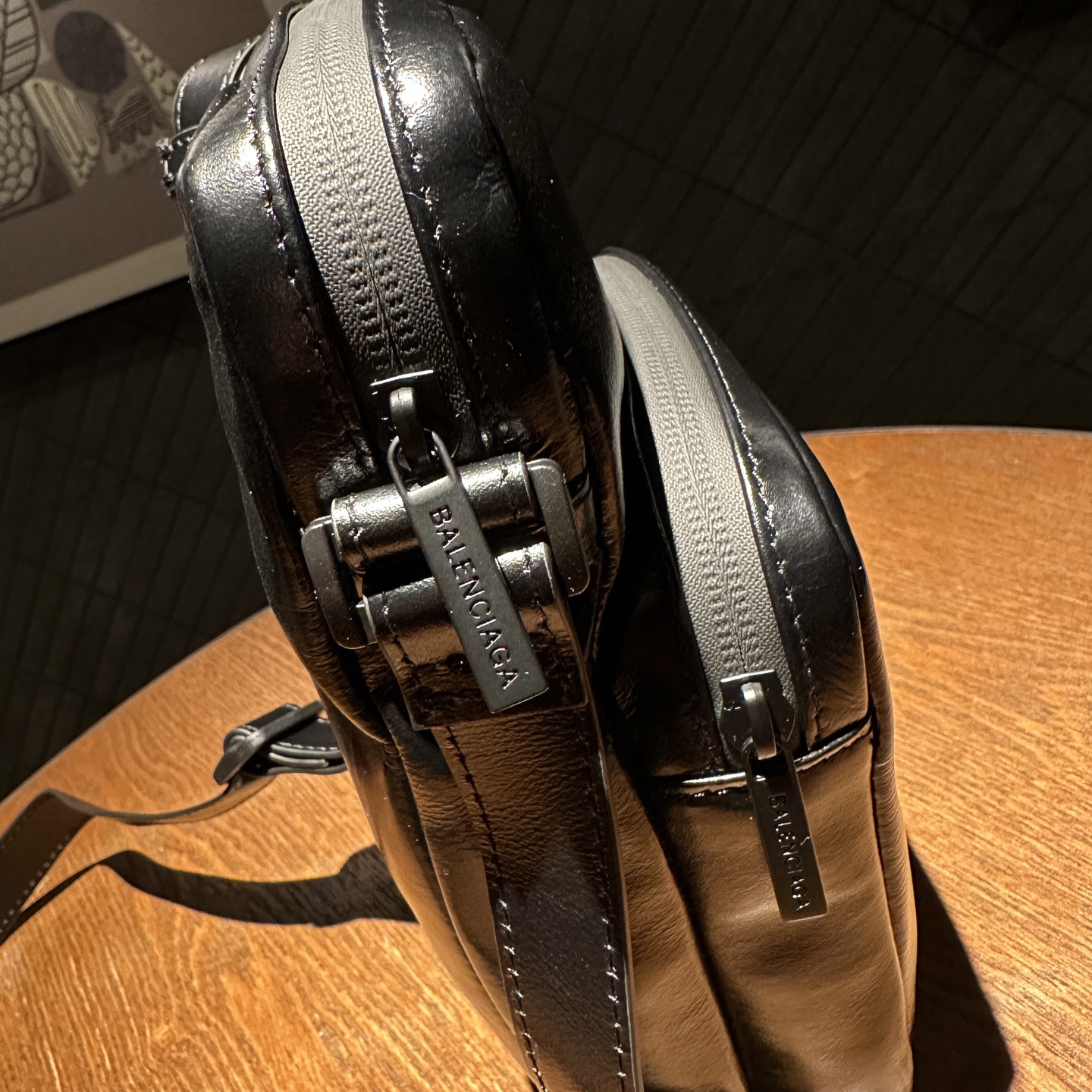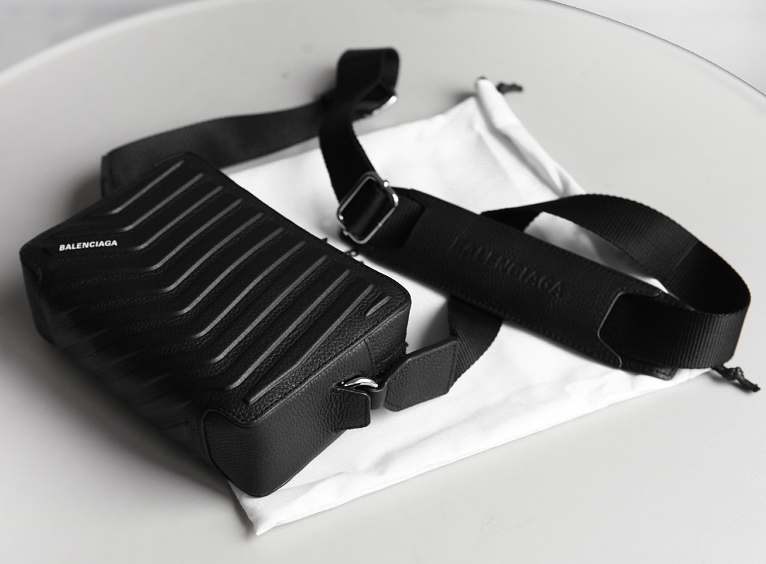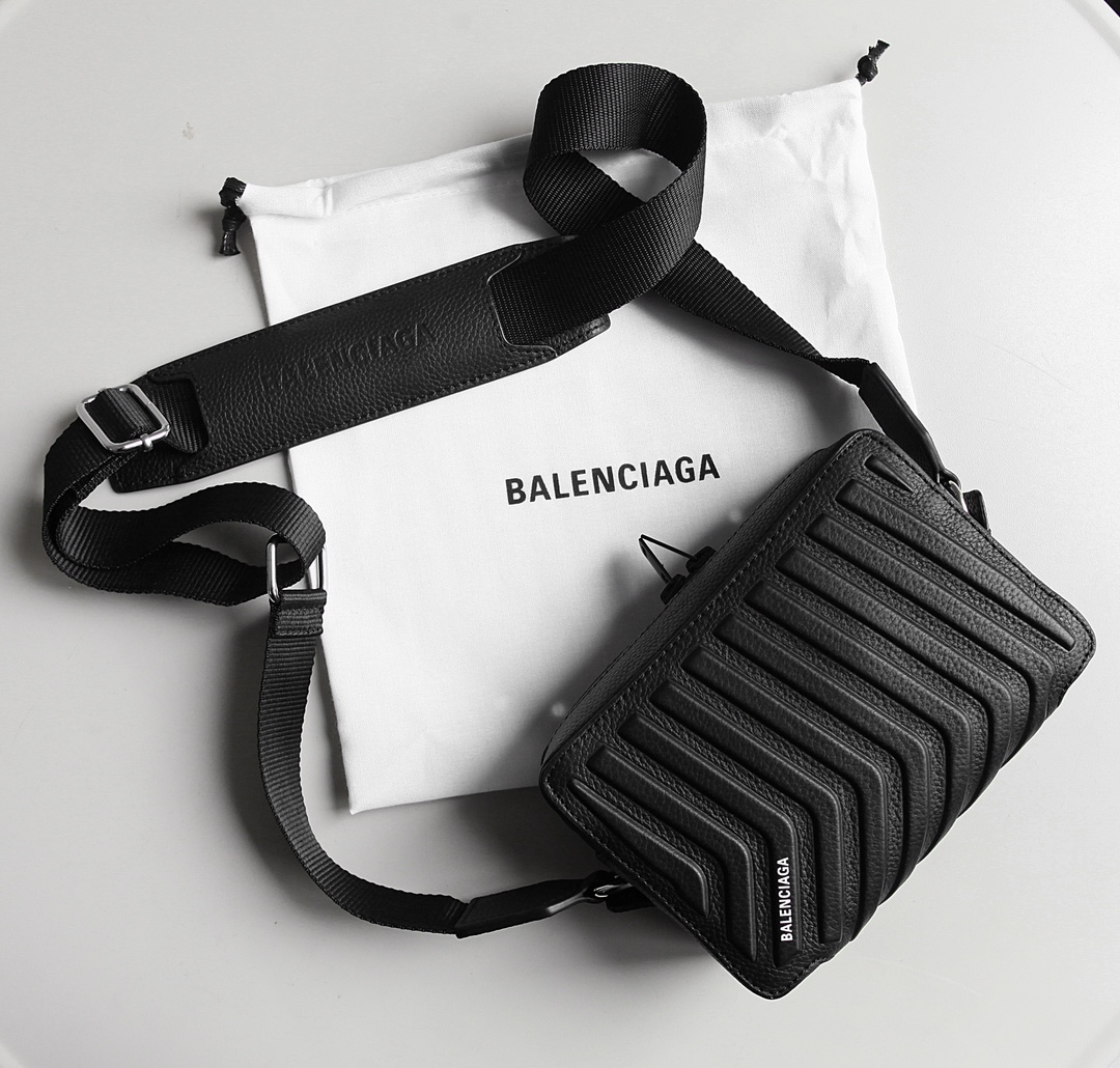 NIGO Balenciaga Men's Black Logo Embossed Shoulder Strap Leather Camera Bag Tote Shoulder Crossbody Bags #nigo75668