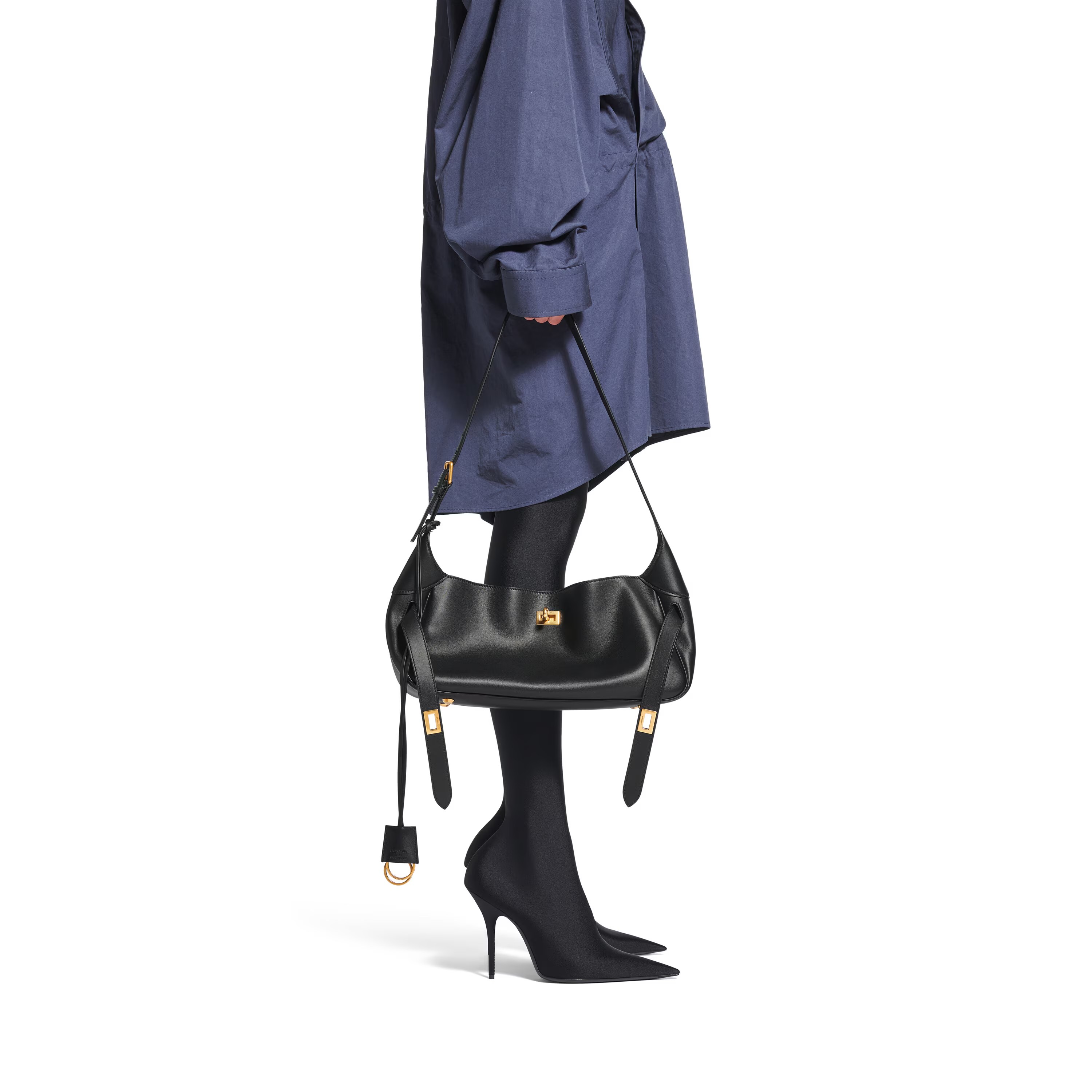 NIGO Balenciaga Women's Black BEL AIR Small Shoulder Bag Adjustable Strap Leather Handbag Bags 8106802ABAV1000 Ngvp #nigo9833