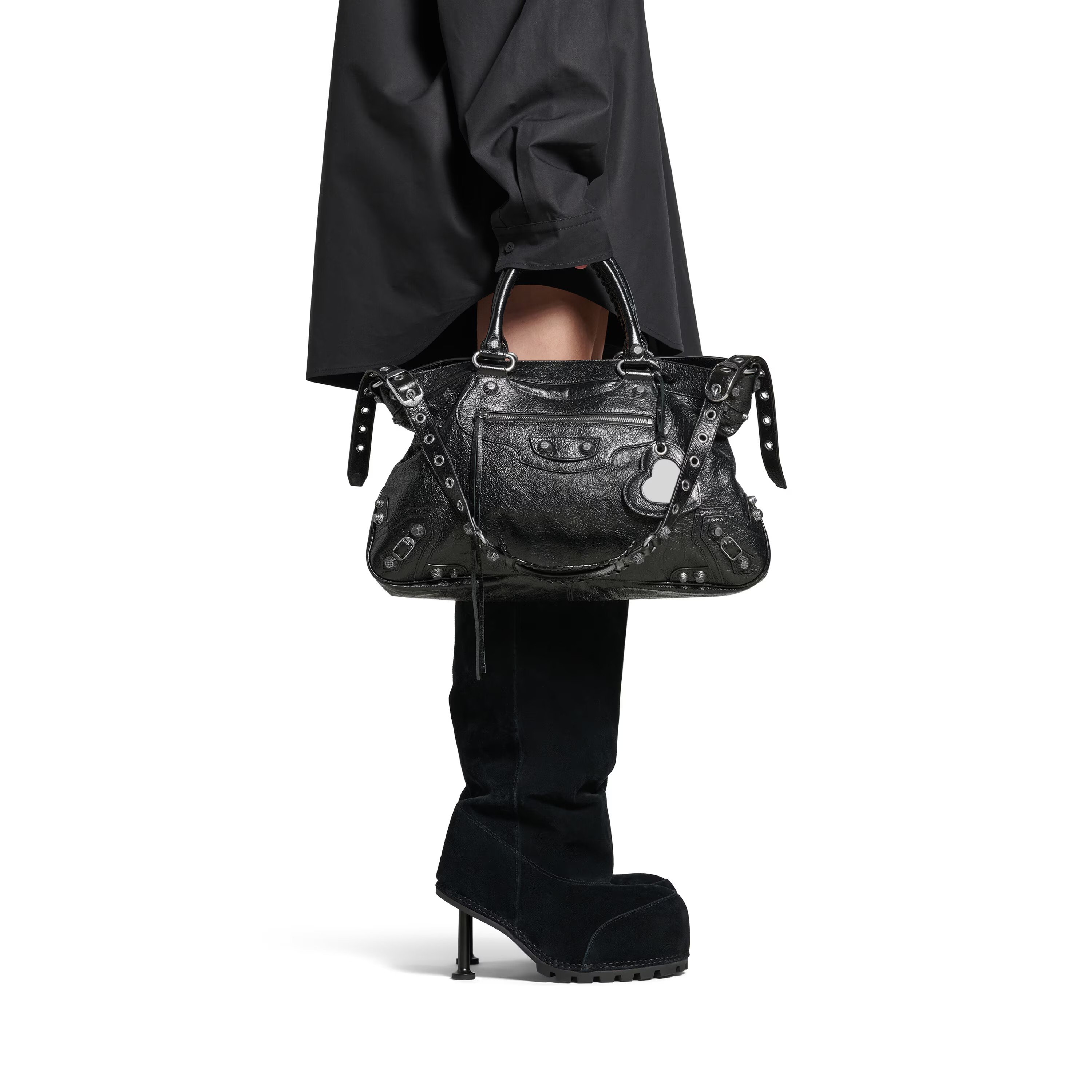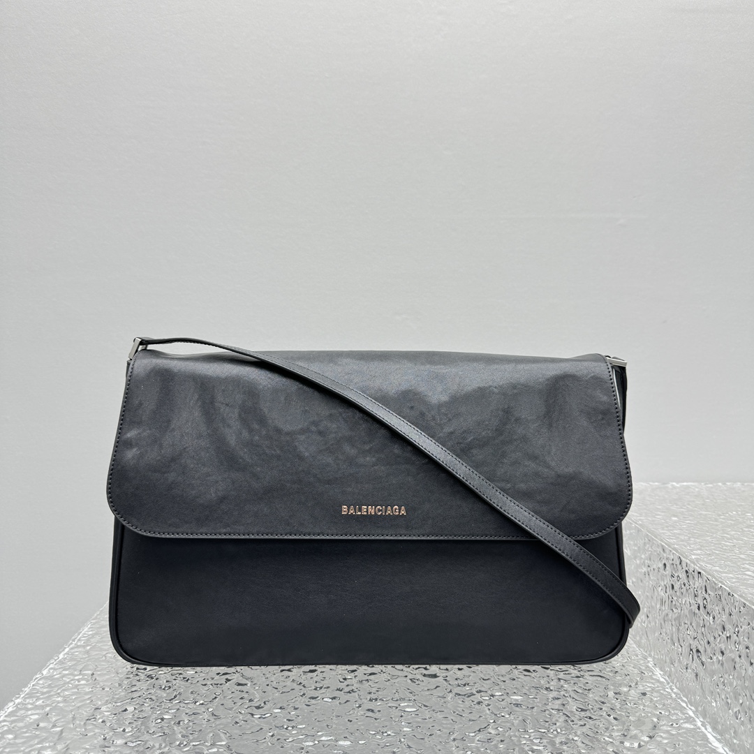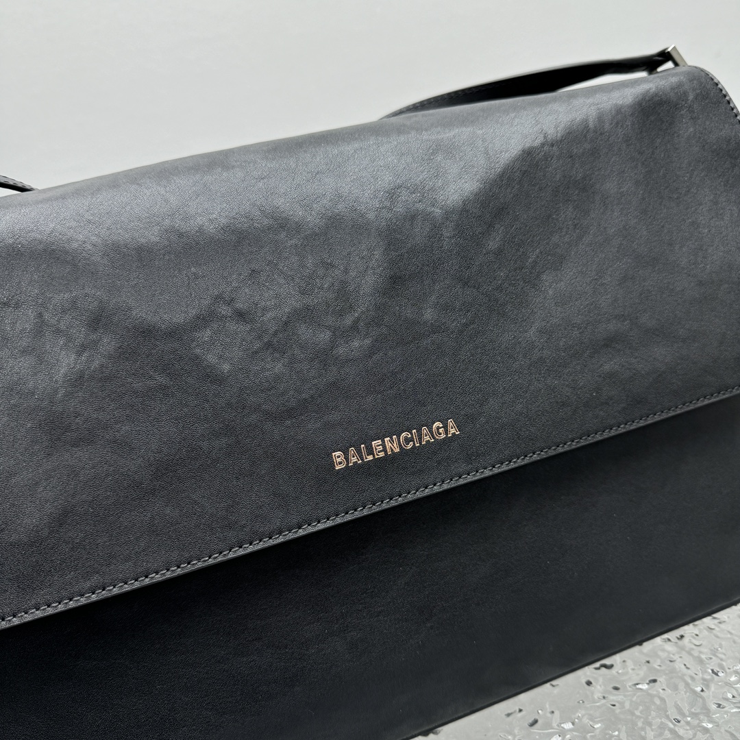 NIGO Balenciaga Grungy Men's Black Washed Smooth Cow Leather Medium Messenger Bag Crossbody Shoulder Bags #nigo74356