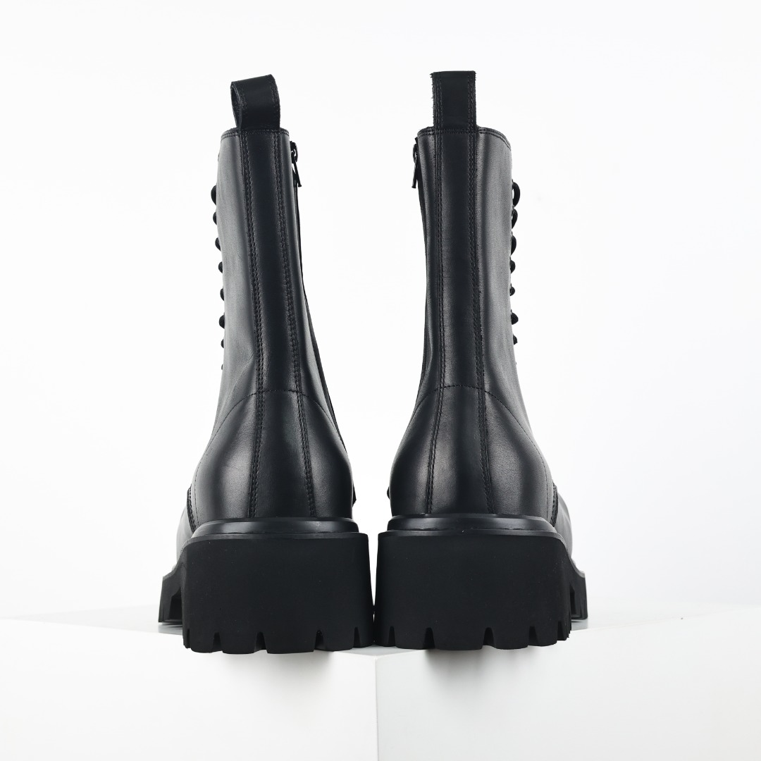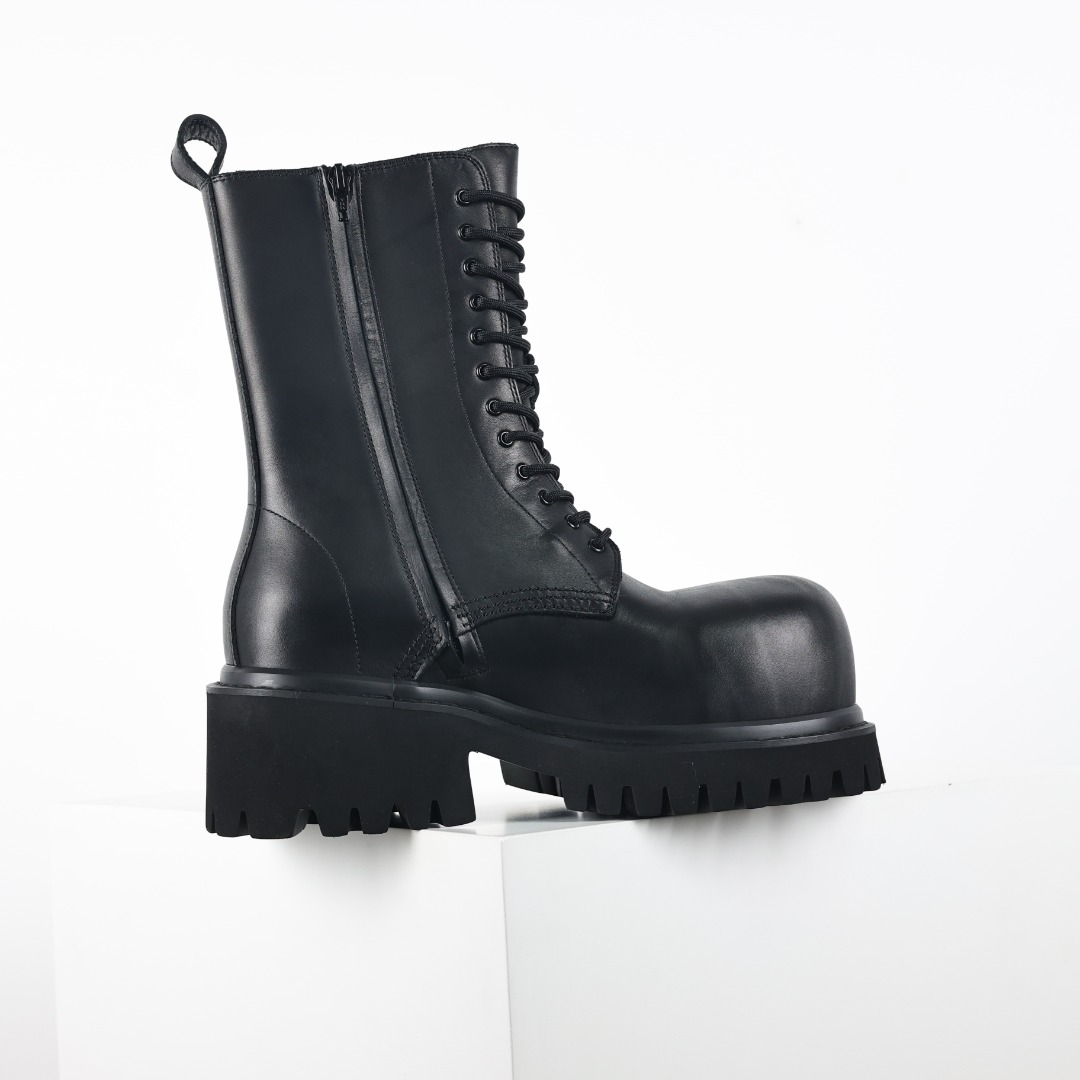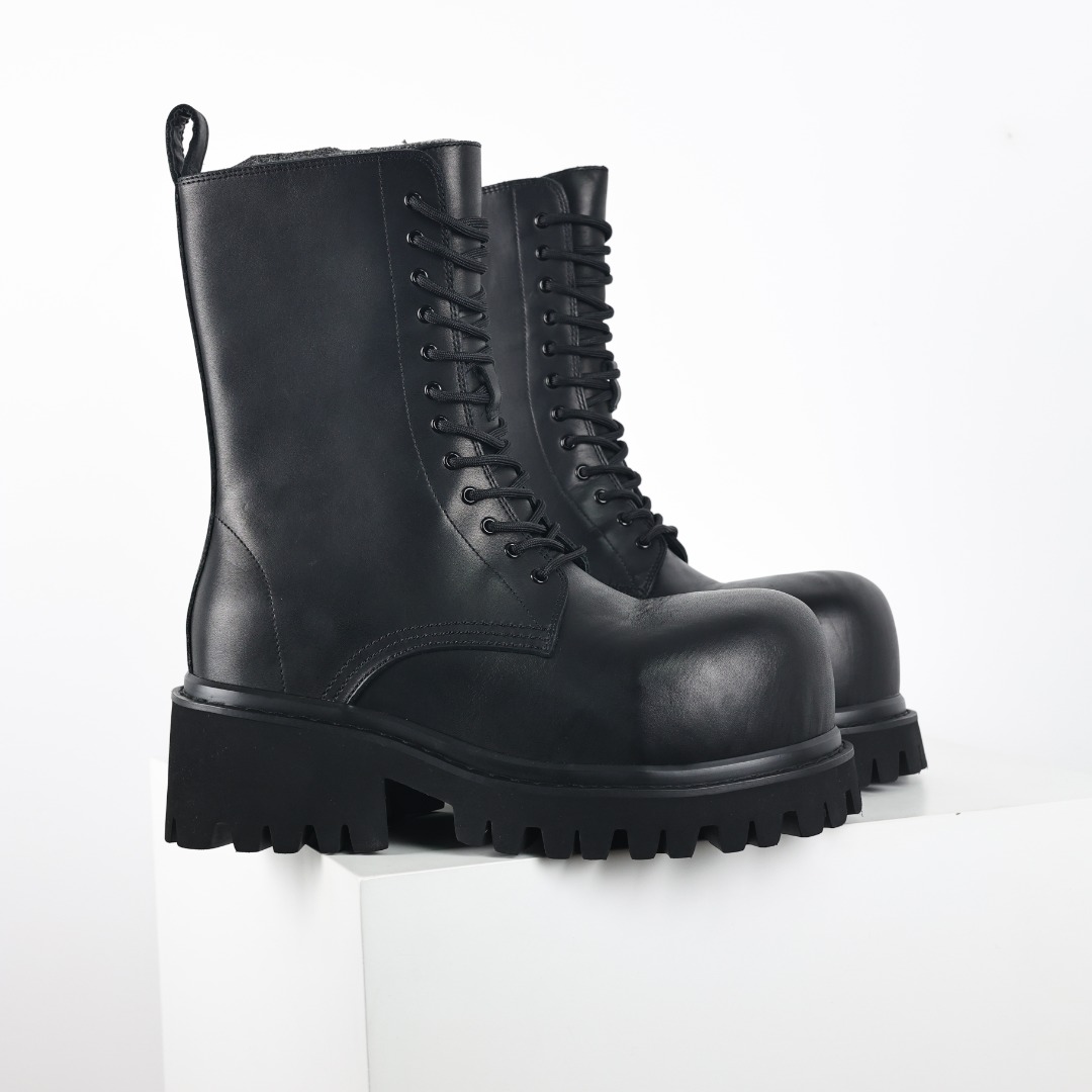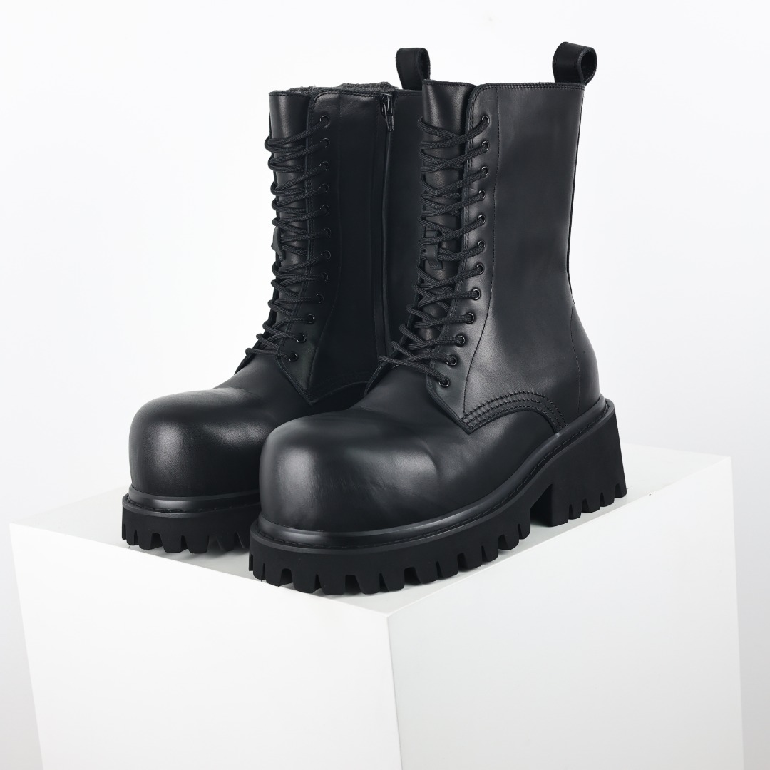 NIGO Balenciaga Men's Fall Winter Black Stomper Leather Boots Zipper Round Toe Casual Shoes Ngvp #nigo9646