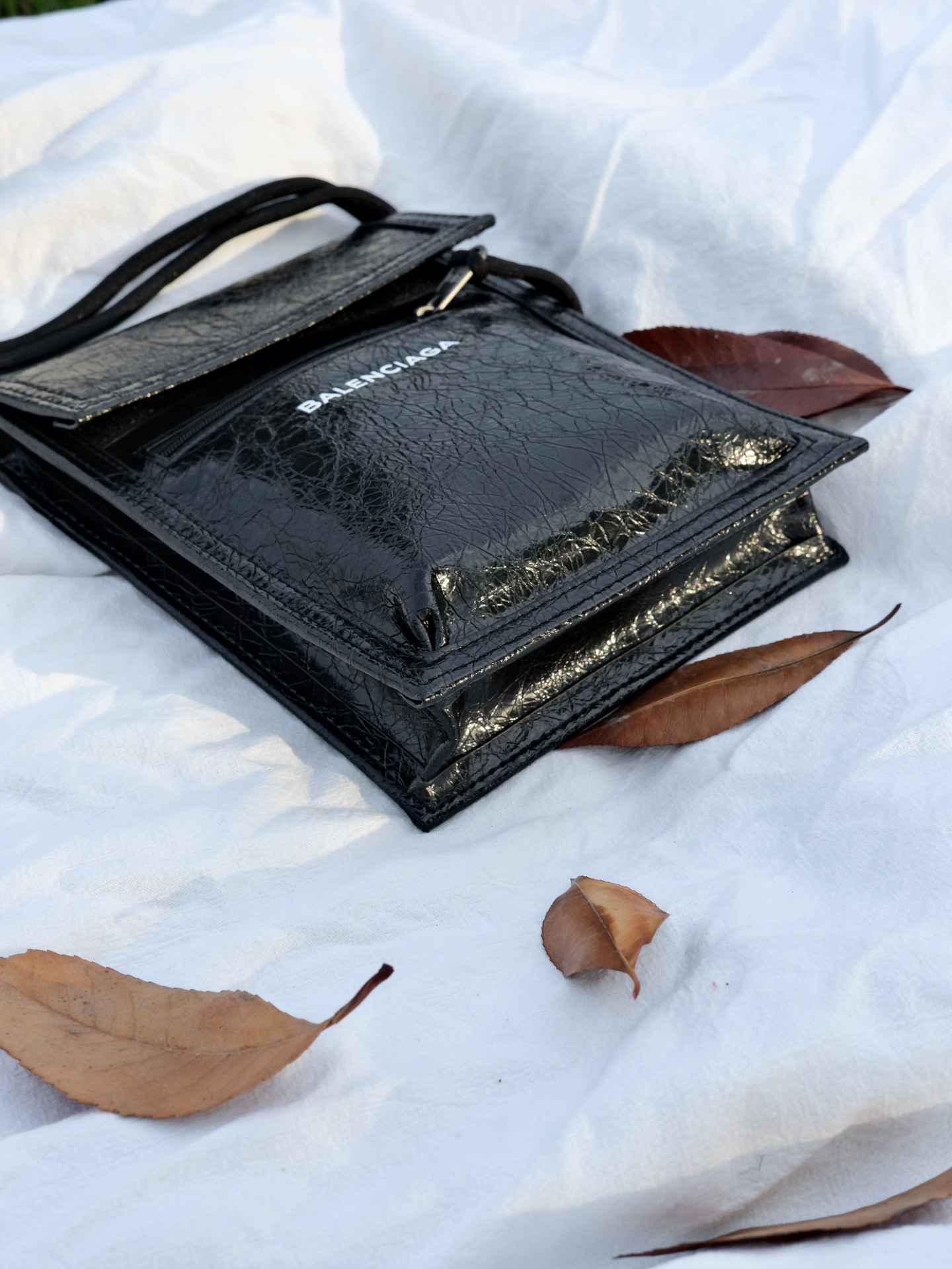 NIGO Balenciaga Men's Black Logo Lamb Leather Cell Phone Bag Shoulder Crossbody Bags #nigo99851