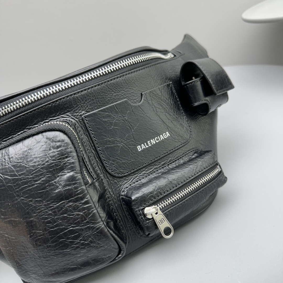 NIGO Balenciaga Superbusy Men's Black Fine Grain Sheep Leather Multi-Pocket Functional Waist Bag #nigo99555