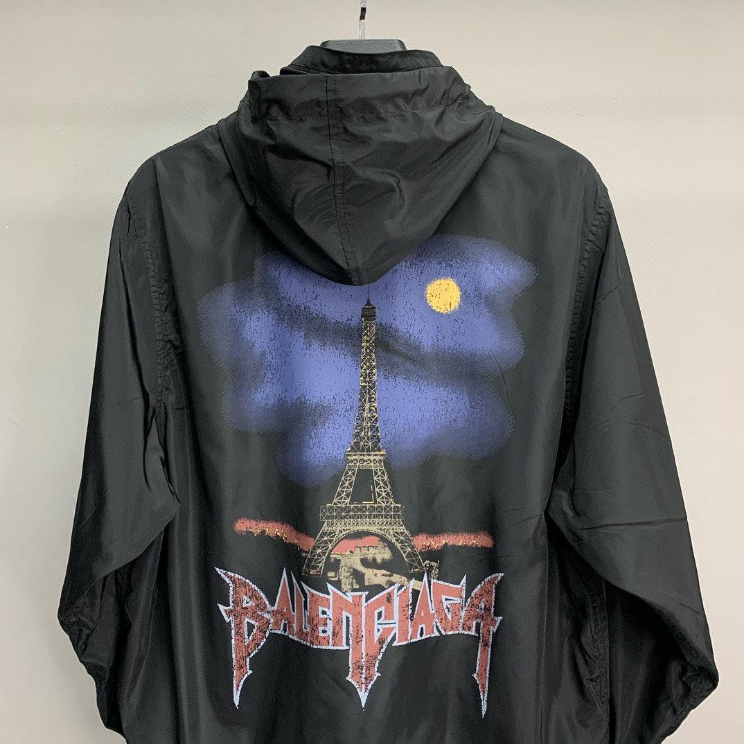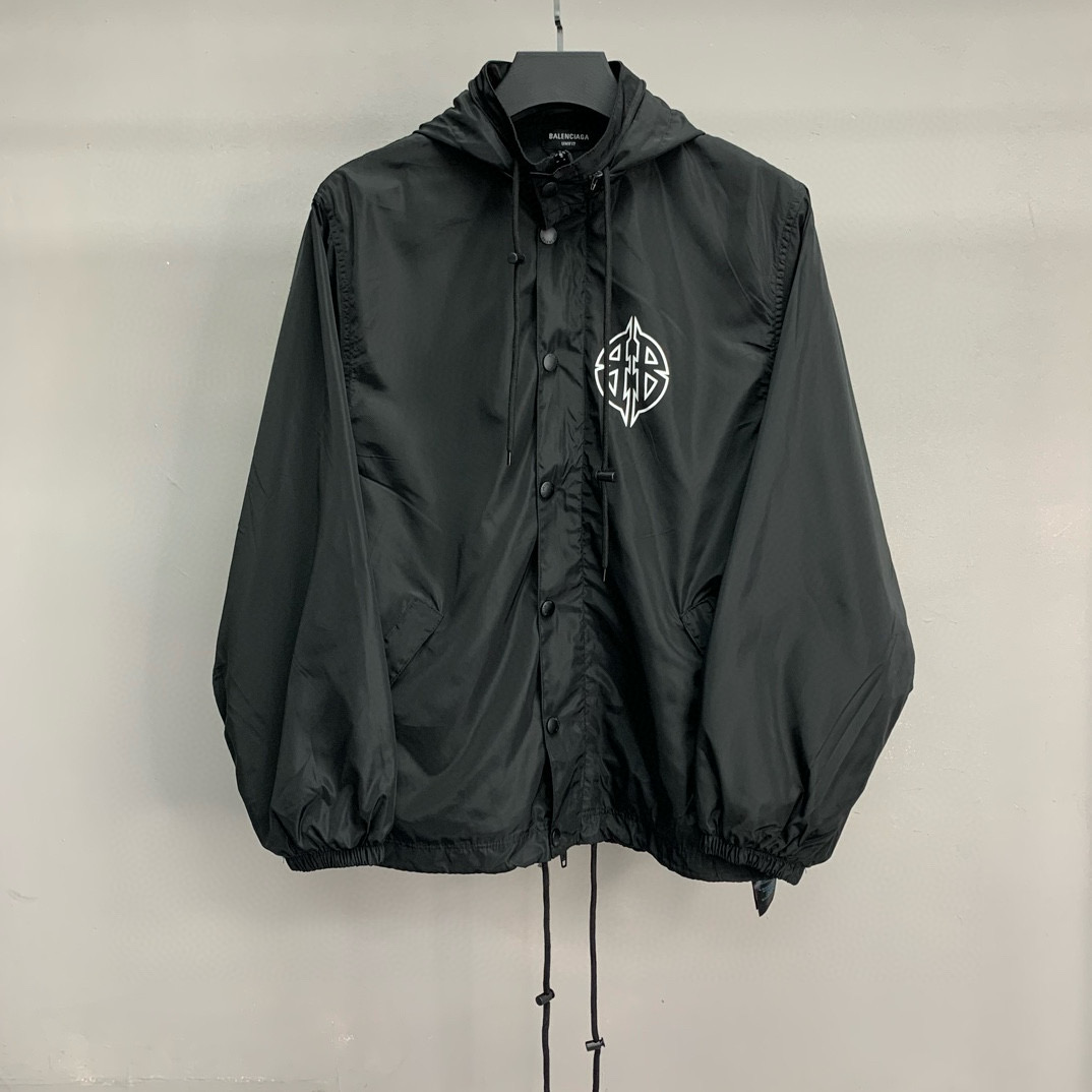 NIGO Balenciaga Men's Spring/Summer Black Tech Poplin Single Breasted Zip Hooded Jacket #nigo99428