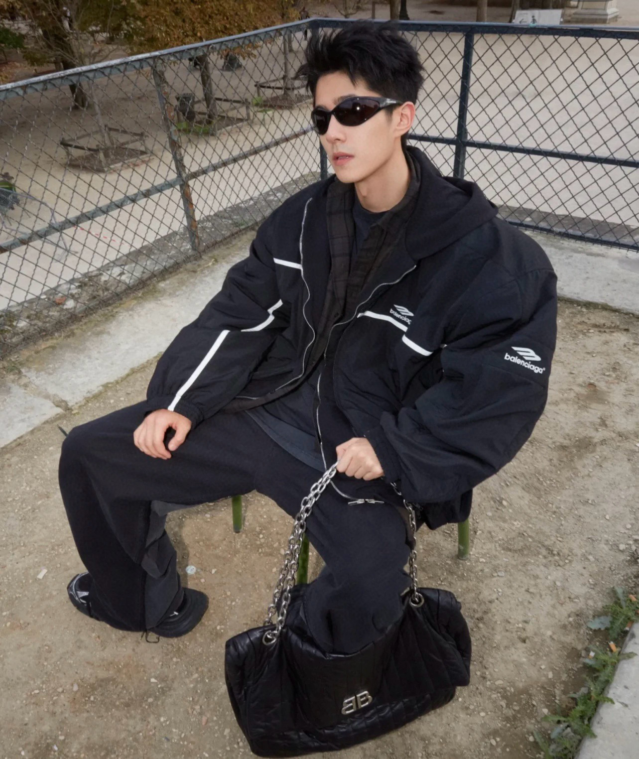 NIGO Balenciaga Men's Fall/Winter Black Logo Labeled Single Breasted Regular Fit Long Sleeve Leather Jacket #nigo98955