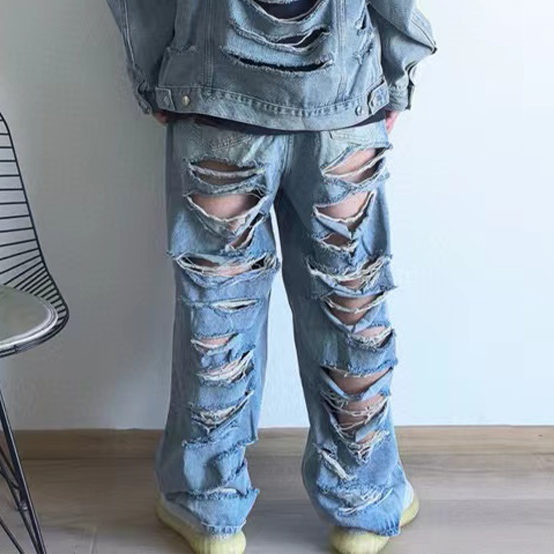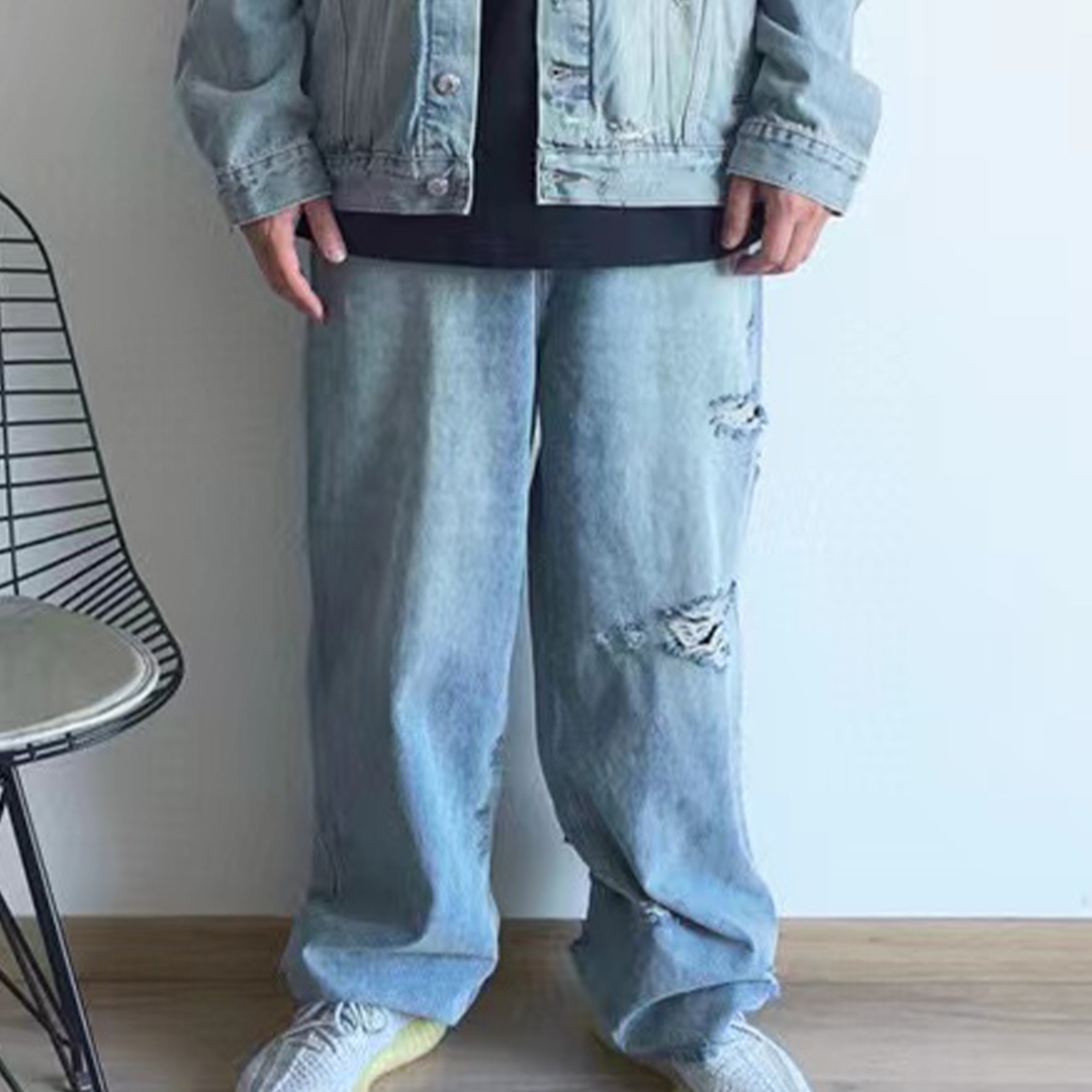 NIGO Balenciaga Men's Spring And Fall Cotton Blue Washed Hole Loose Long-Sleeved Denim Jacket Casual Pants Ngvp #nigo8143