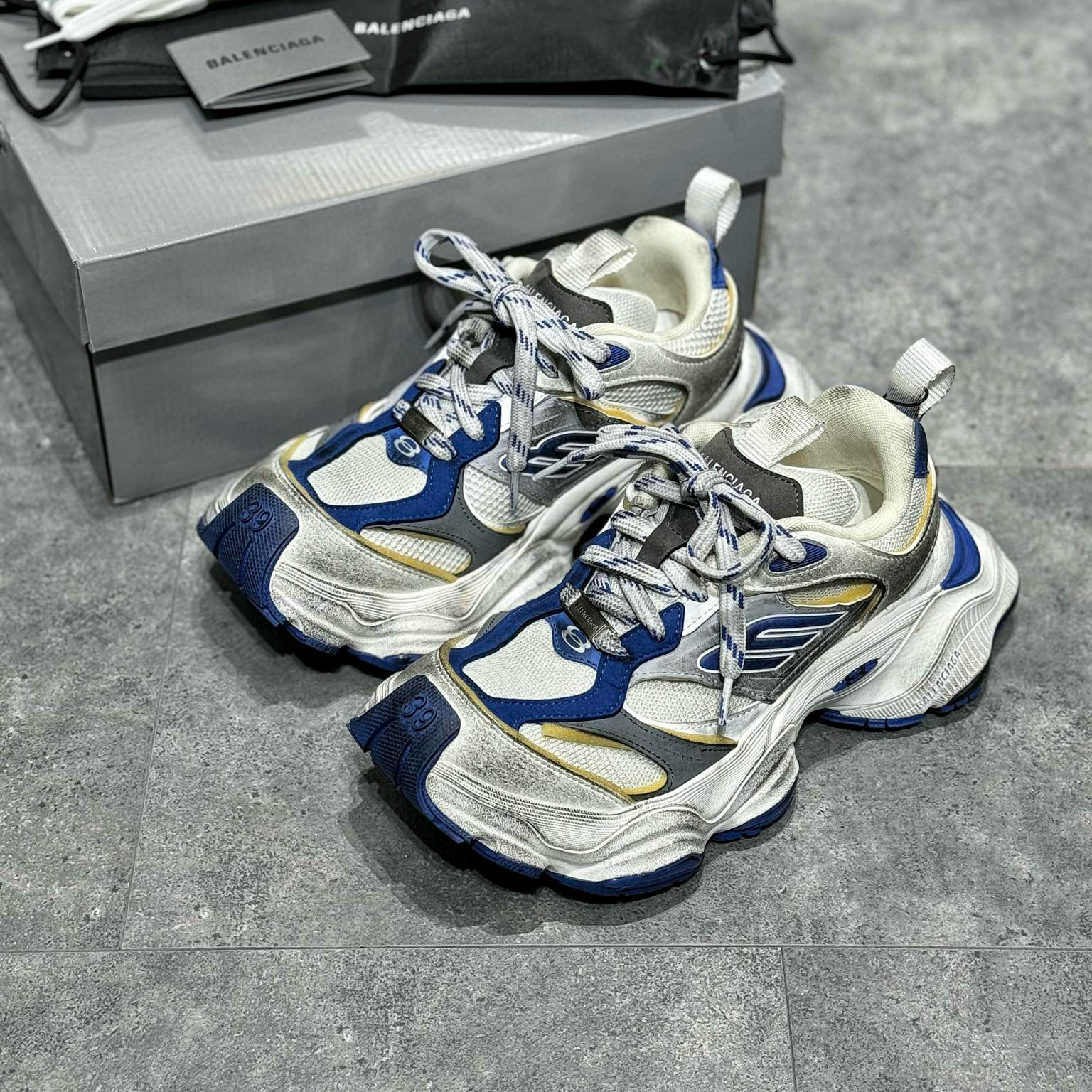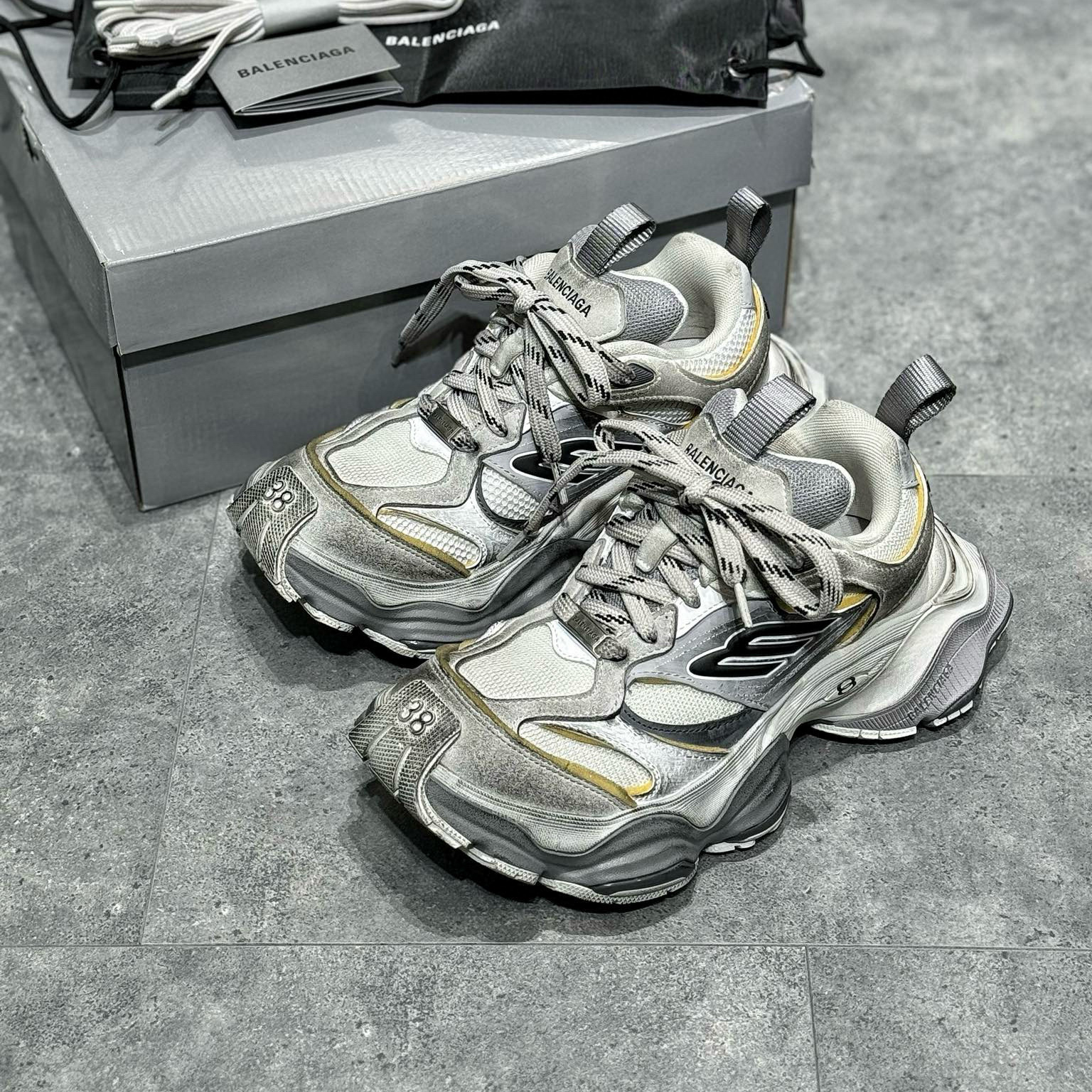 NIGO Balenciaga Men's Aged Leather Mesh Crafted Low Top Lace Up Sneakers Shoes #nigo97476