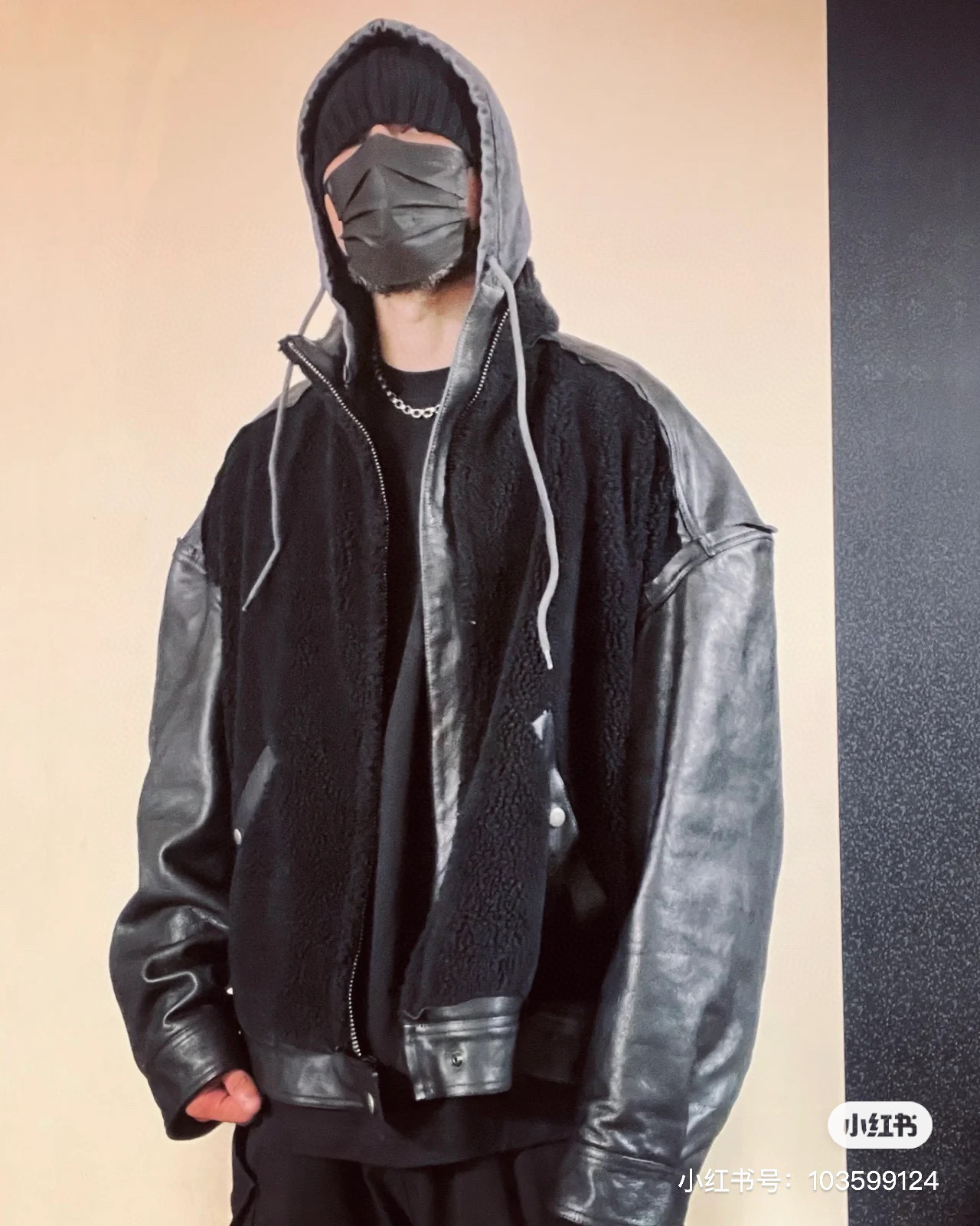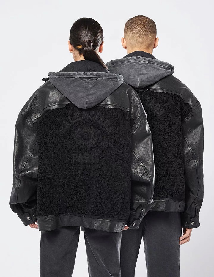 NIGO Balenciaga Men's Winter Black Zipper Long Sleeve Hooded Pilot Loose Leather Jacket Ngvp #nigo6986