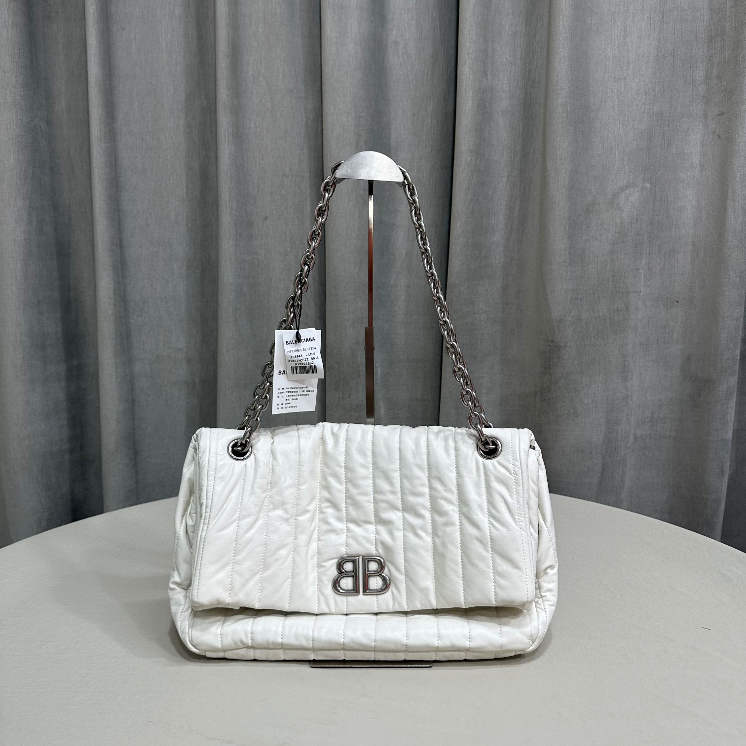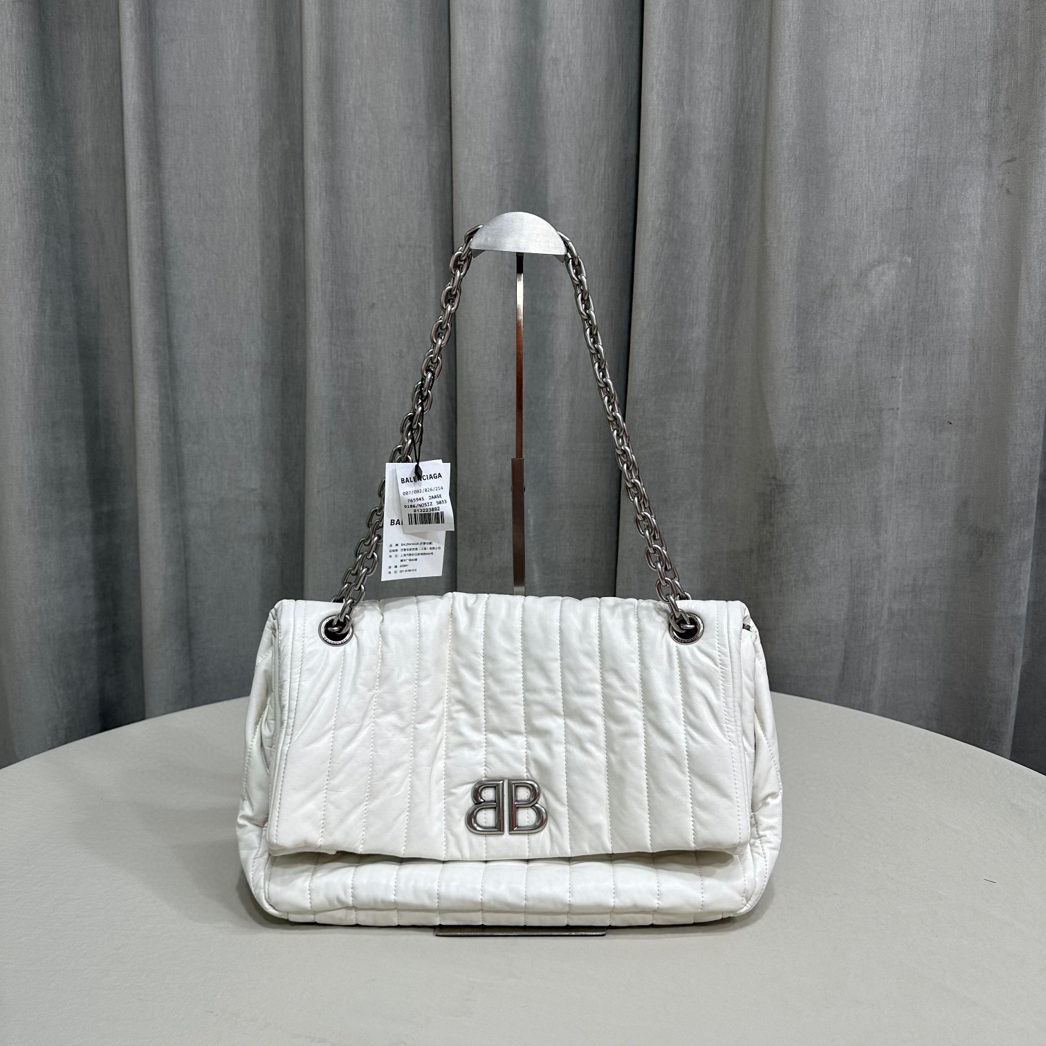 Balenciaga MONACO White Leather Chain Crossbody Bag #nigo21836