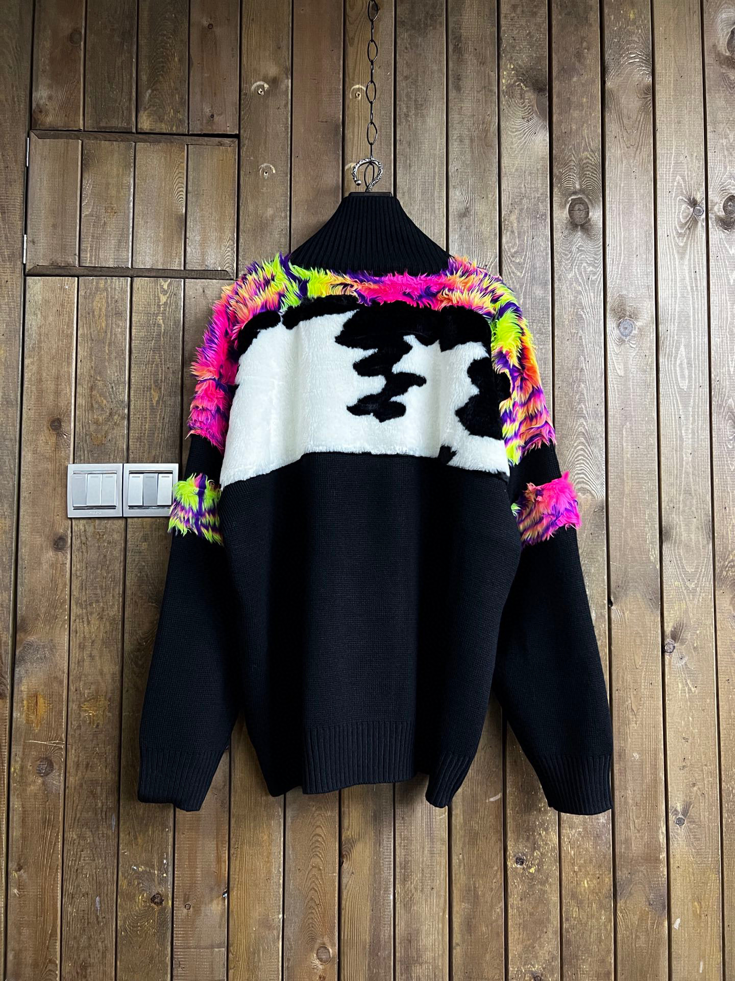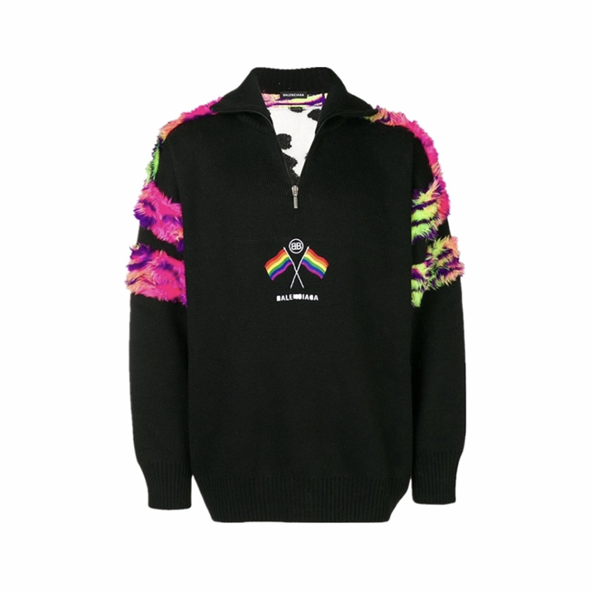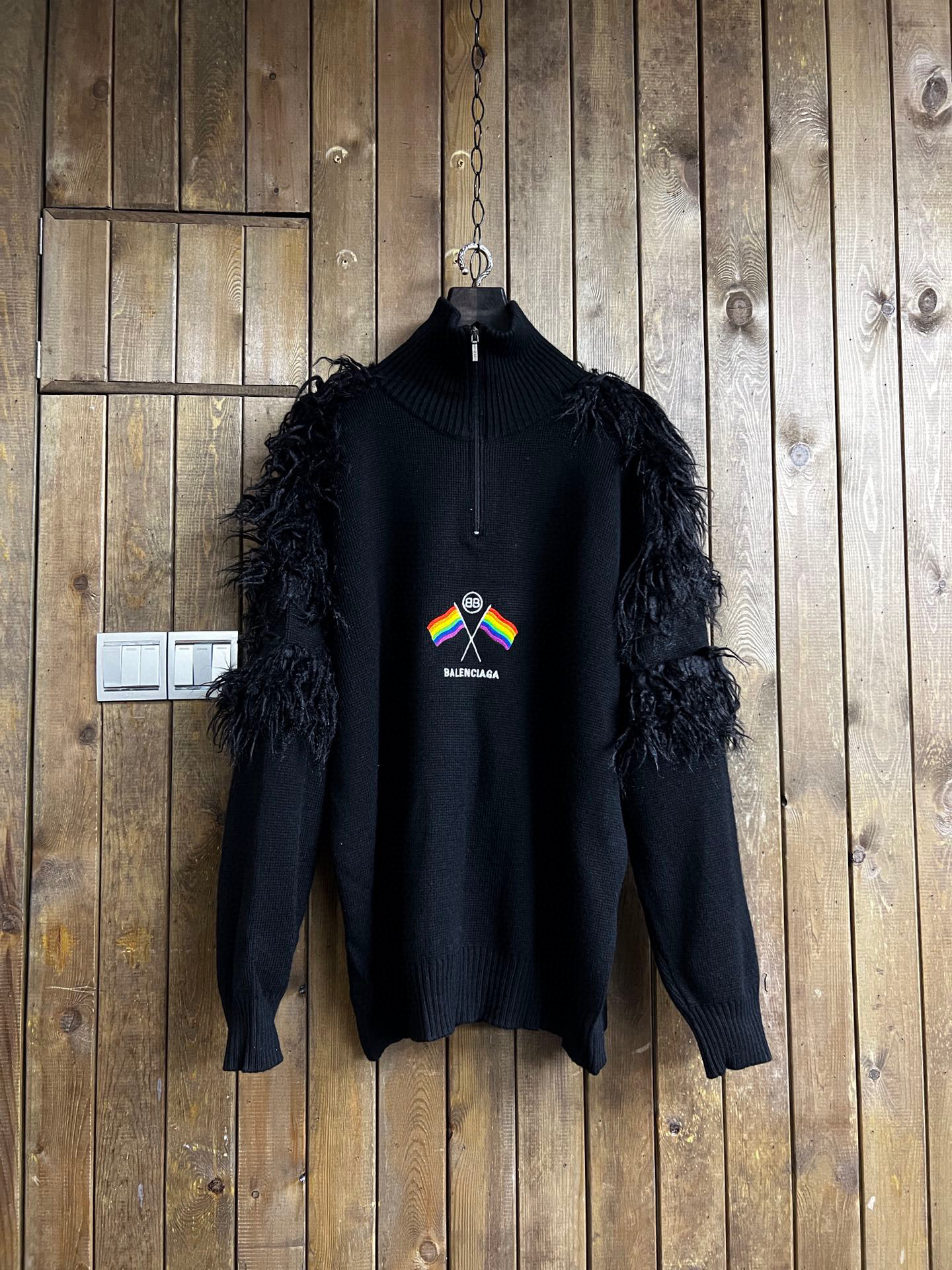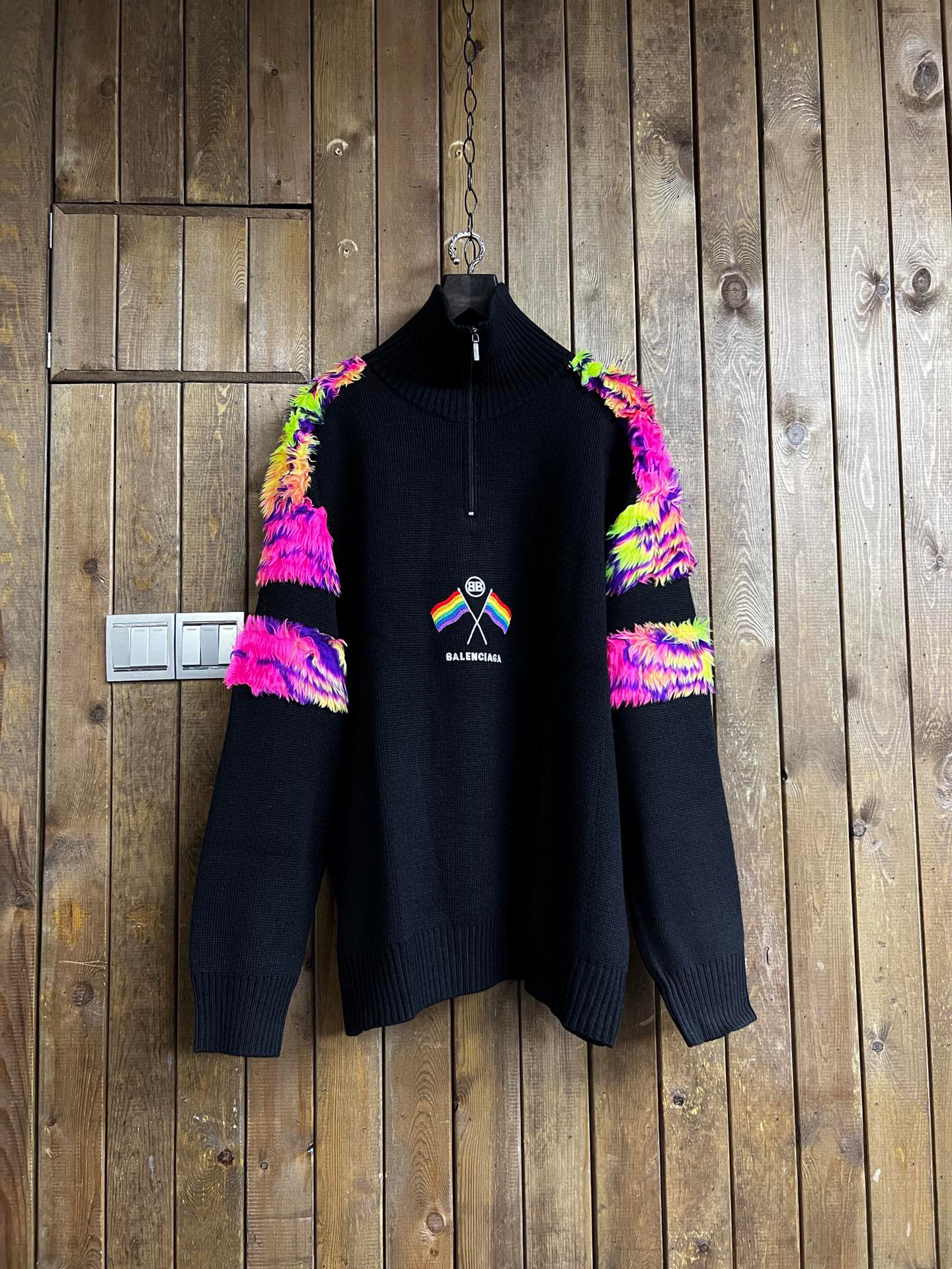 Balenciaga High Neck Fur Patchwork Sweater #nigo21864