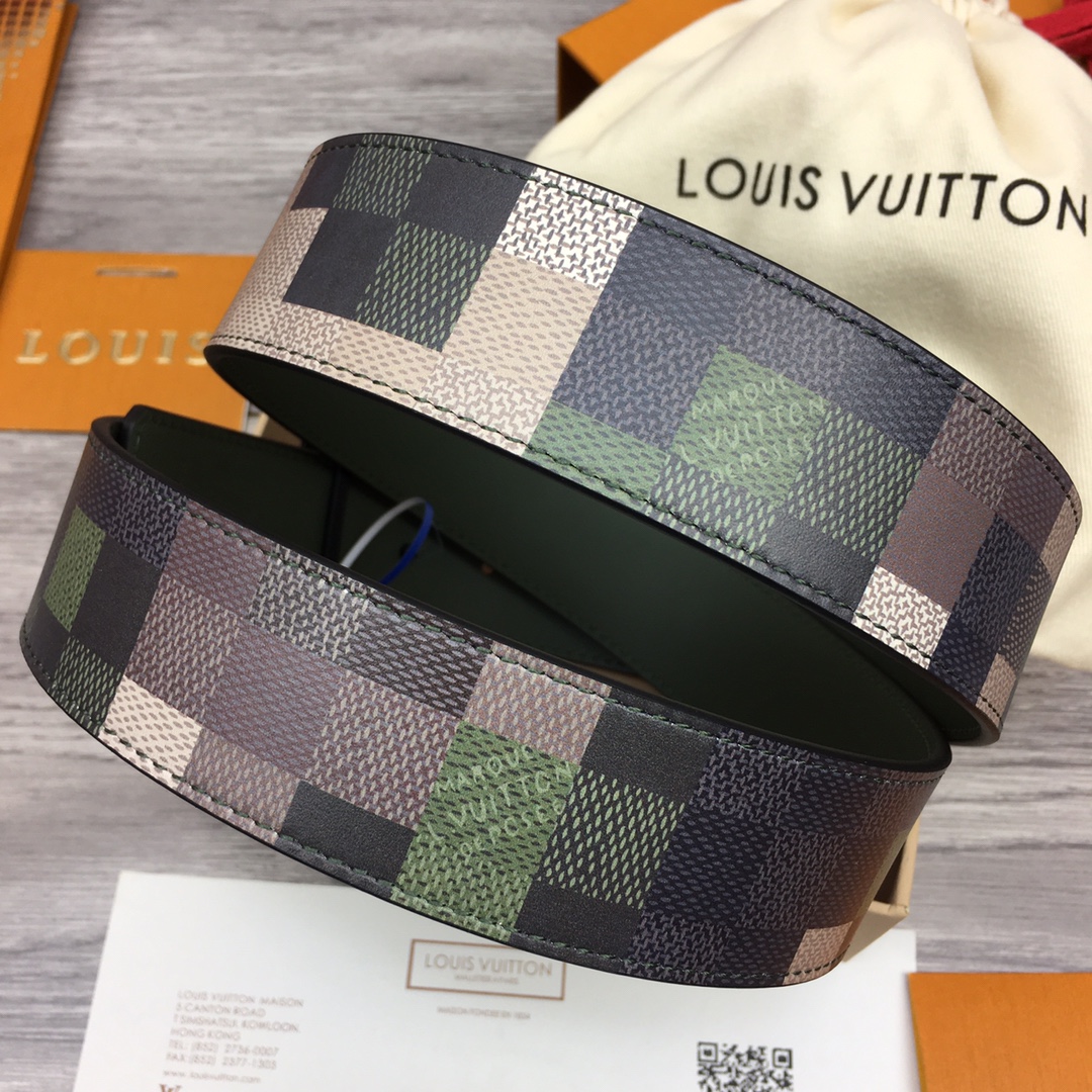 NIGO Louis Vuitton Mega Pixel Men's Four Seasons Fashion Camo Cowhide Belt Logo Luxury Double Sided Belt Width 4cm Accessories #nigo71221