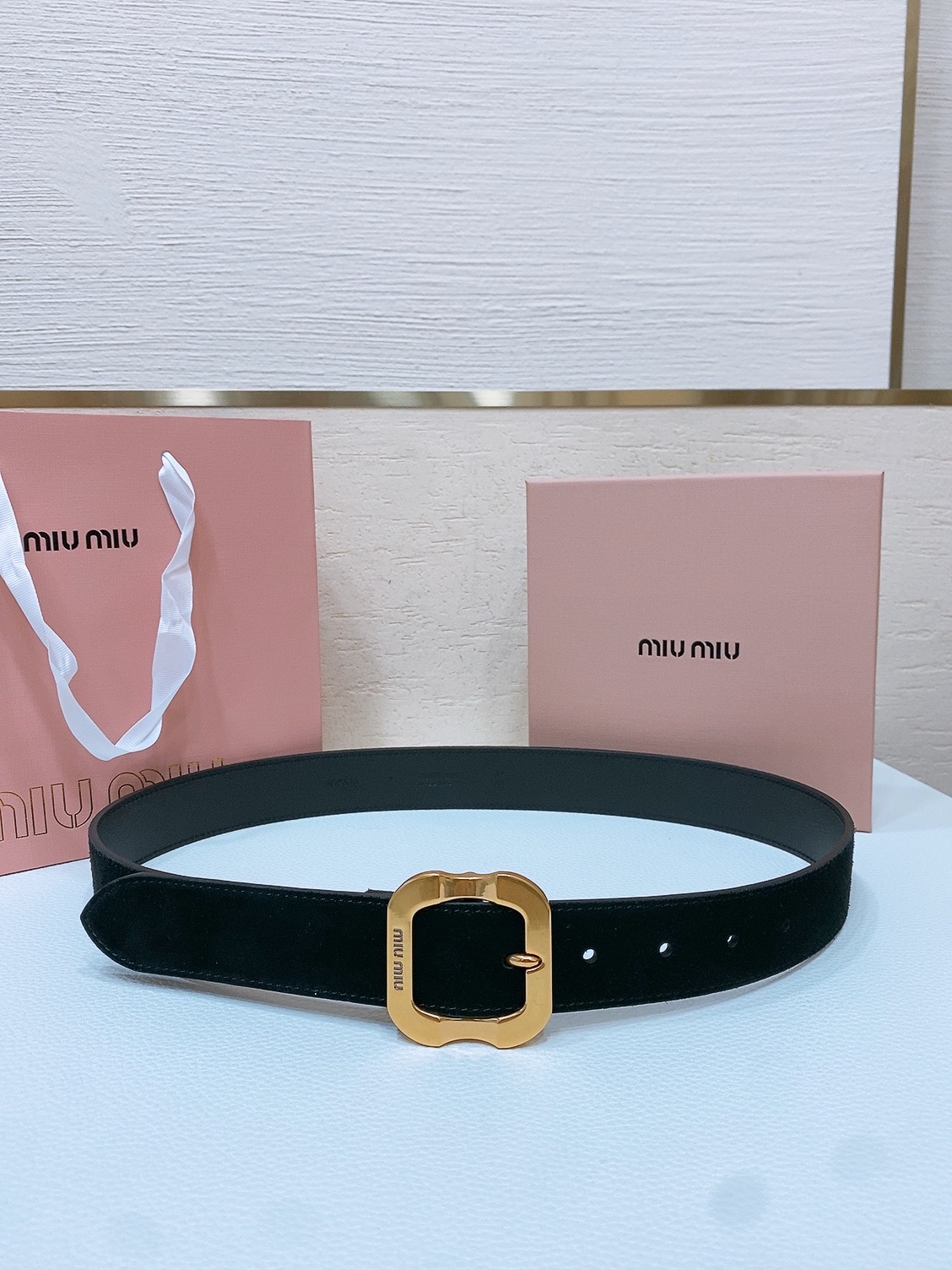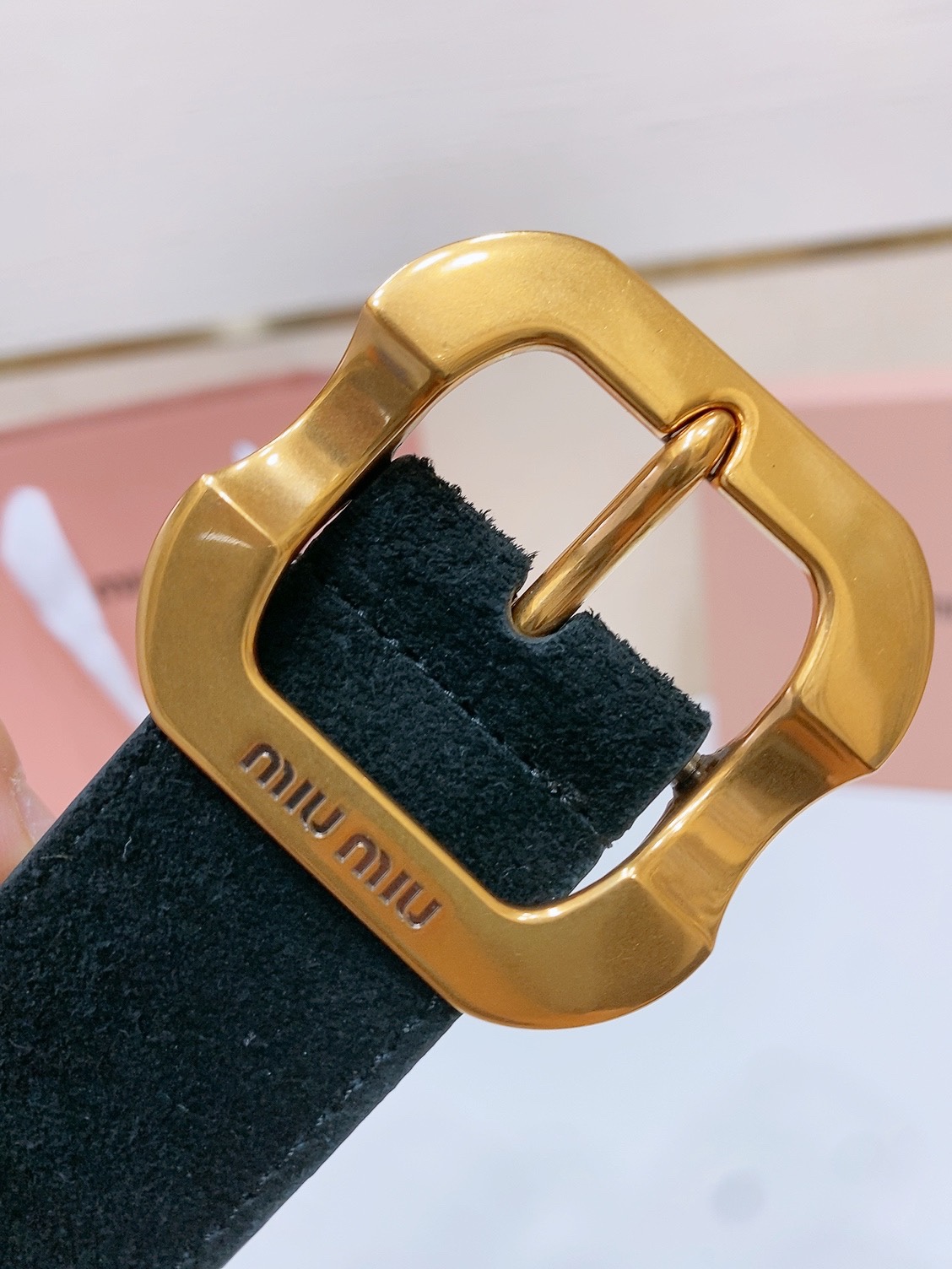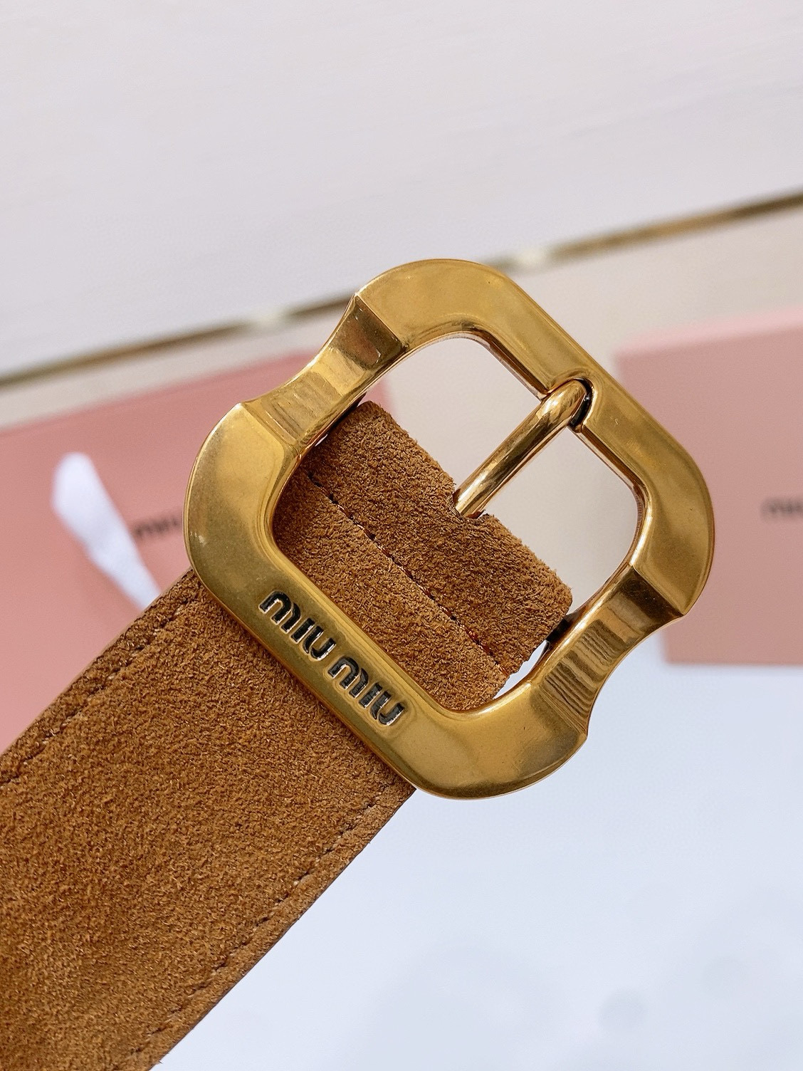 NIGO MiuMiu Women's Solid Colour Cowhide Logo Belt with Metal Buckle #nigo76279