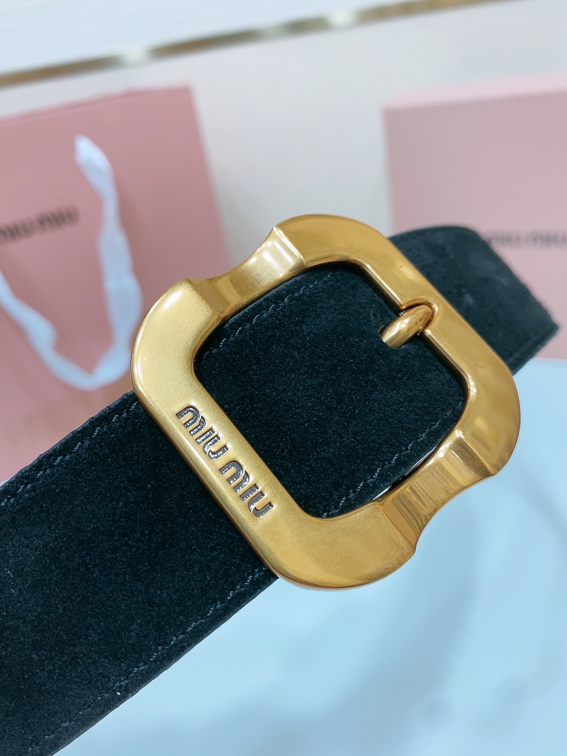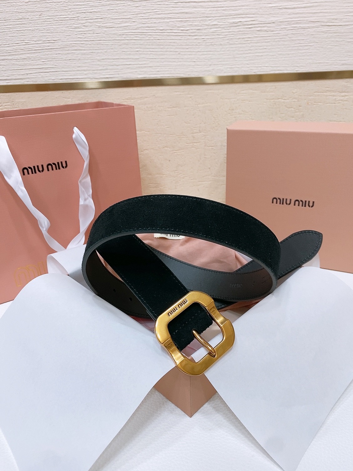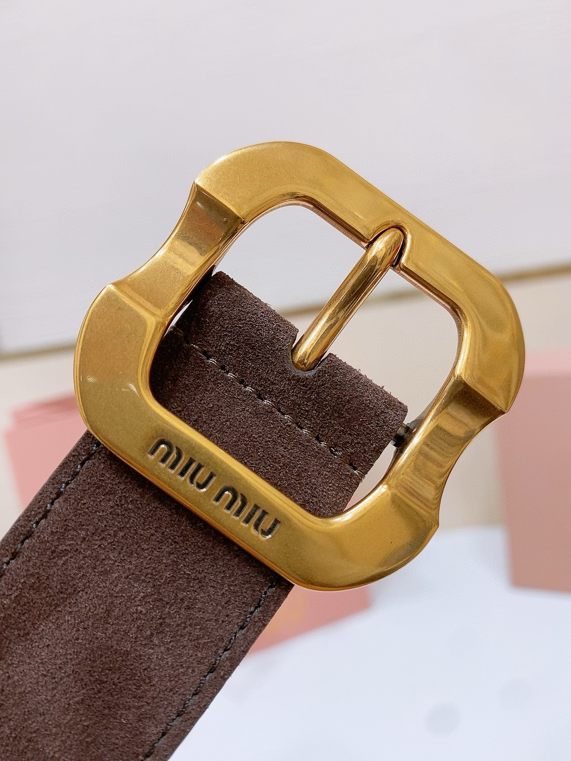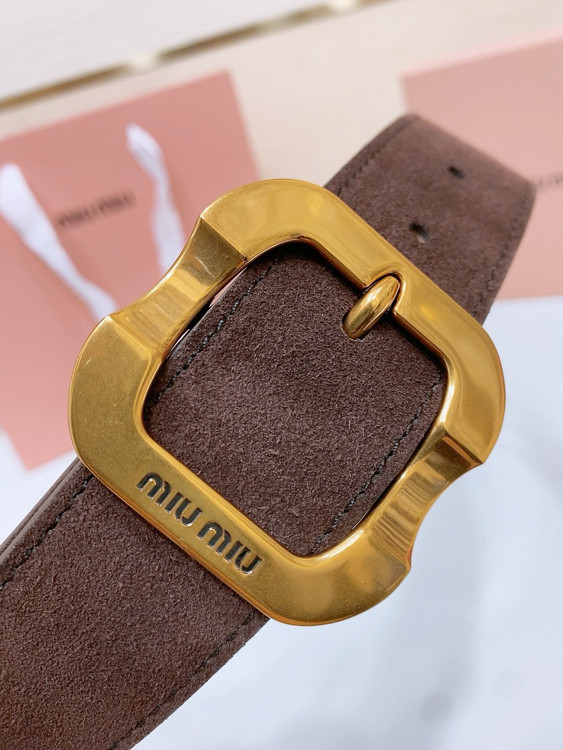 NIGO MiuMiu Women's Solid Colour Cowhide Logo Belt with Metal Buckle #nigo76279