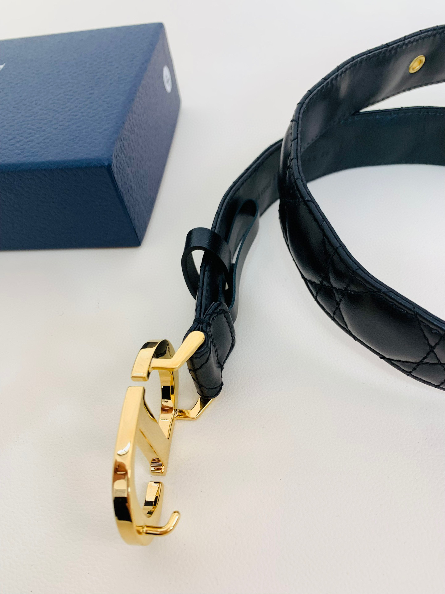 NIGO Gucci Women's Gold Logo Smooth Buckle Black Leather Thin Belt #nigo98151