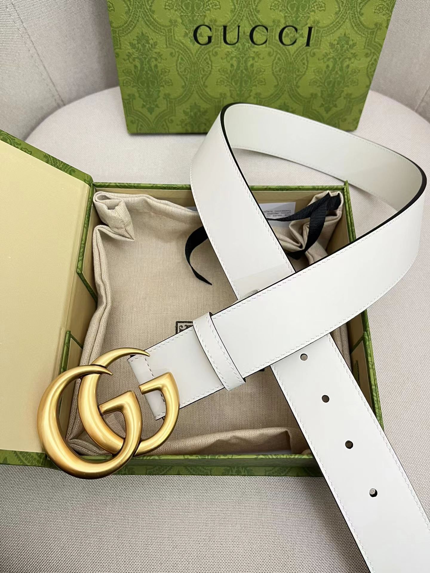 NIGO Gucci Men's and Women's Gold Double G Buckle White Leather Belts Width 4cm #nigo98557
