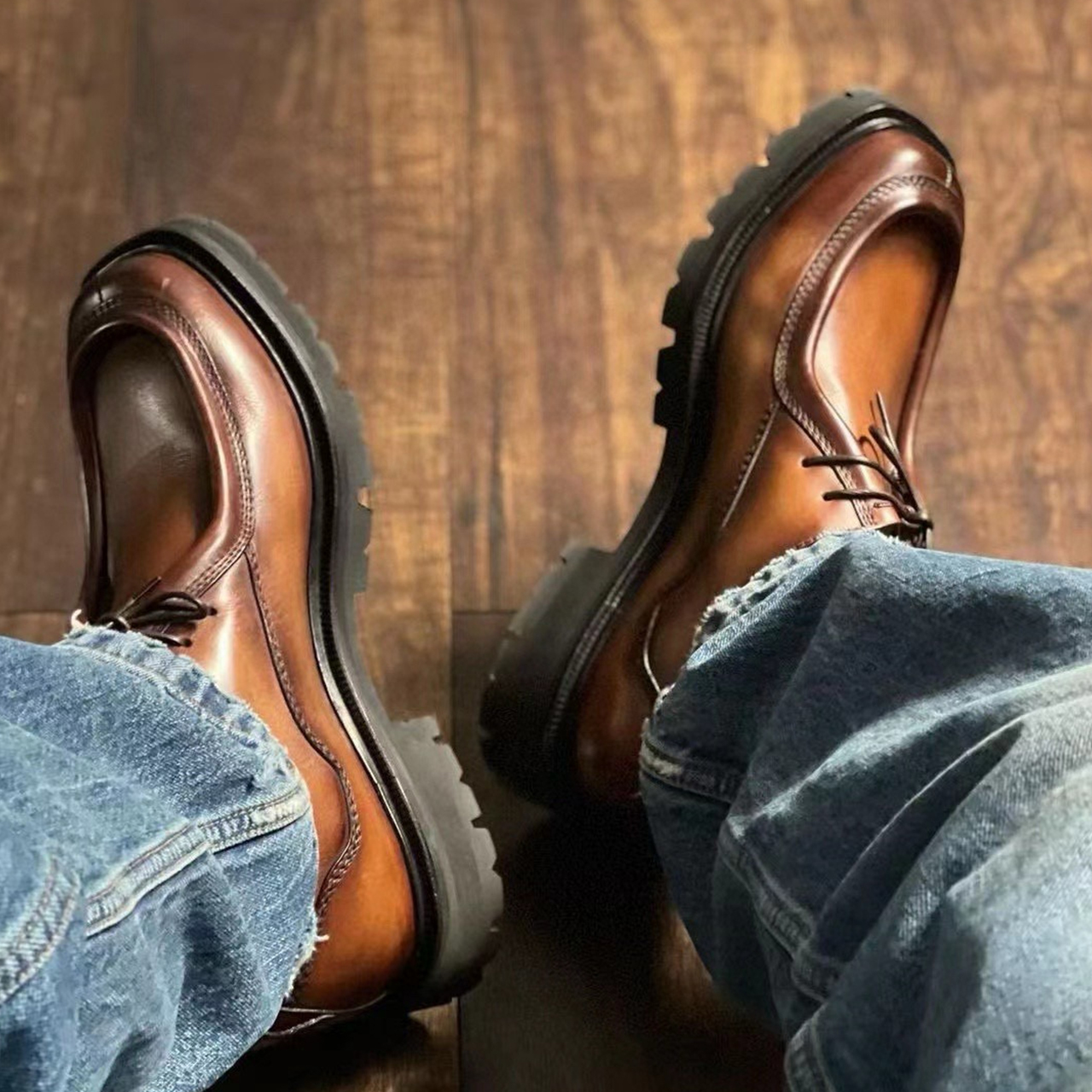 NIGO Berluti Men's Four Seasons Temperament Brown Cowhide Chunky Heel Formal Leather Shoes Ngvp #nigo7660