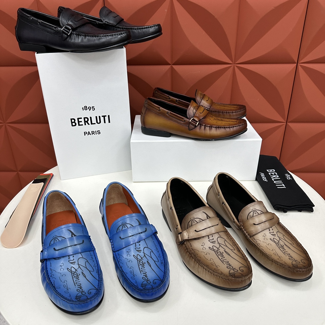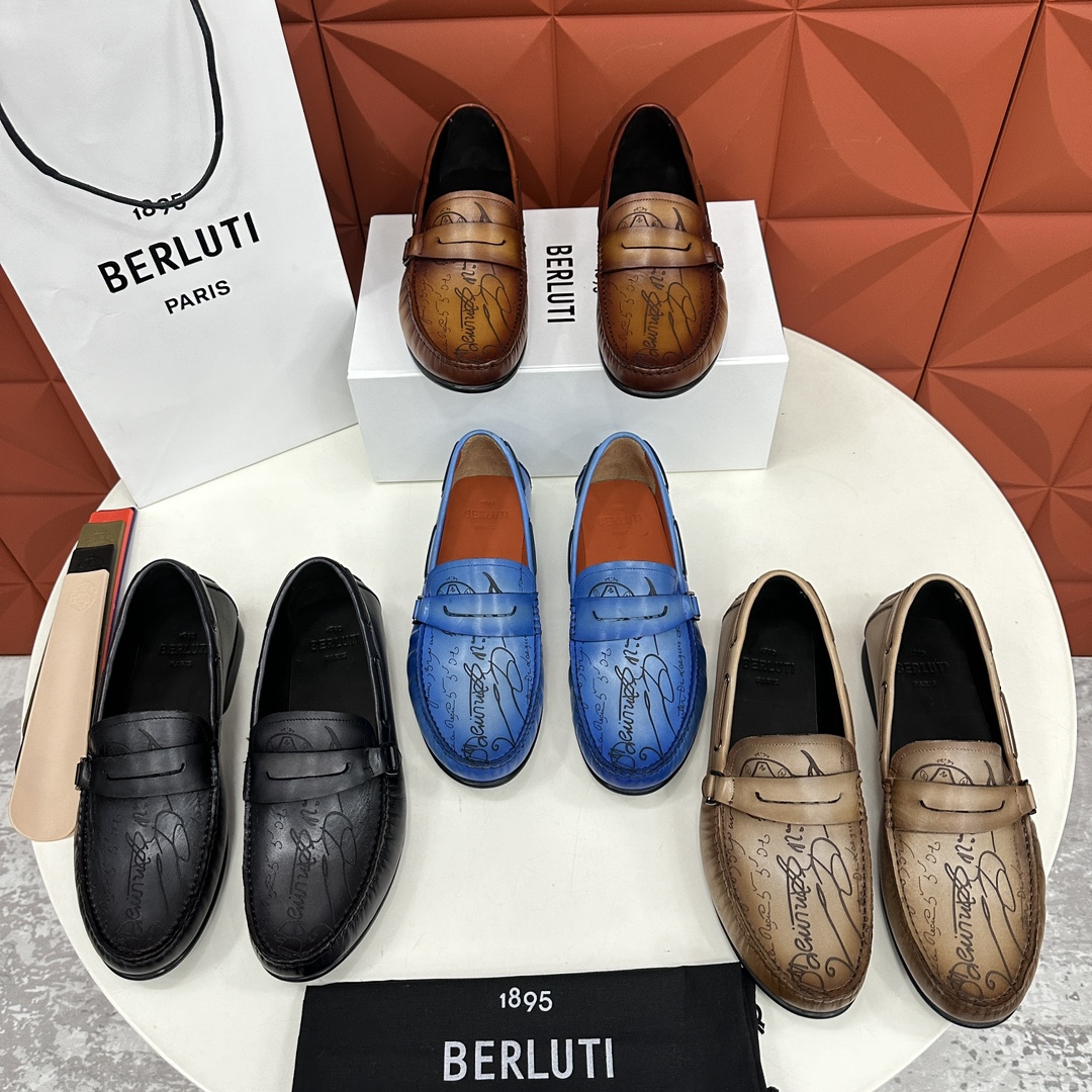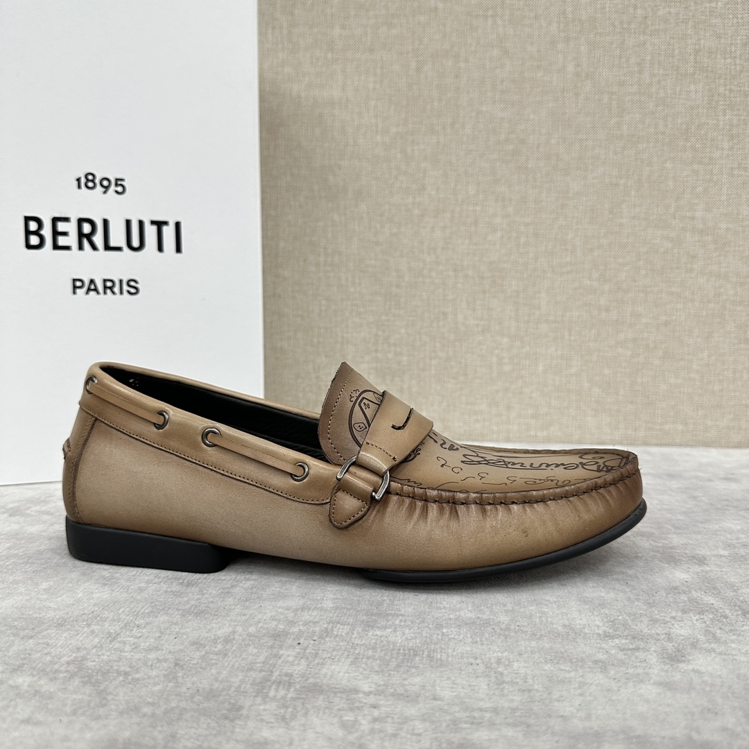 NIGO Berluti Men's Spring Summer Autumn Solid Cursive Galet Scritto Leather Loafers Casual Low Top Shoes #nigo71696