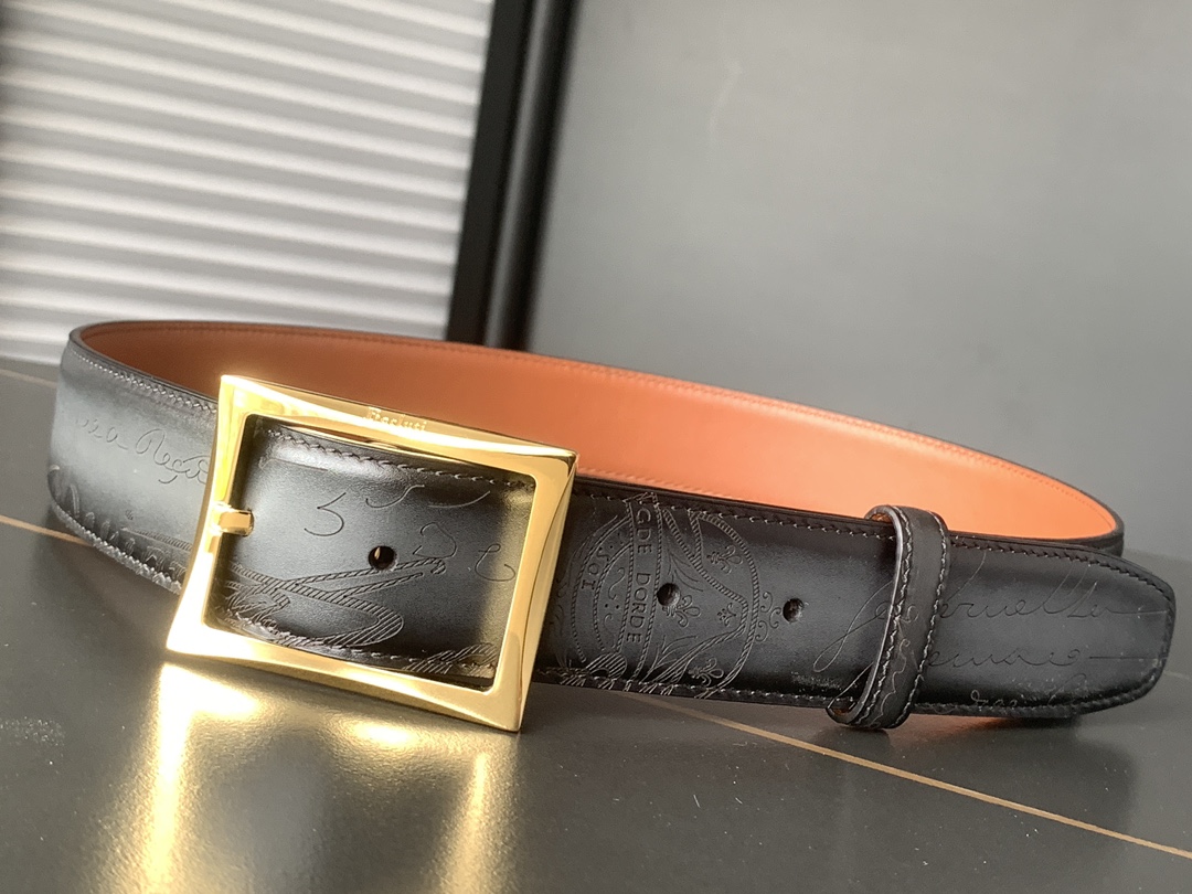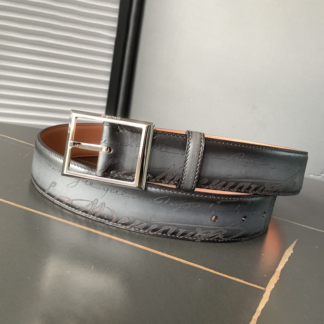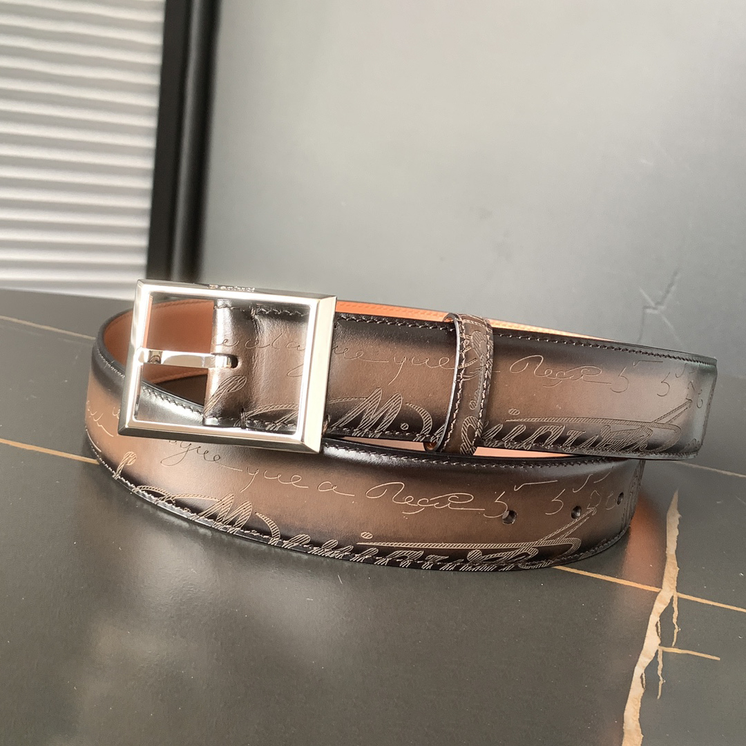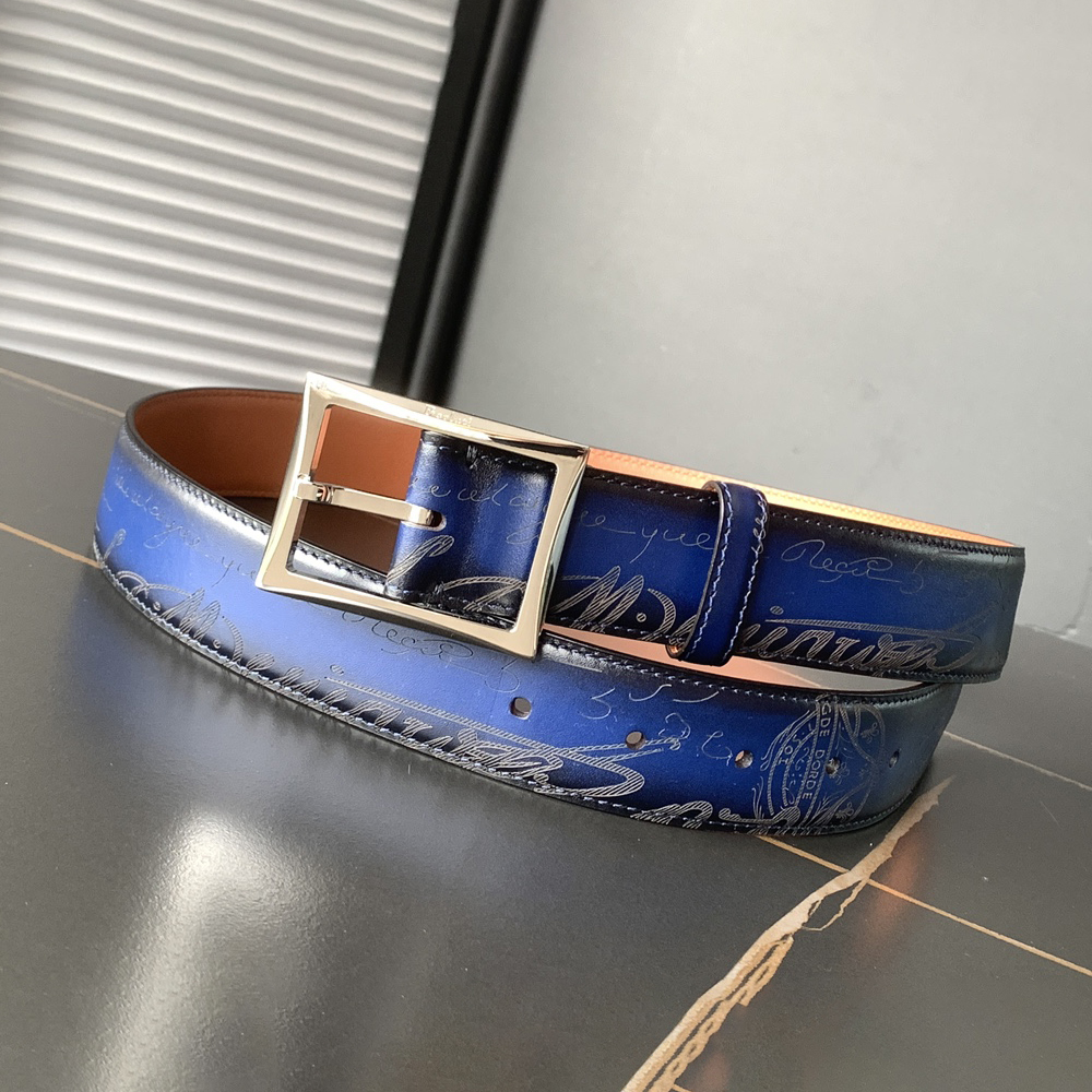 NIGO Berluti Men's Multicolor Engraved Design Calfskin Leather Belt #nigo74313