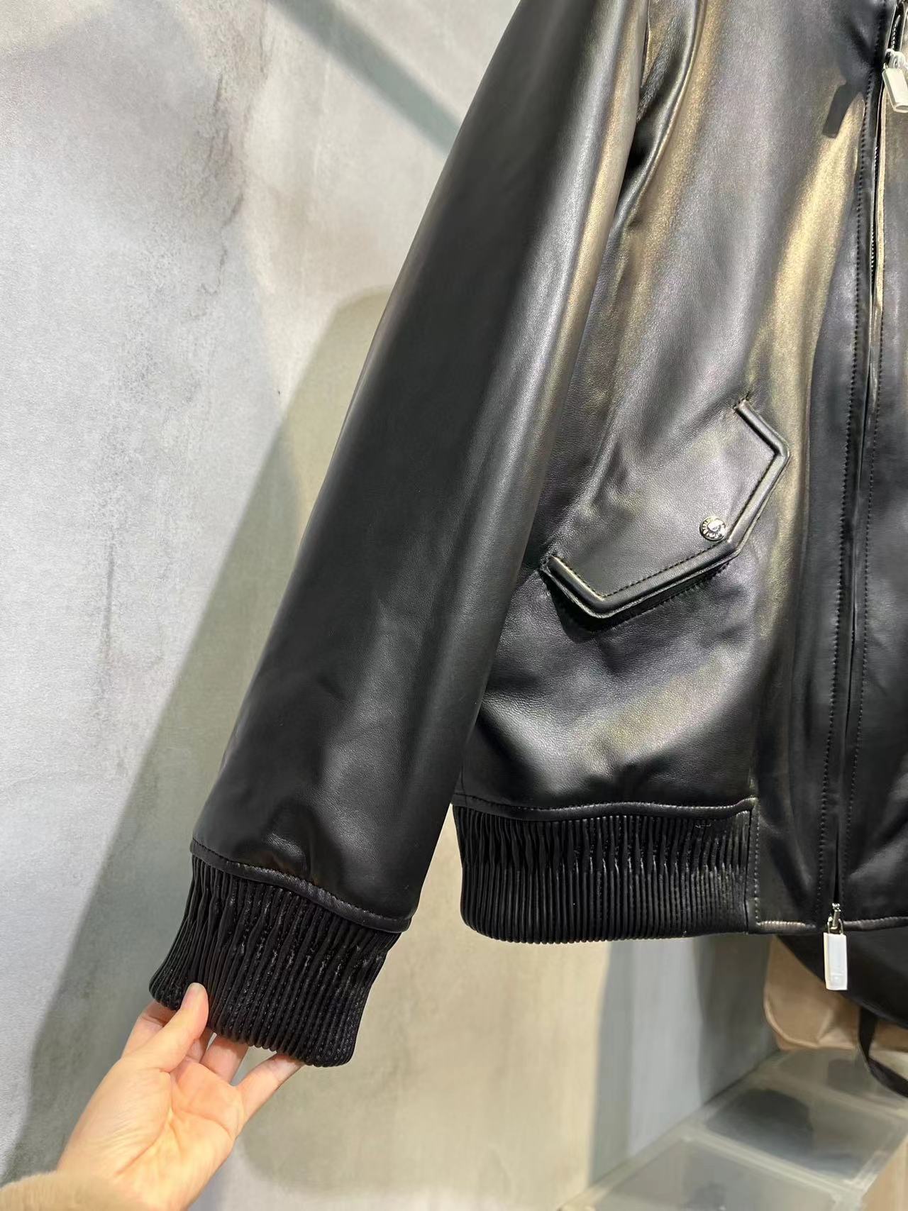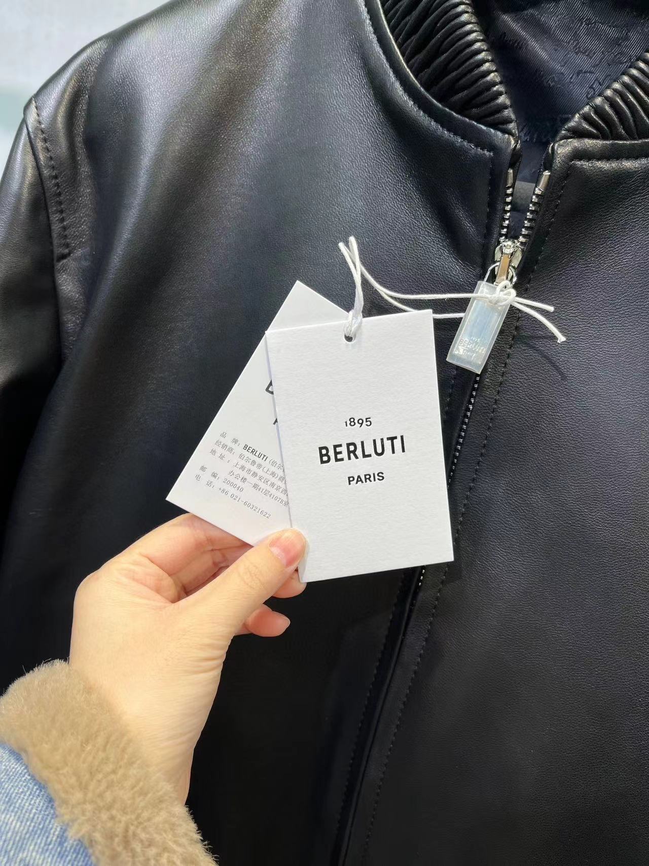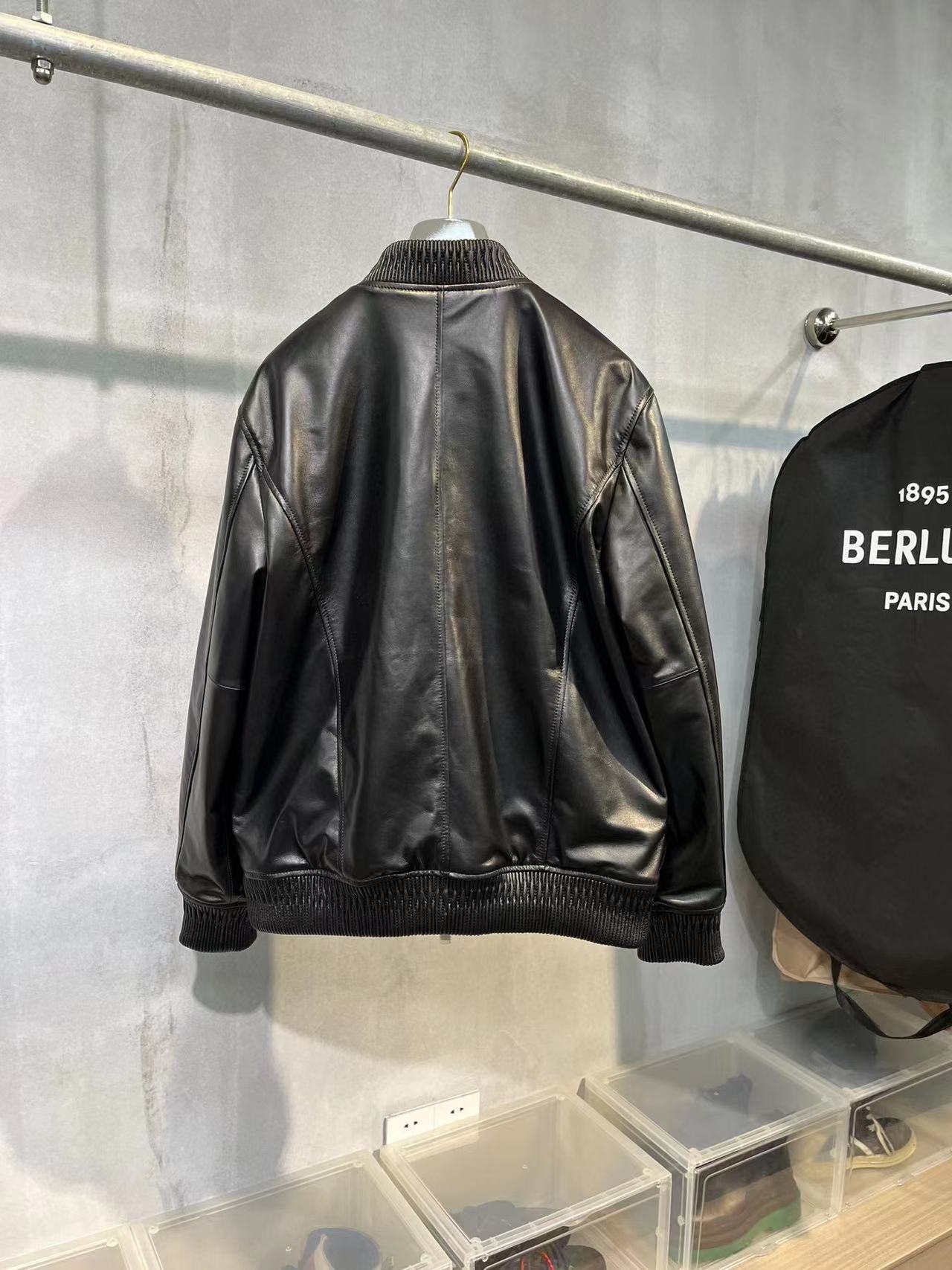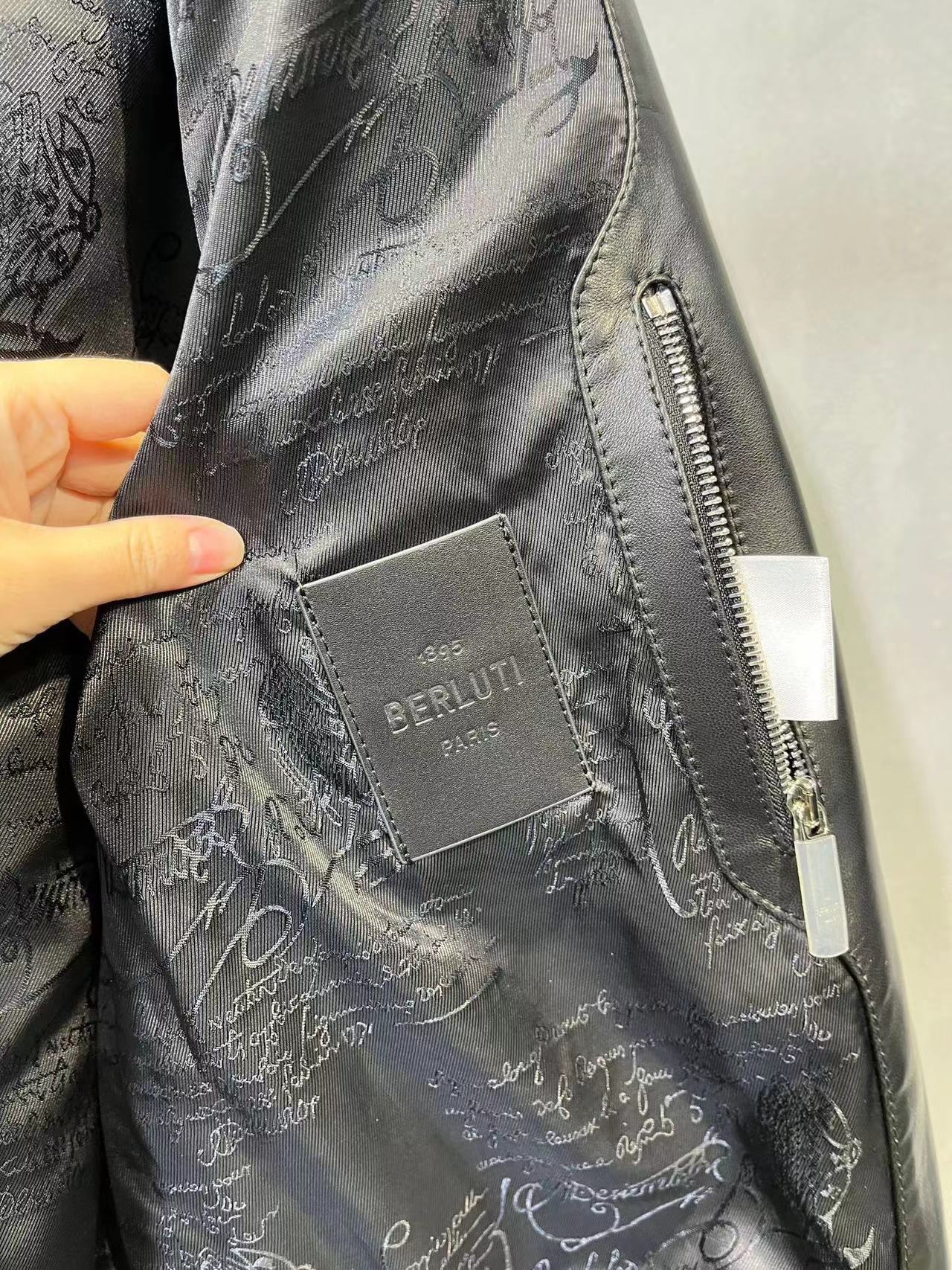 NIGO Berluti Men's Fall/Winter Black Round Neck Leather Zipper Long Sleeve Jacket #nigo98455