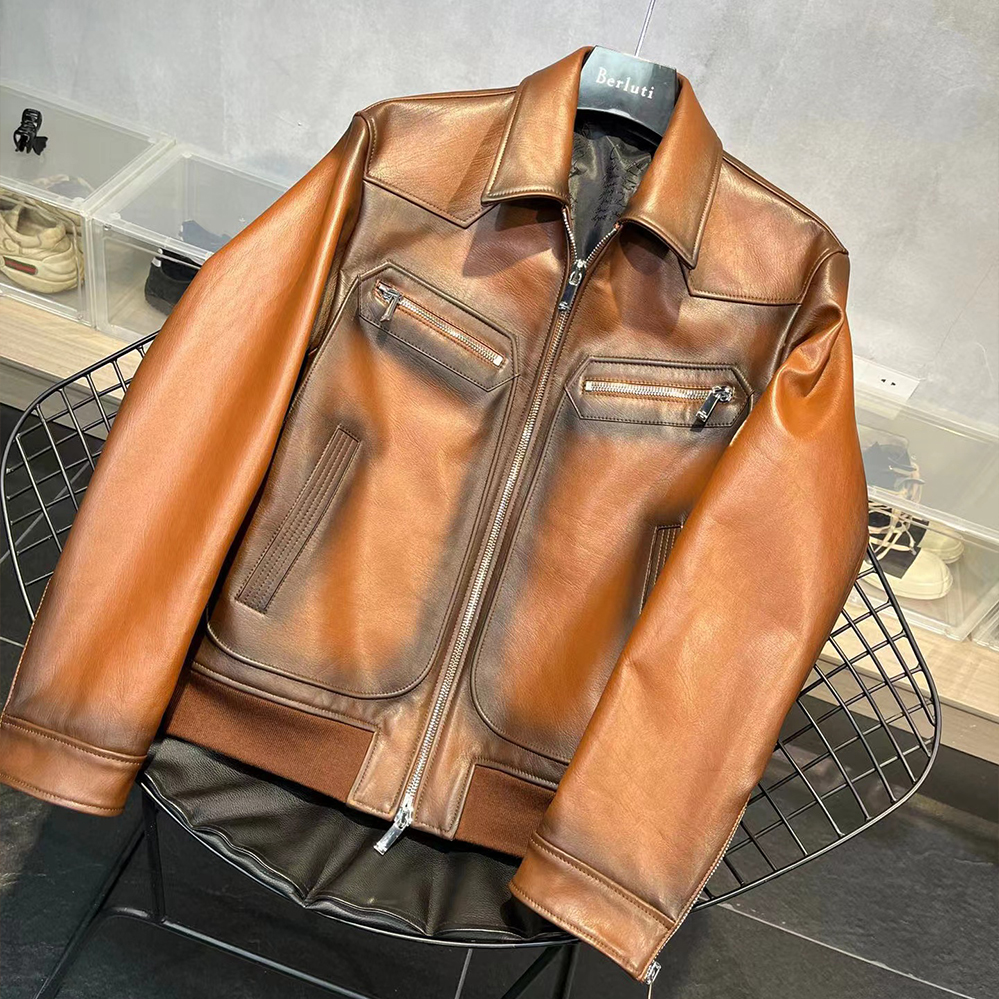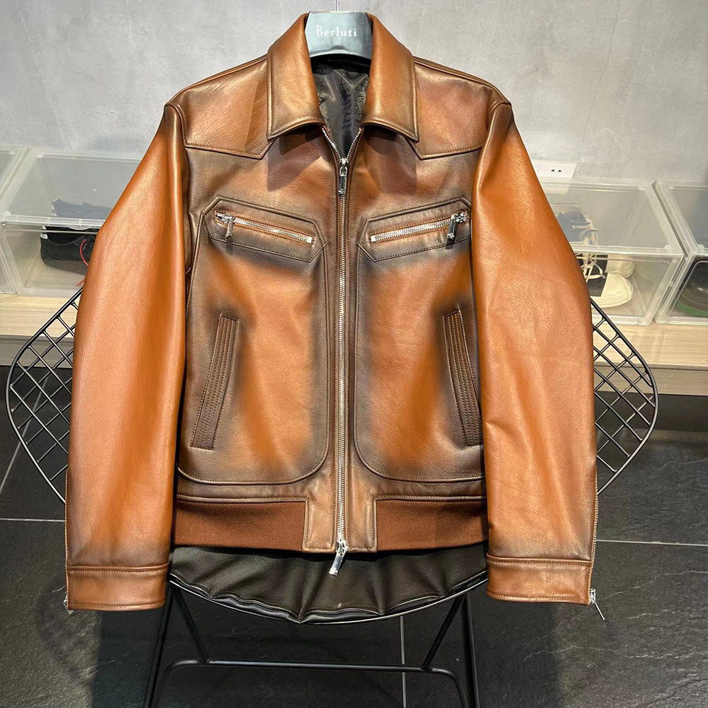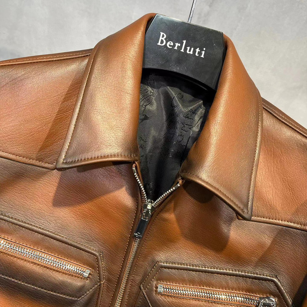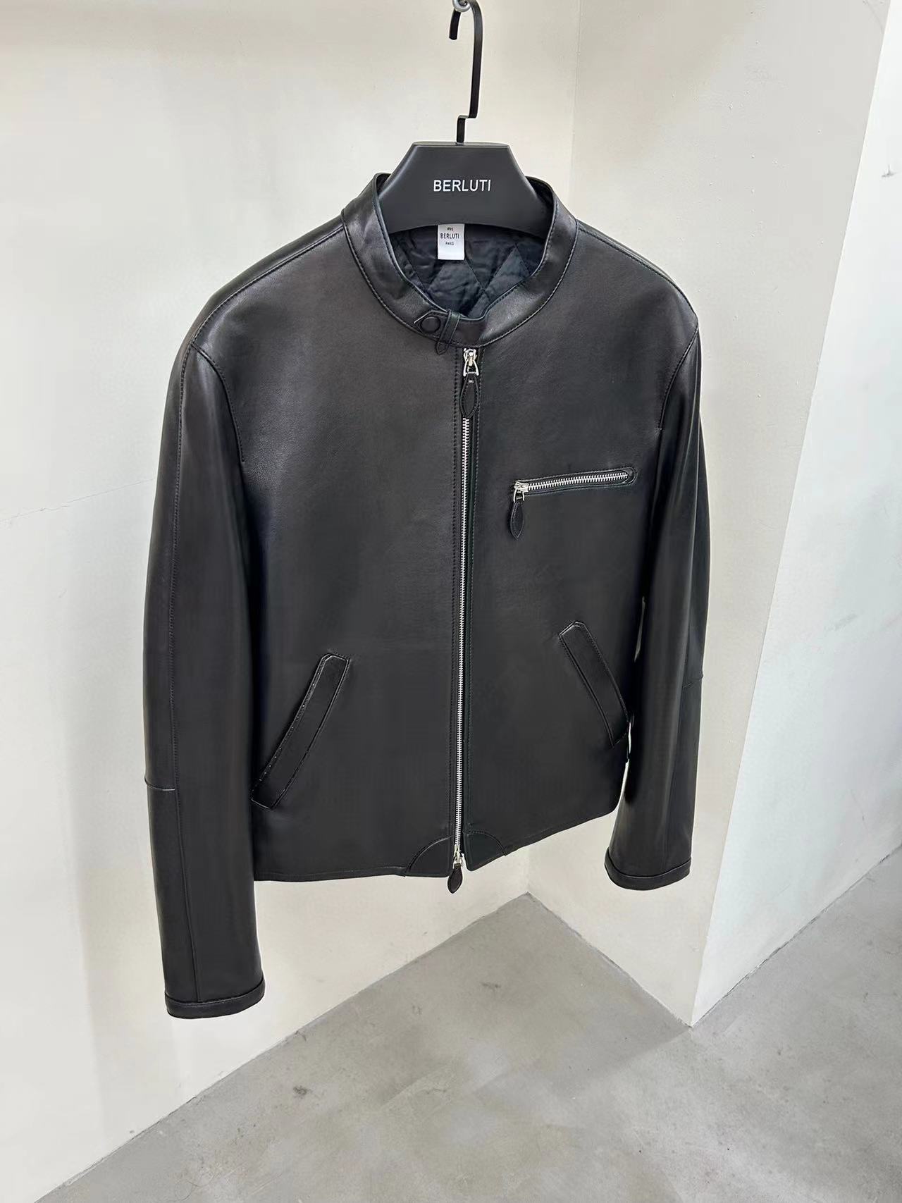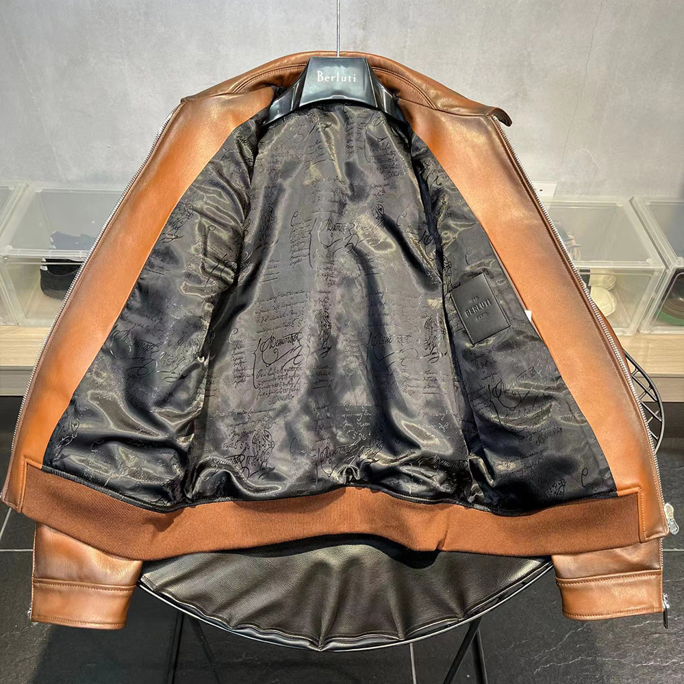 NIGO Berluti Men's Fall And Winter Collar Slim Biker Lambskin Leather Long Sleeve Jacket #nigo98477