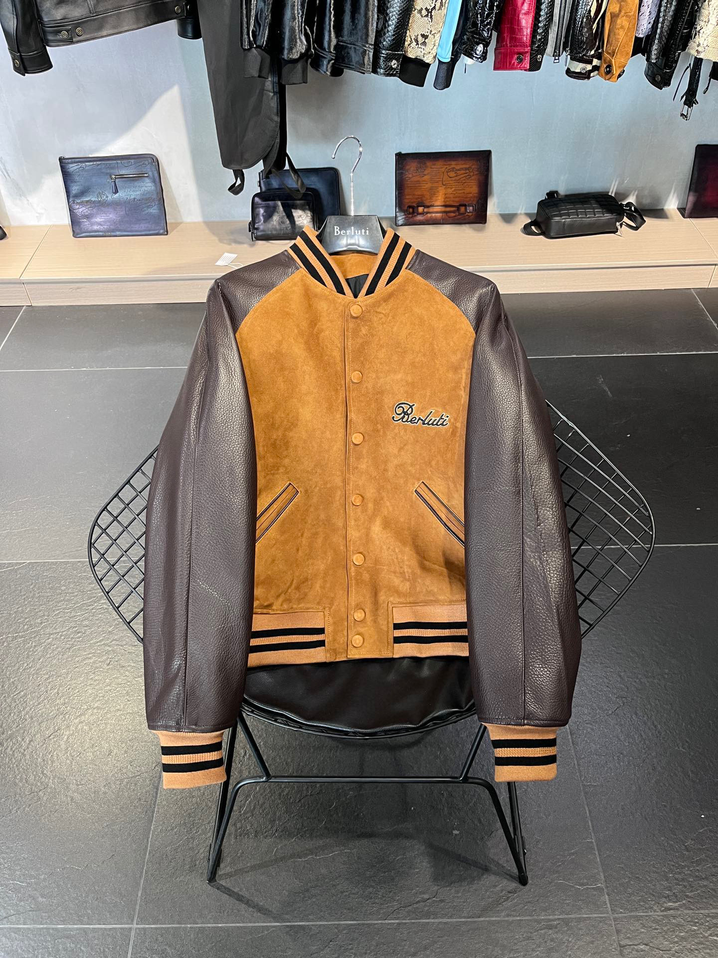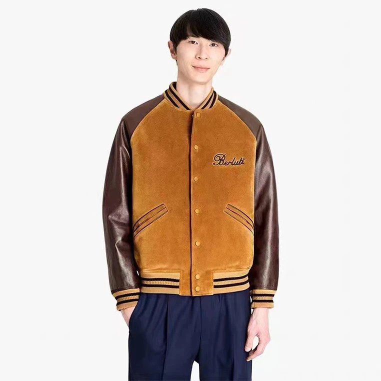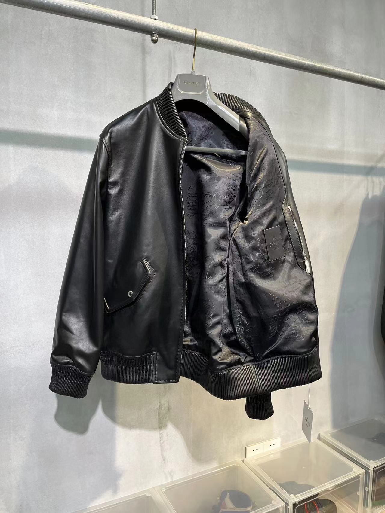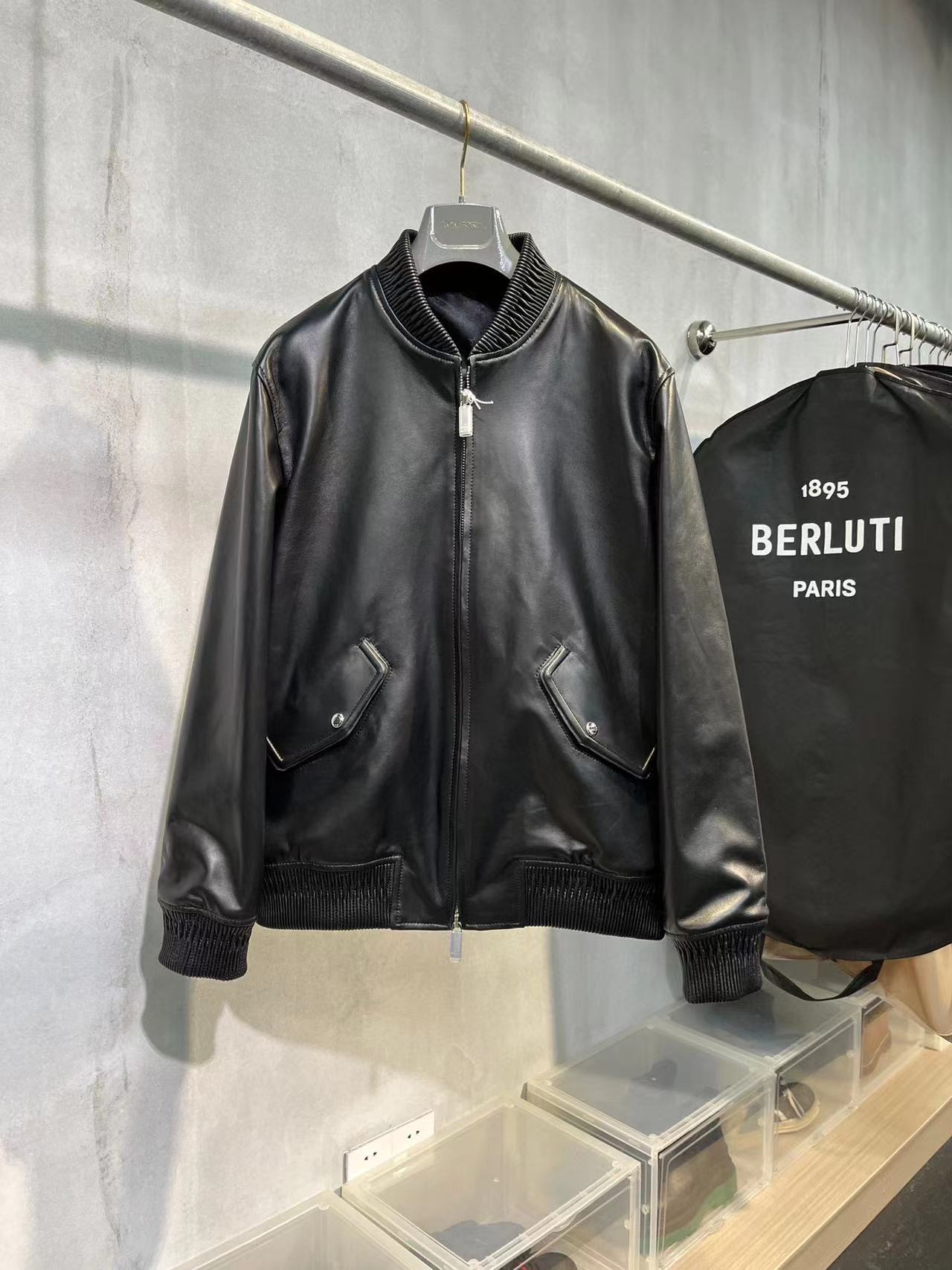 NIGO Berluti Men's Fall/Winter Black Round Neck Leather Zipper Long Sleeve Jacket #nigo98455
