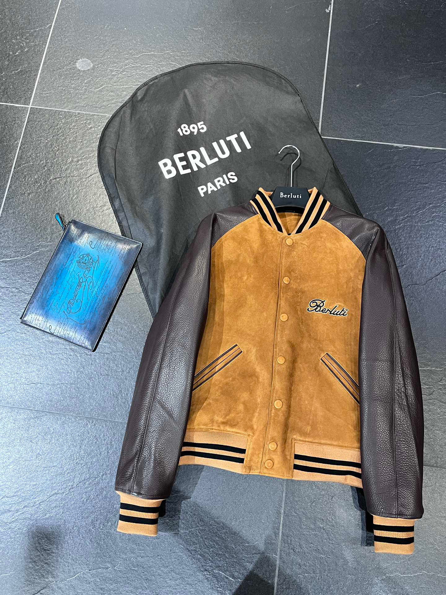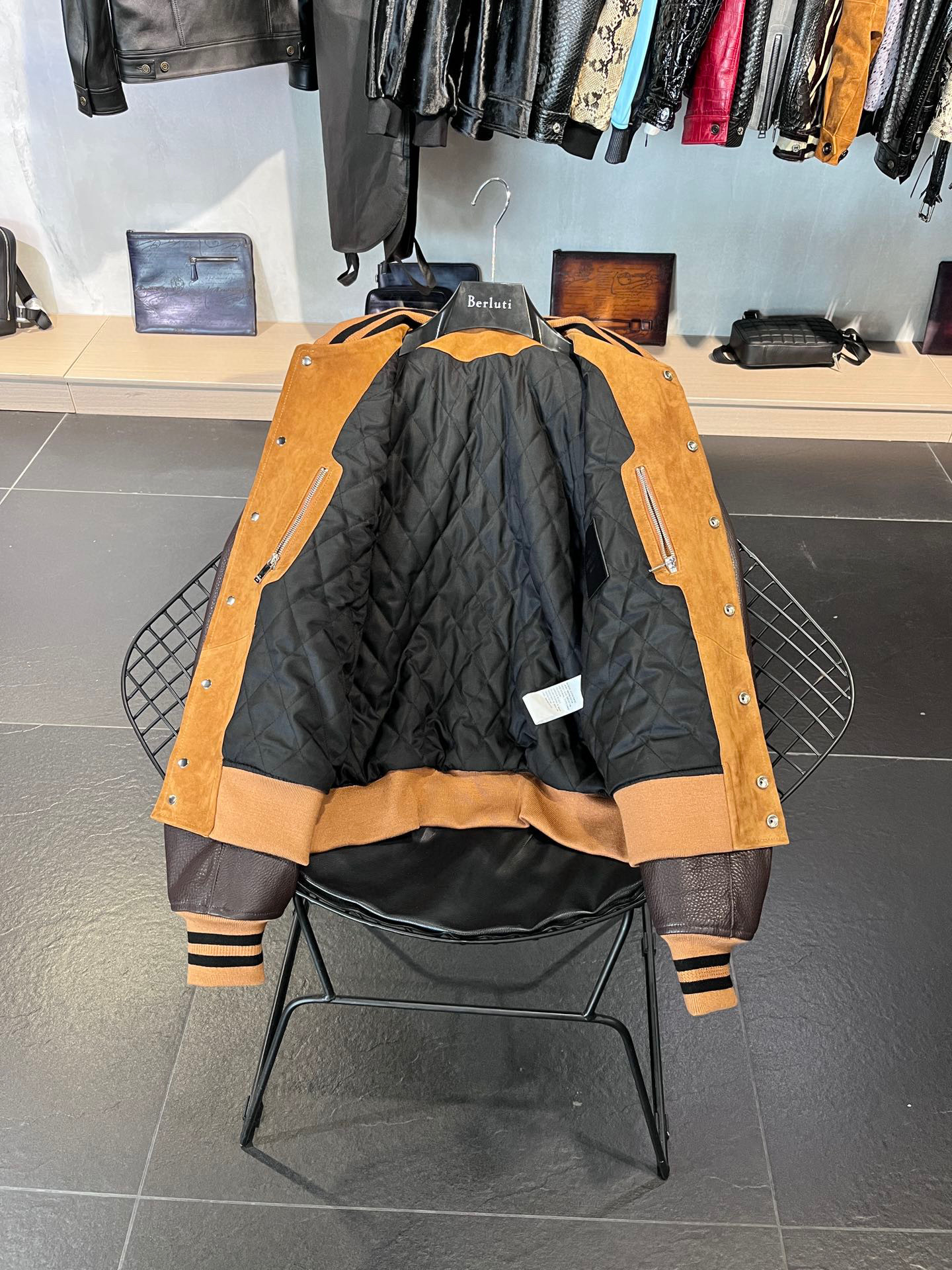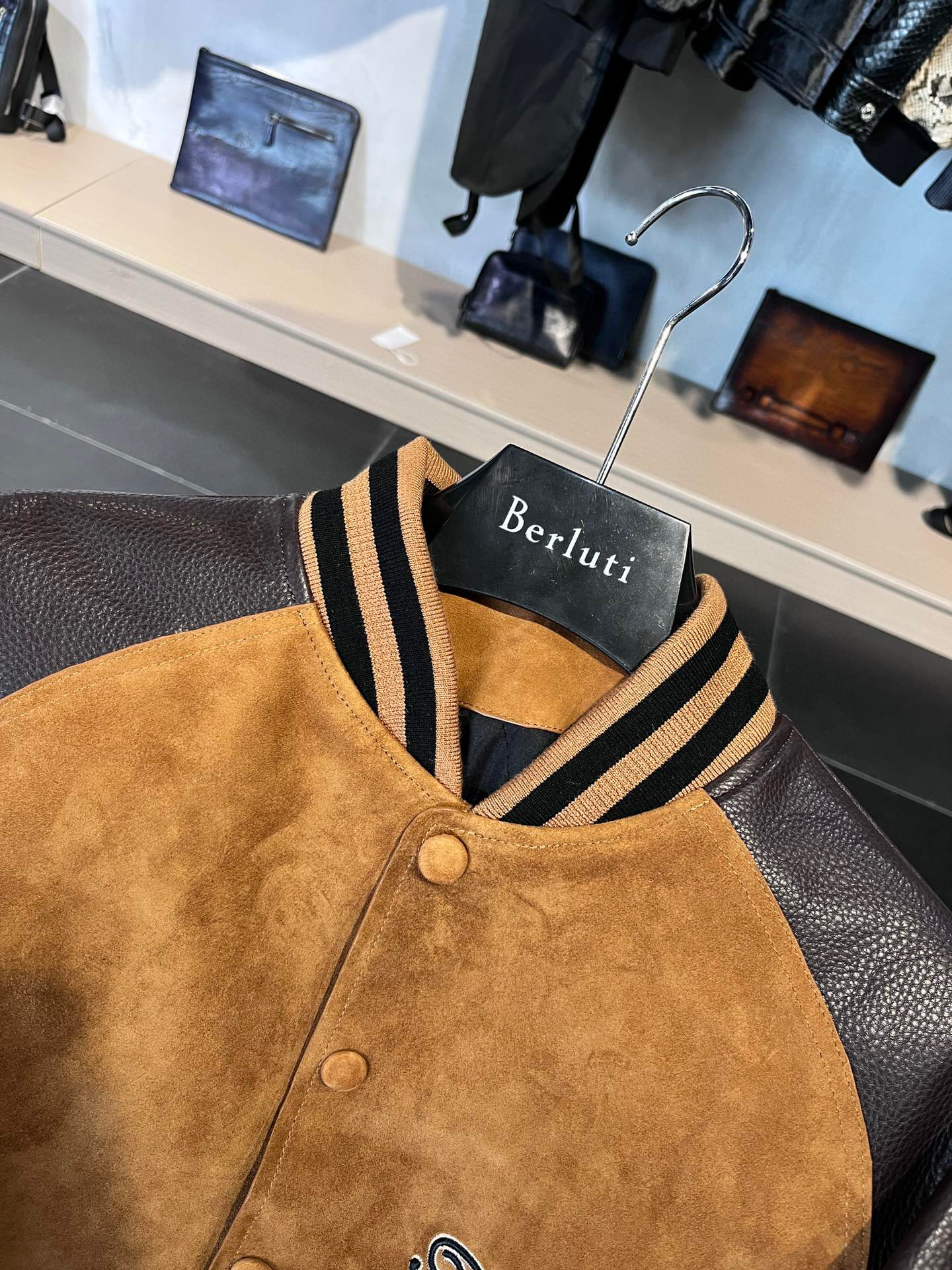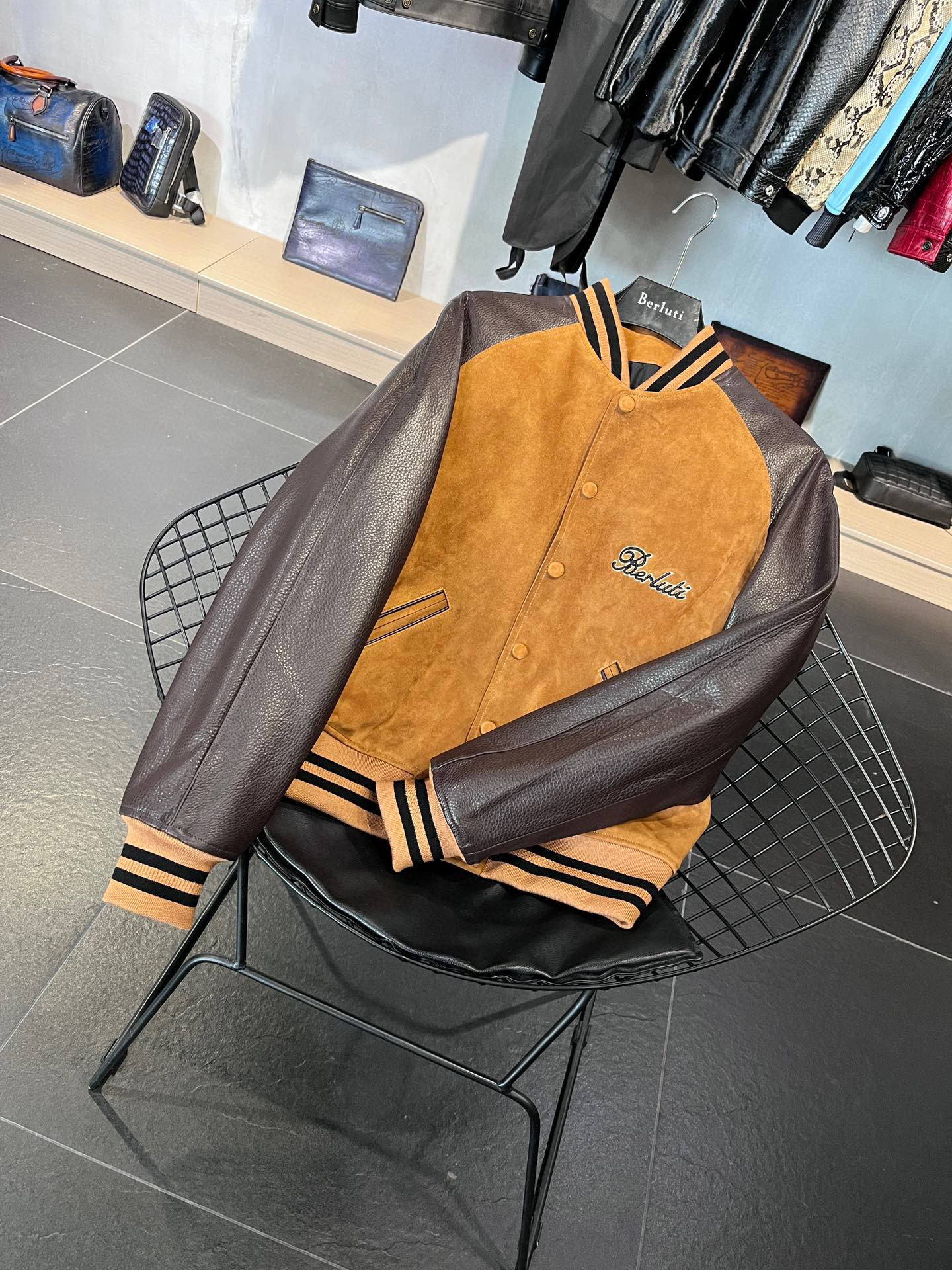 NIGO Berluti Men's Fall/Winter Black Round Neck Leather Zipper Long Sleeve Jacket #nigo98455