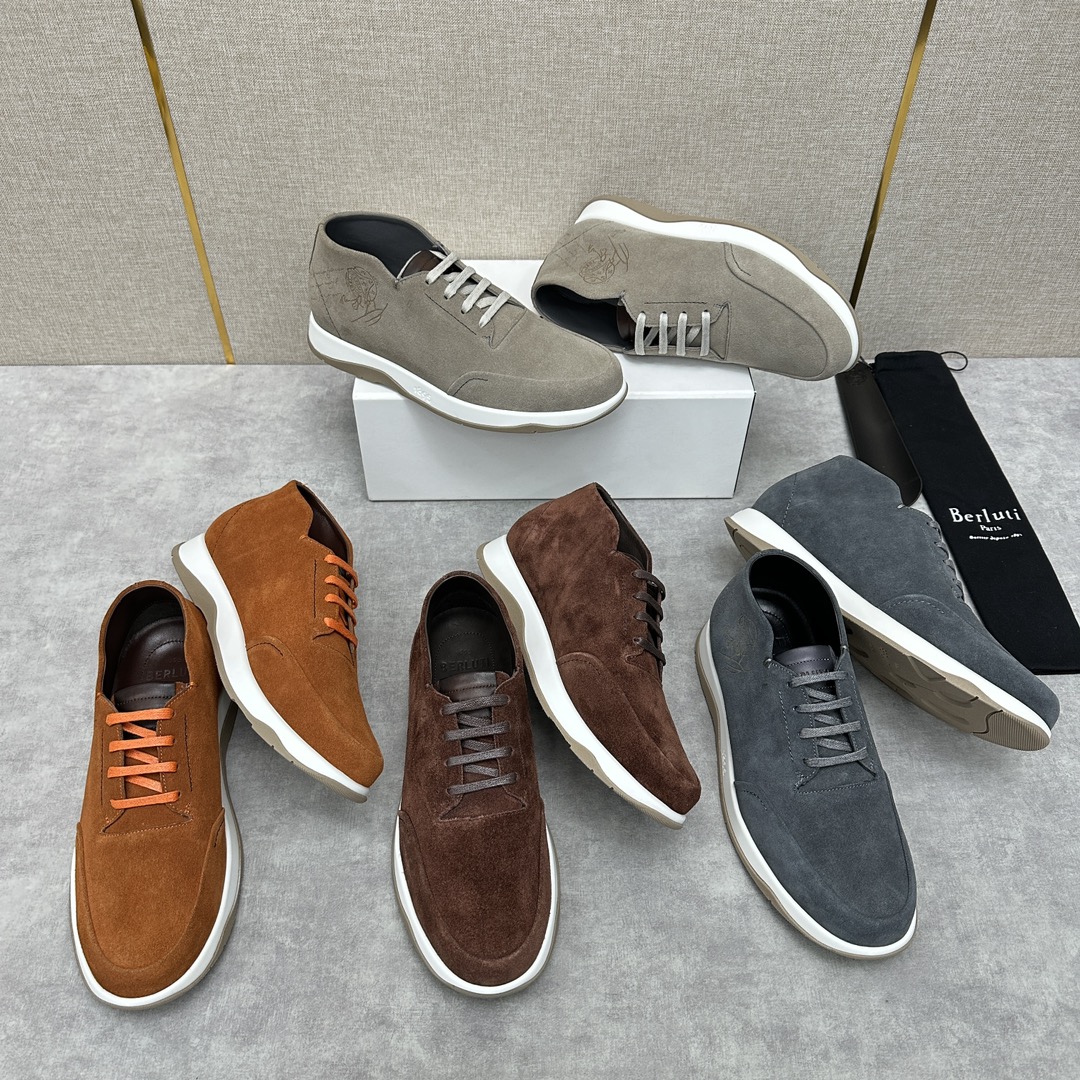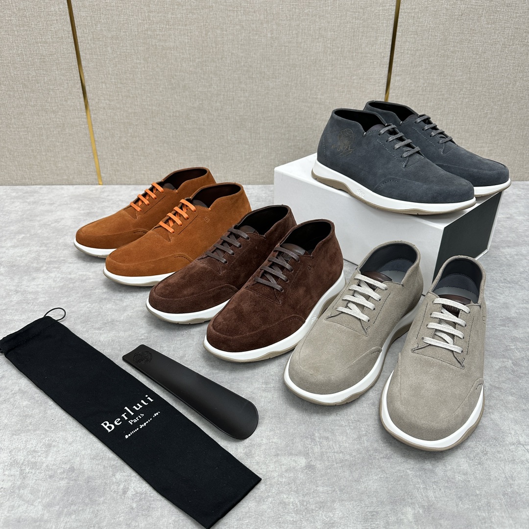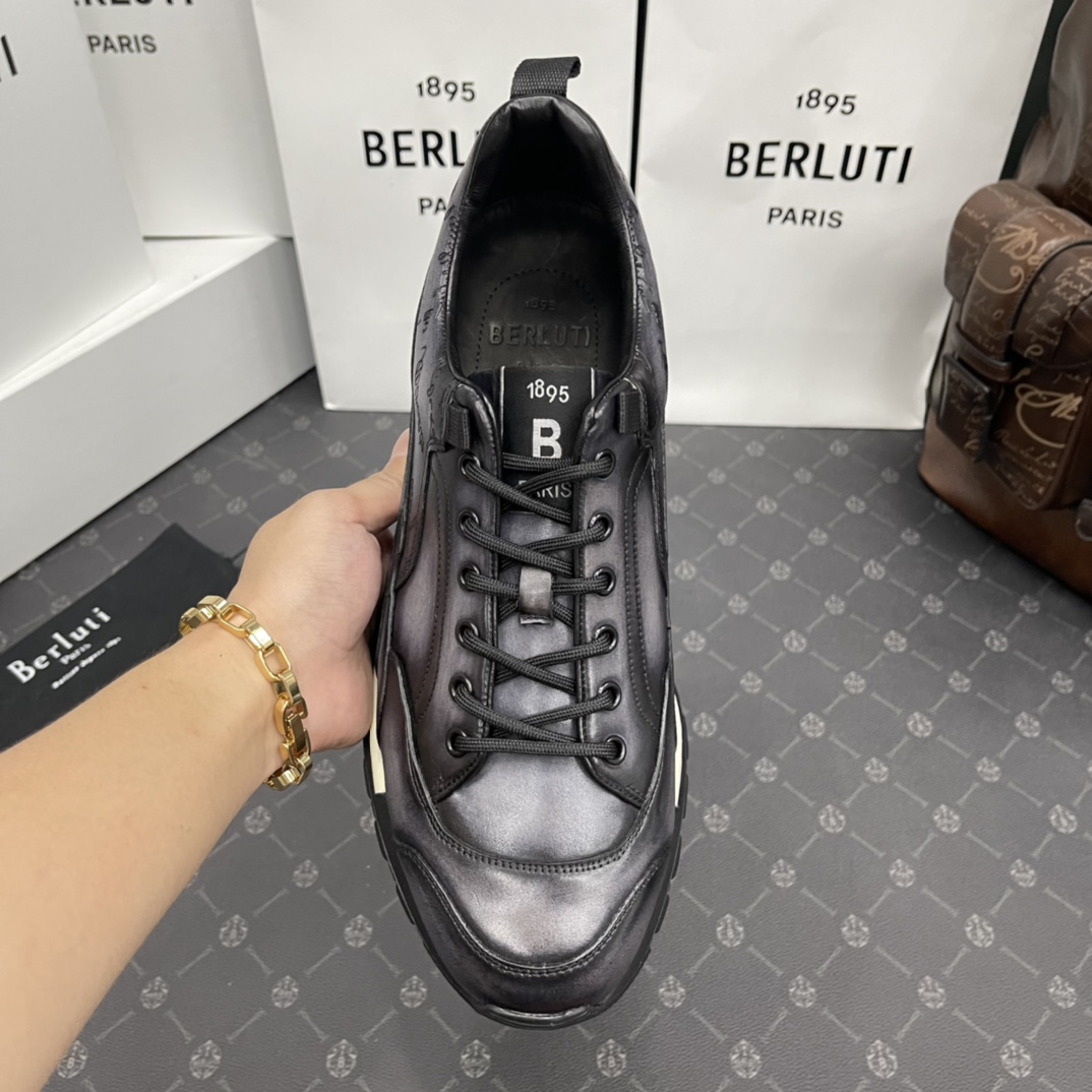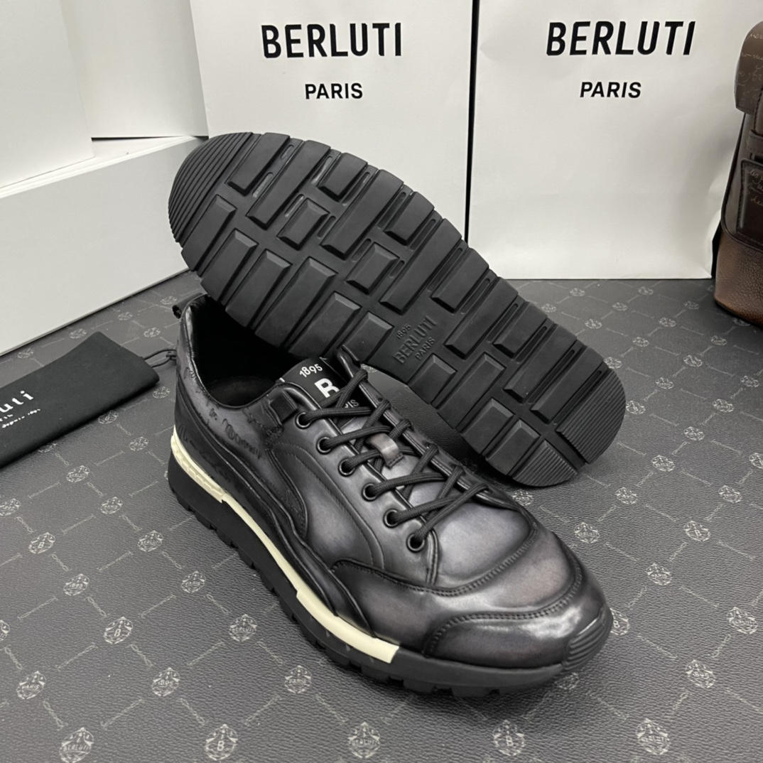 NIGO Berluti Men's Fast Track Trainers Four Seasons Solid Colour Print Casual Lace Up Leather Shoes #nigo71697