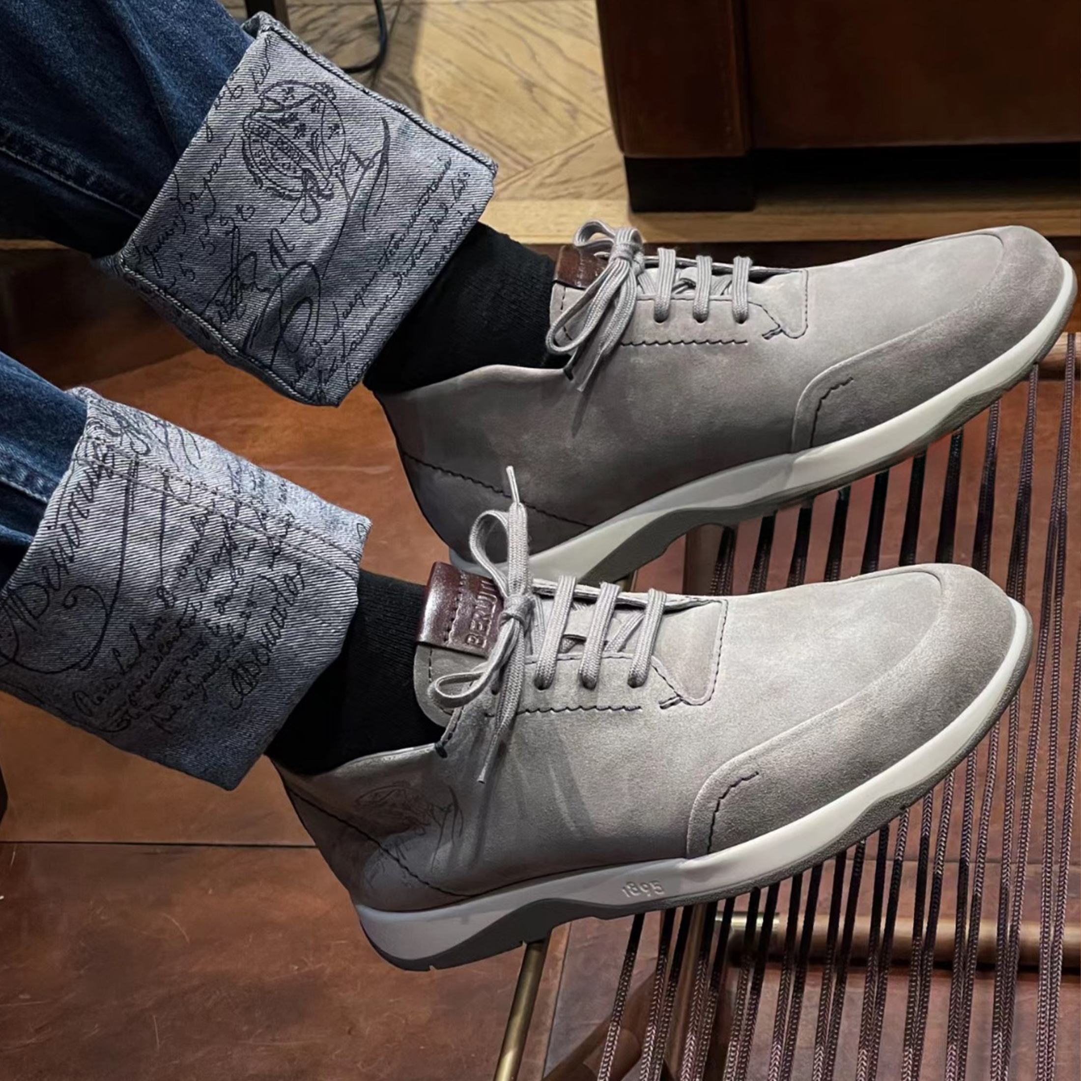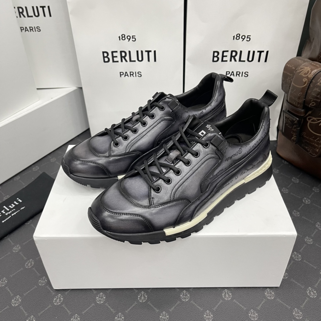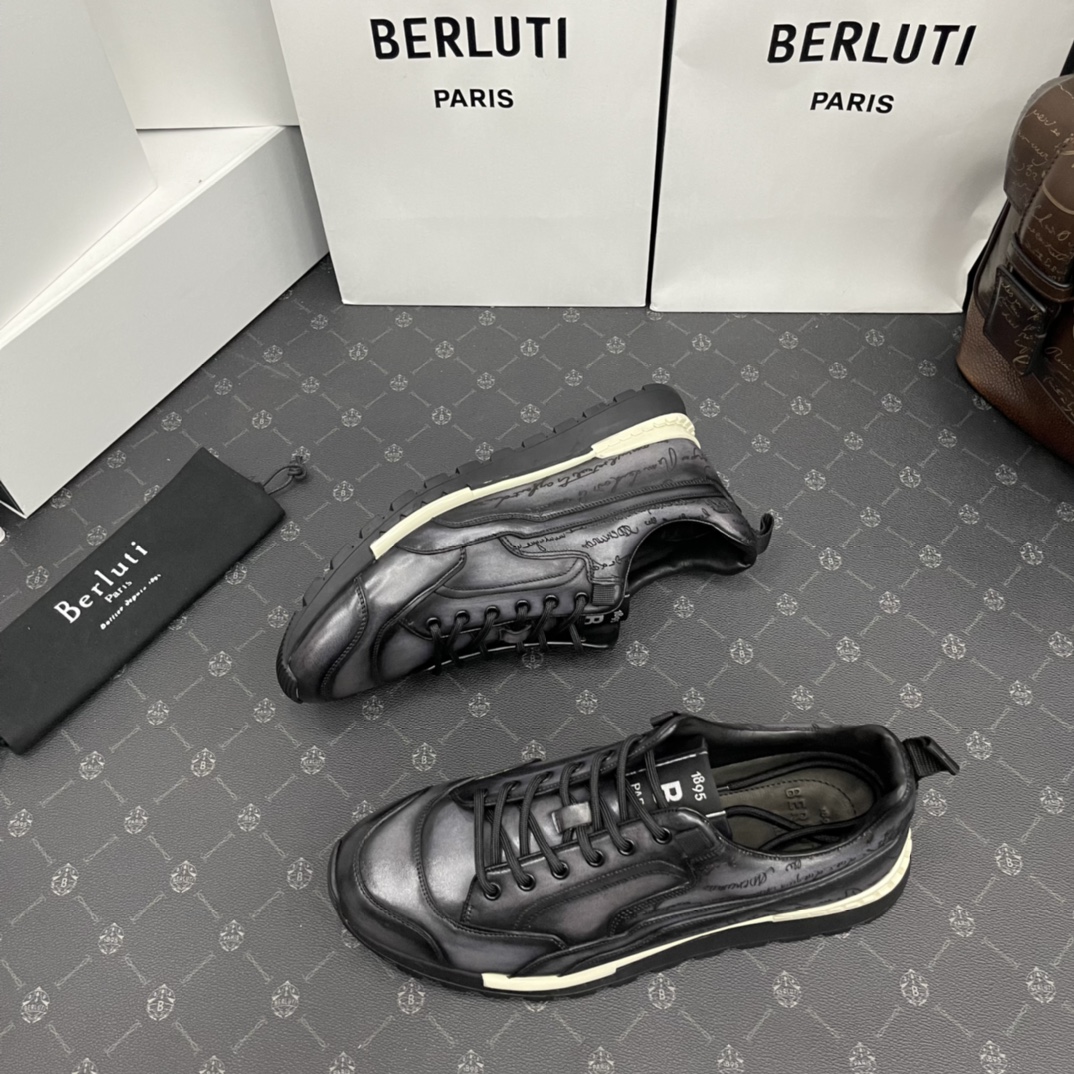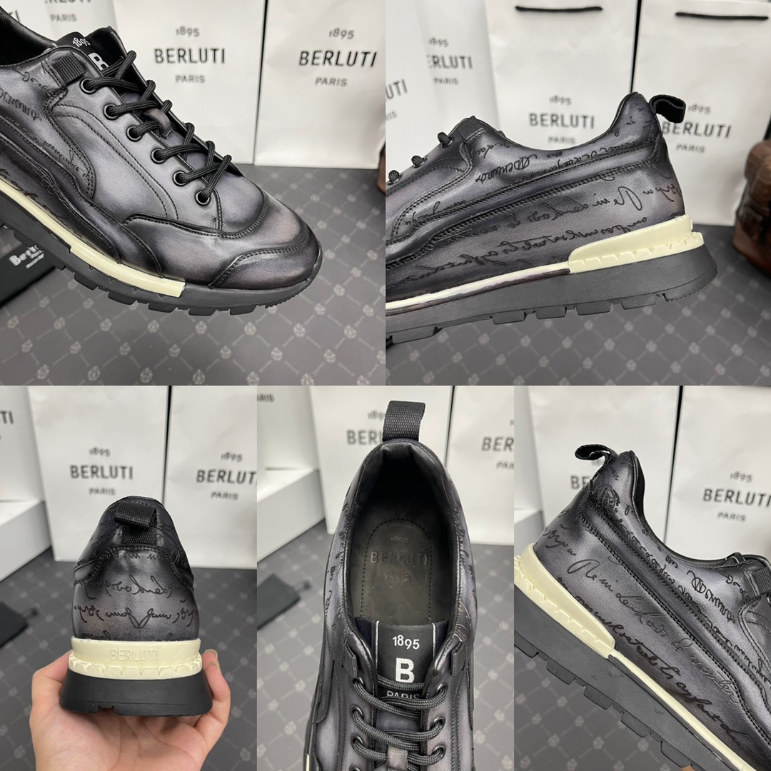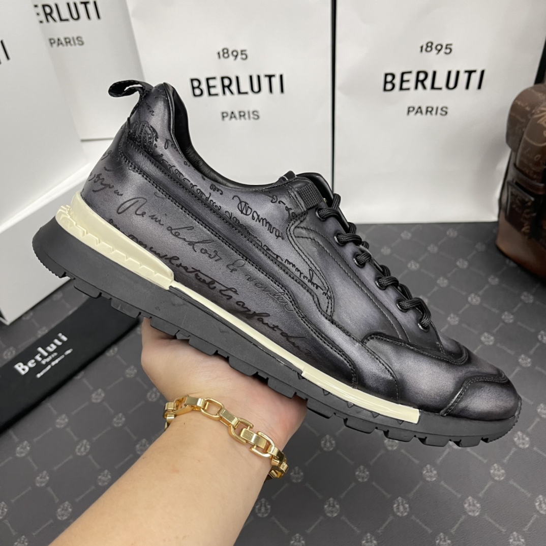 NIGO Berluti Men's Casual Grey Fast Track Scritto Graphic Leather Sneakers Shoes #nigo97772