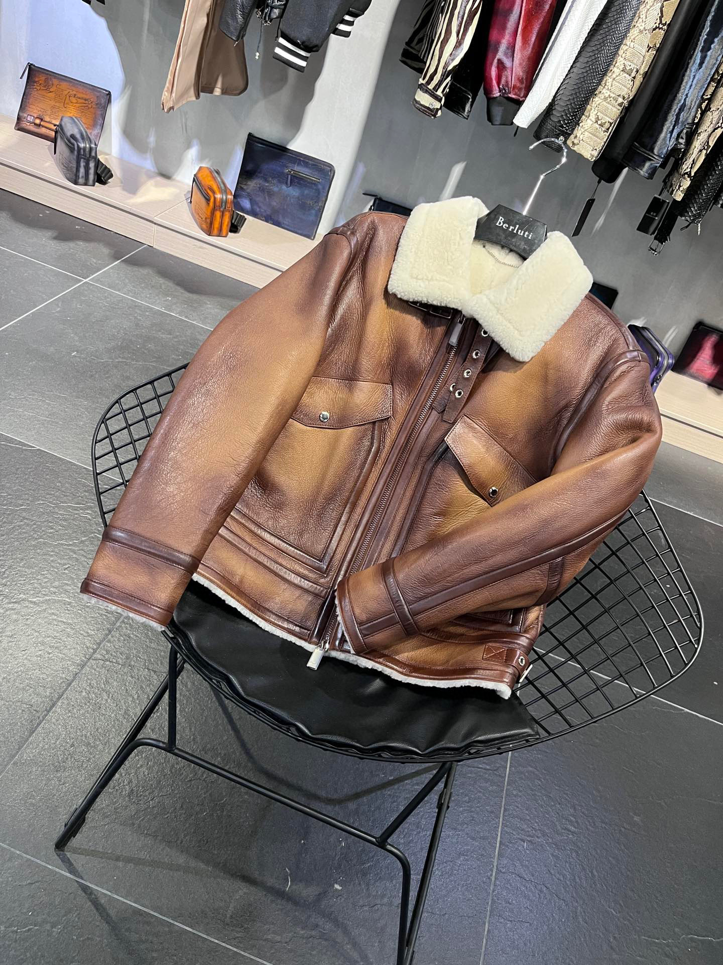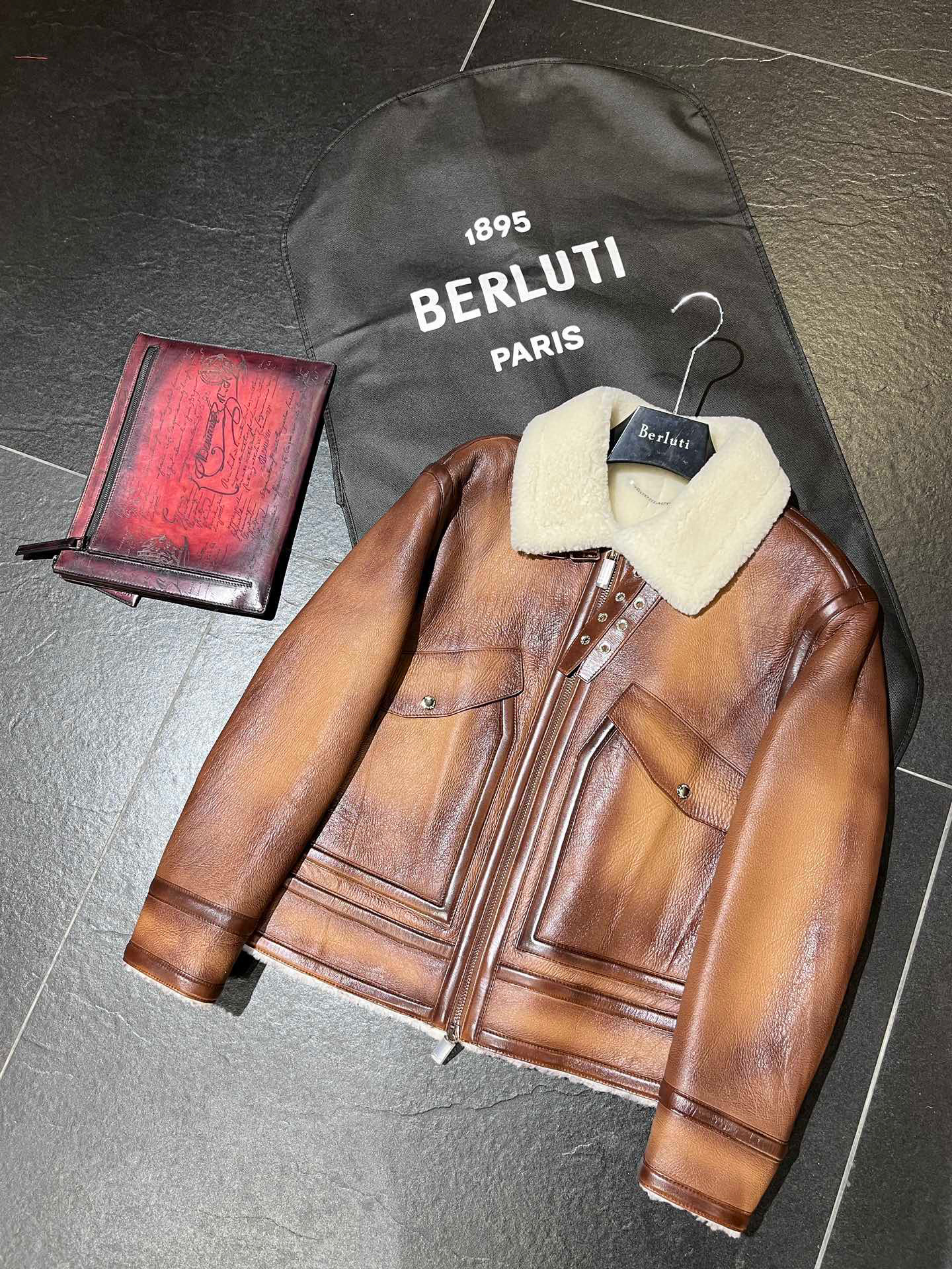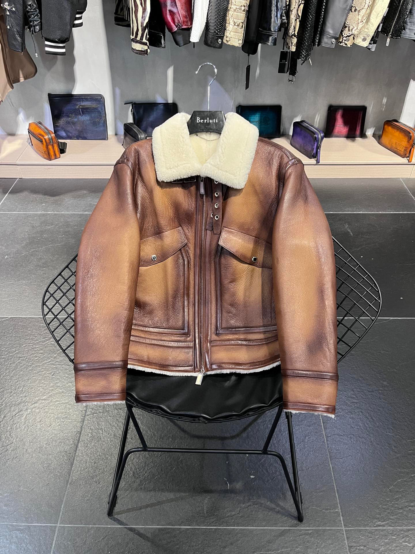 Berluti NIGO Man Grain Patina Leather Blouson With Shearling Jacket Coat #nigo6688