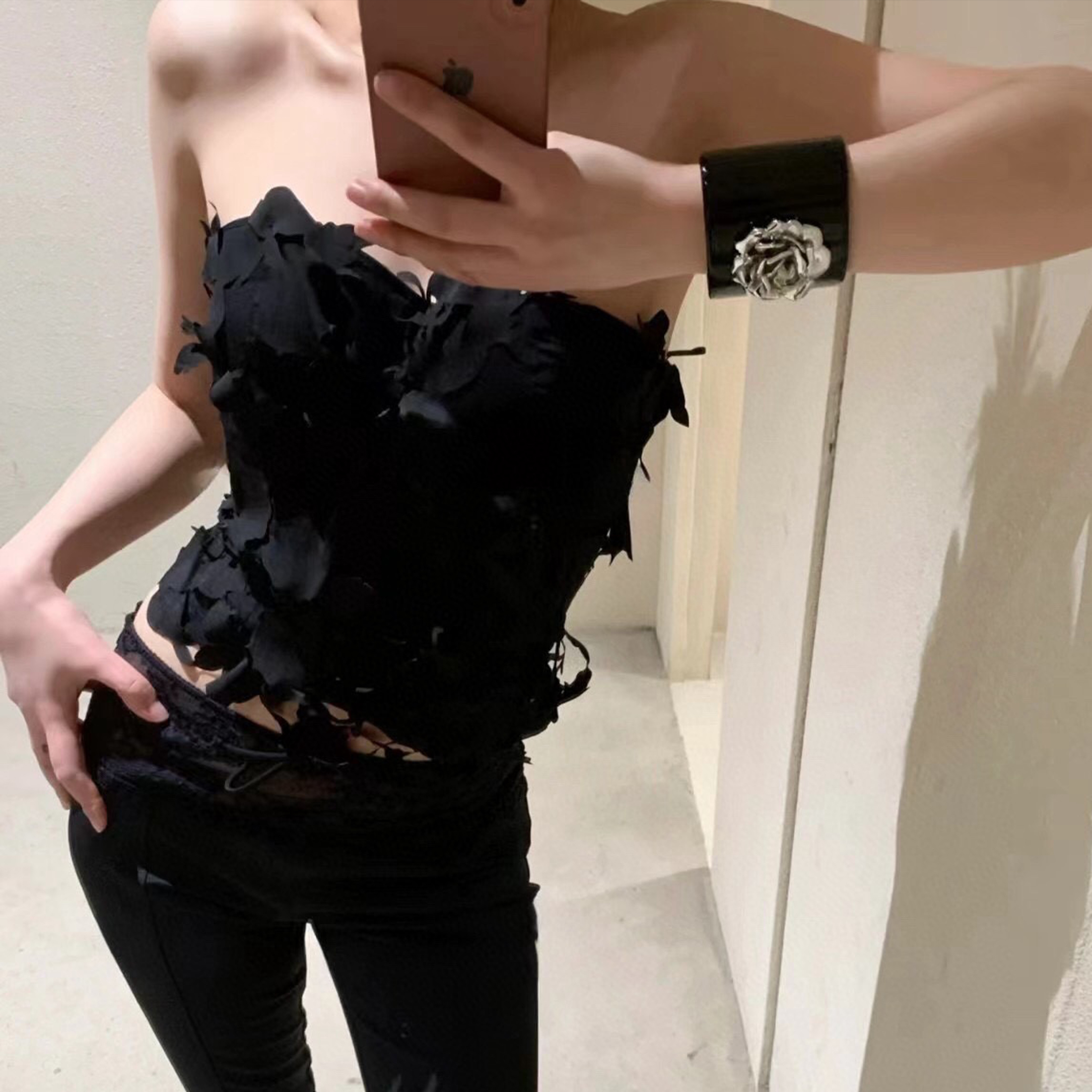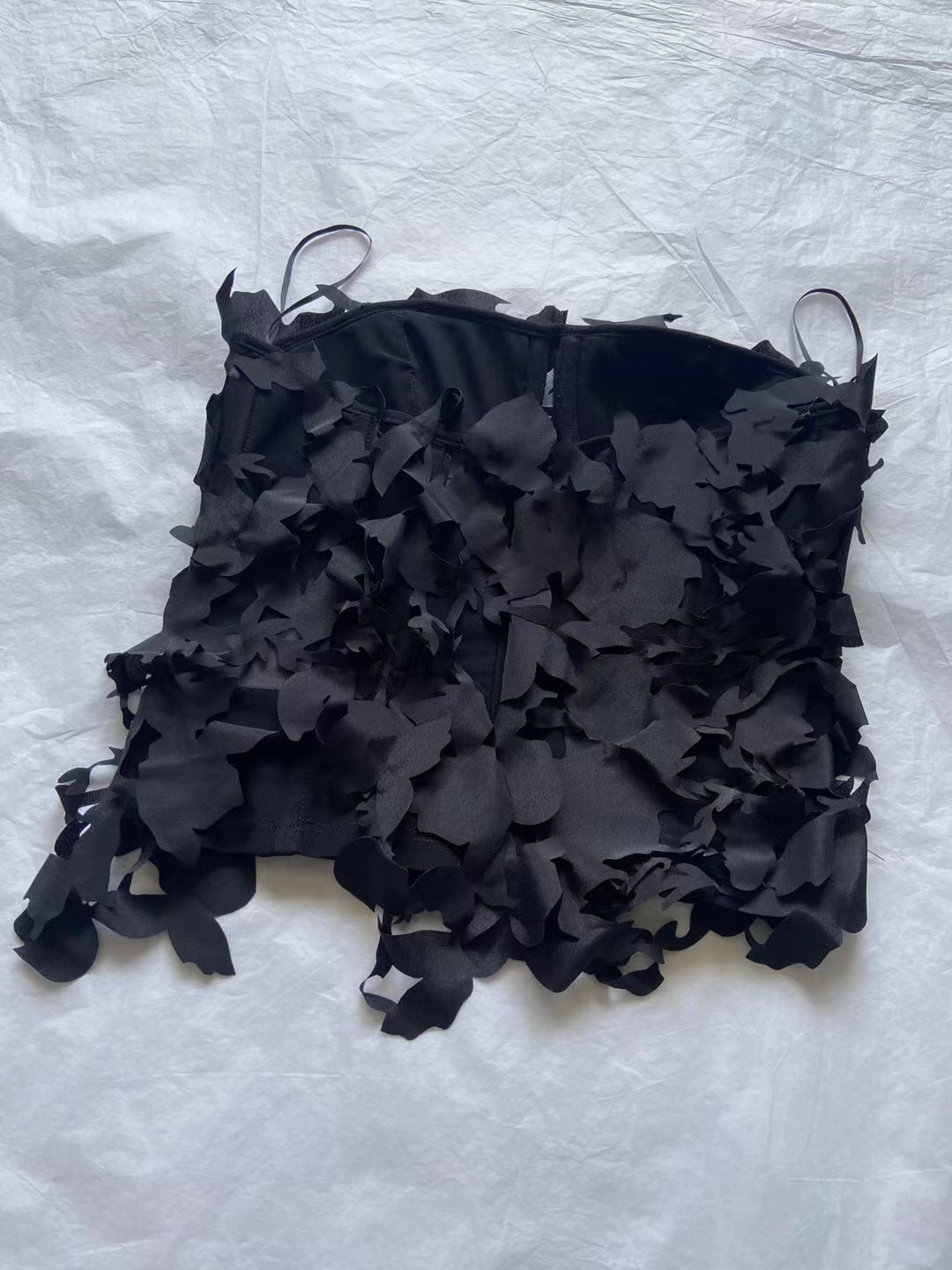 NIGO Blumarine Women's Spring And Summer Three-dimensional Butterfly Decoration Spice Girl Wrap Tight Top Fashion Camisole Top Ngvp #nigo8793