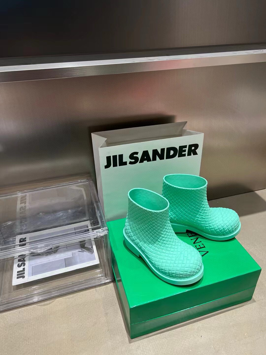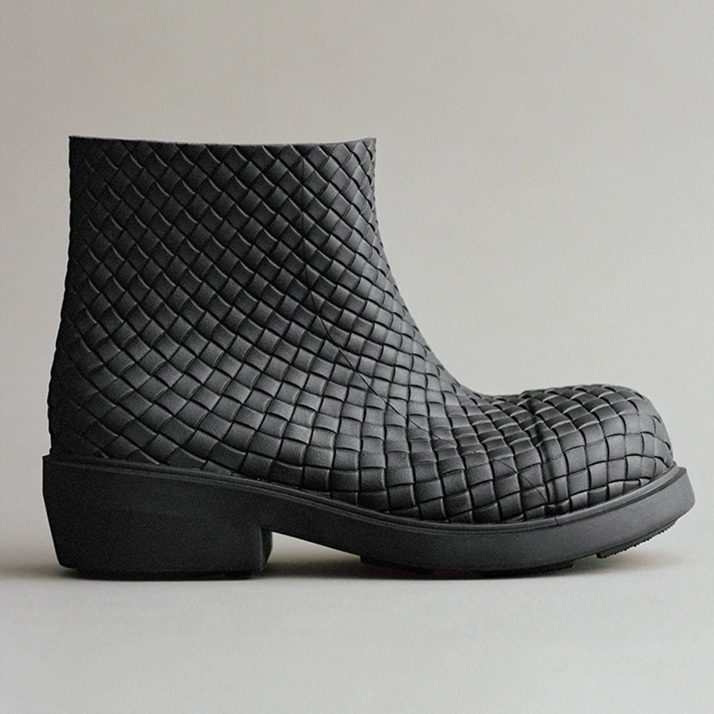 NIGO Bottega Veneta Women's Spring And Autumn Solid Color Fashion Woven Plaid Short Round Toe Rubber Boots Ngvp #nigo7314