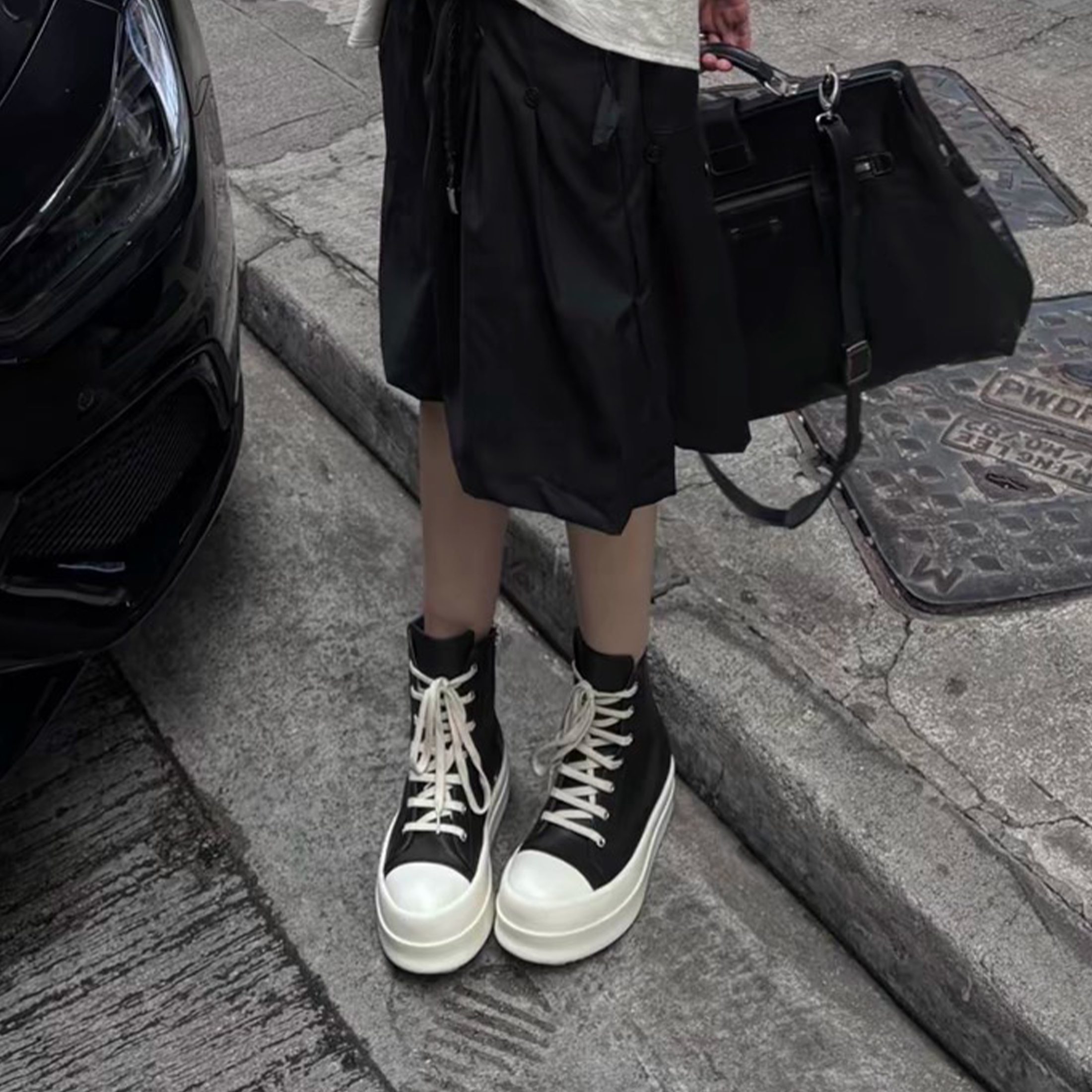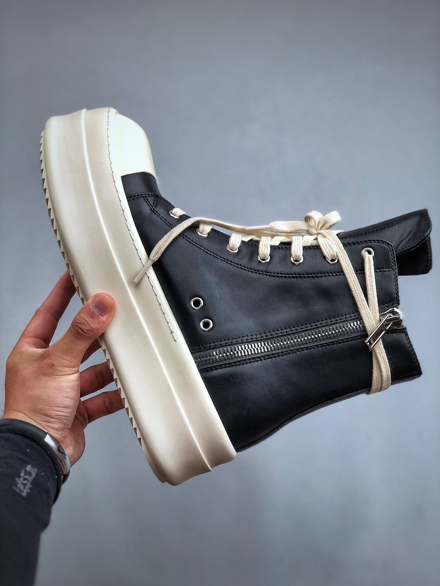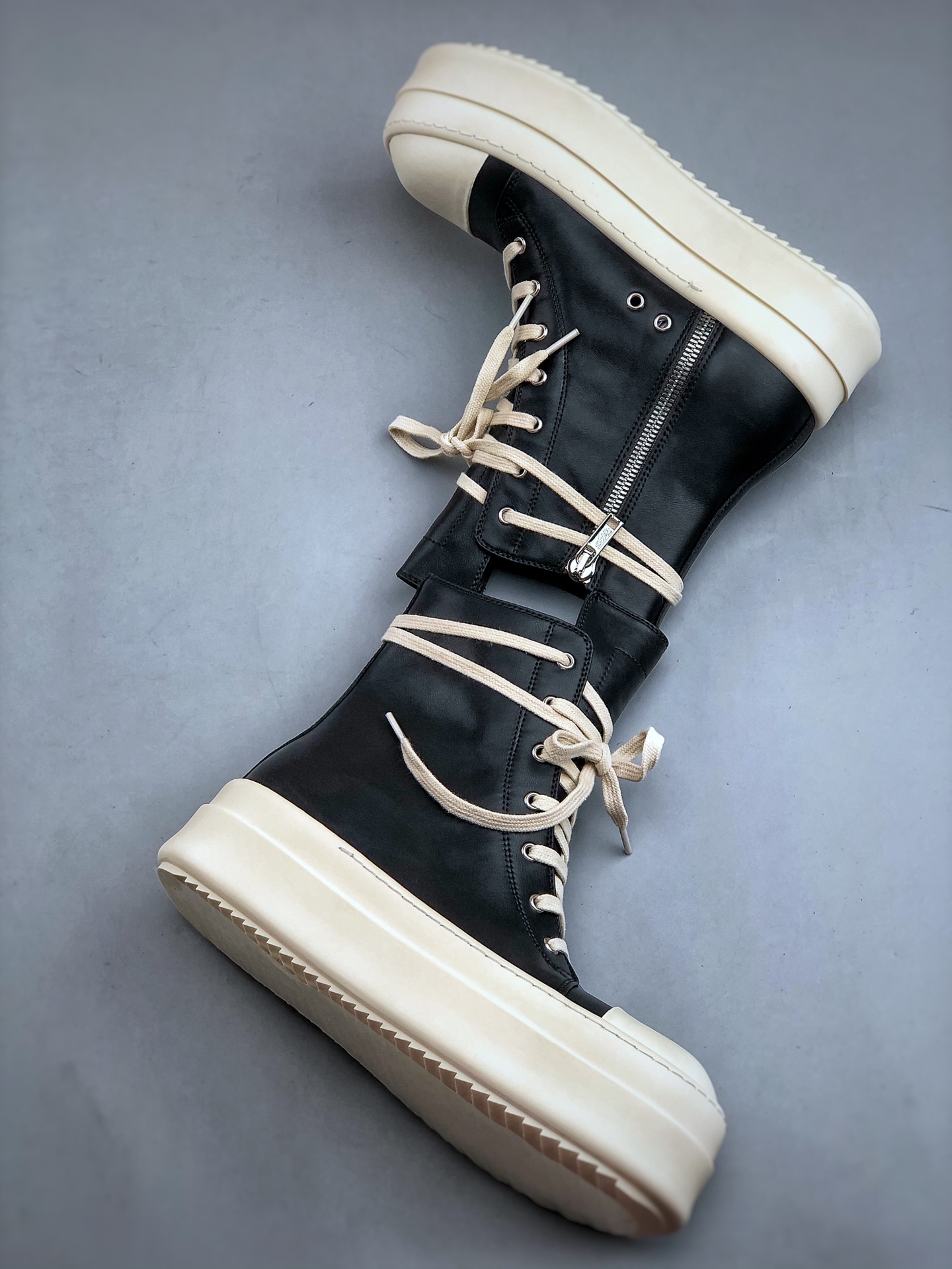 NIGO Rick Owens Men's Women's Four Seasons Black Cowhide Lace-up Round Head Boots High-top Zipper Fashion Comfortable Casual Thick Bottom Board Shoes Ngvp #nigo9149