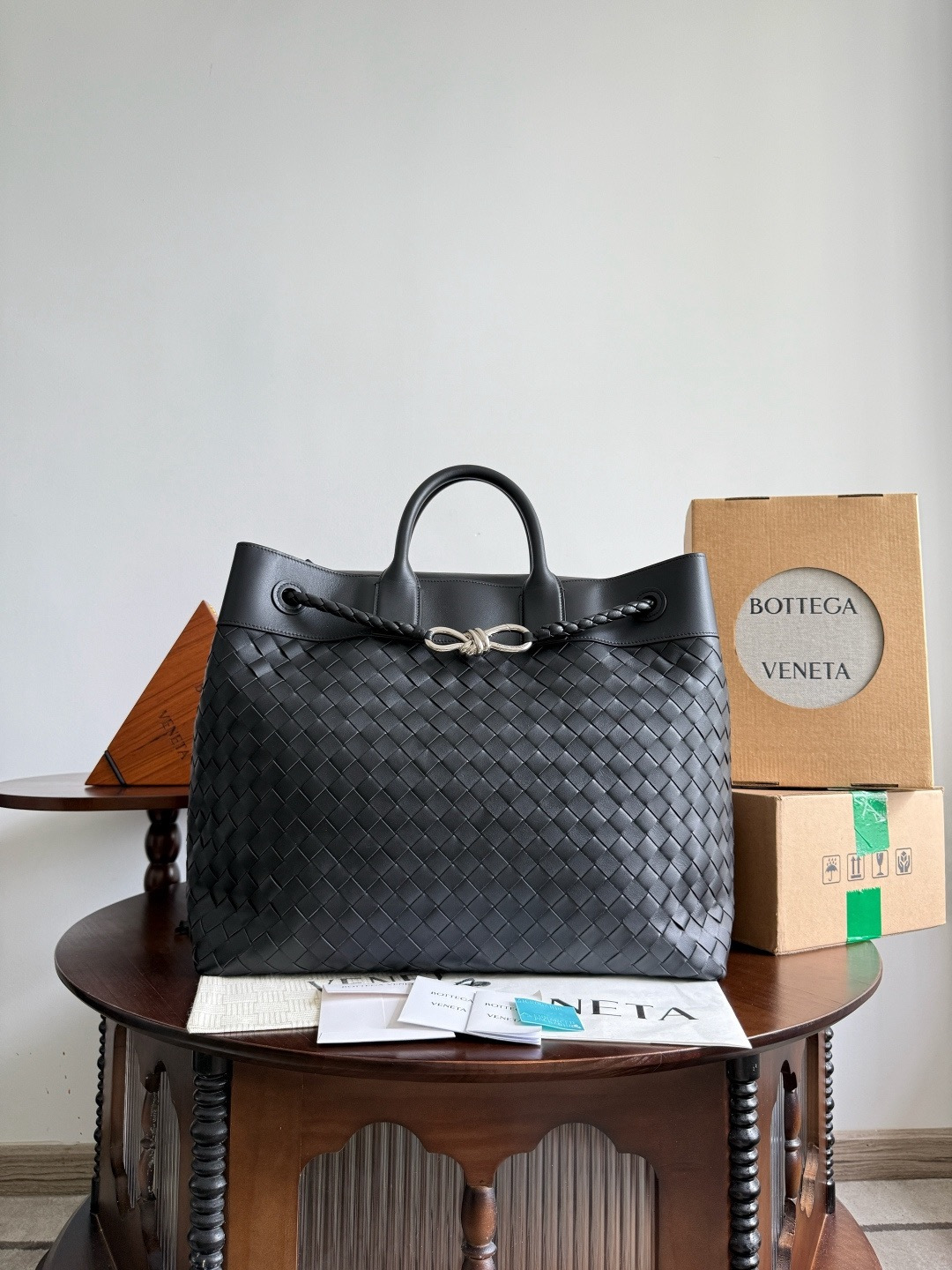 NIGO Bottega Veneta Andiamo Woven Design Leather Single Room Tote Women's Brown #nigo332699