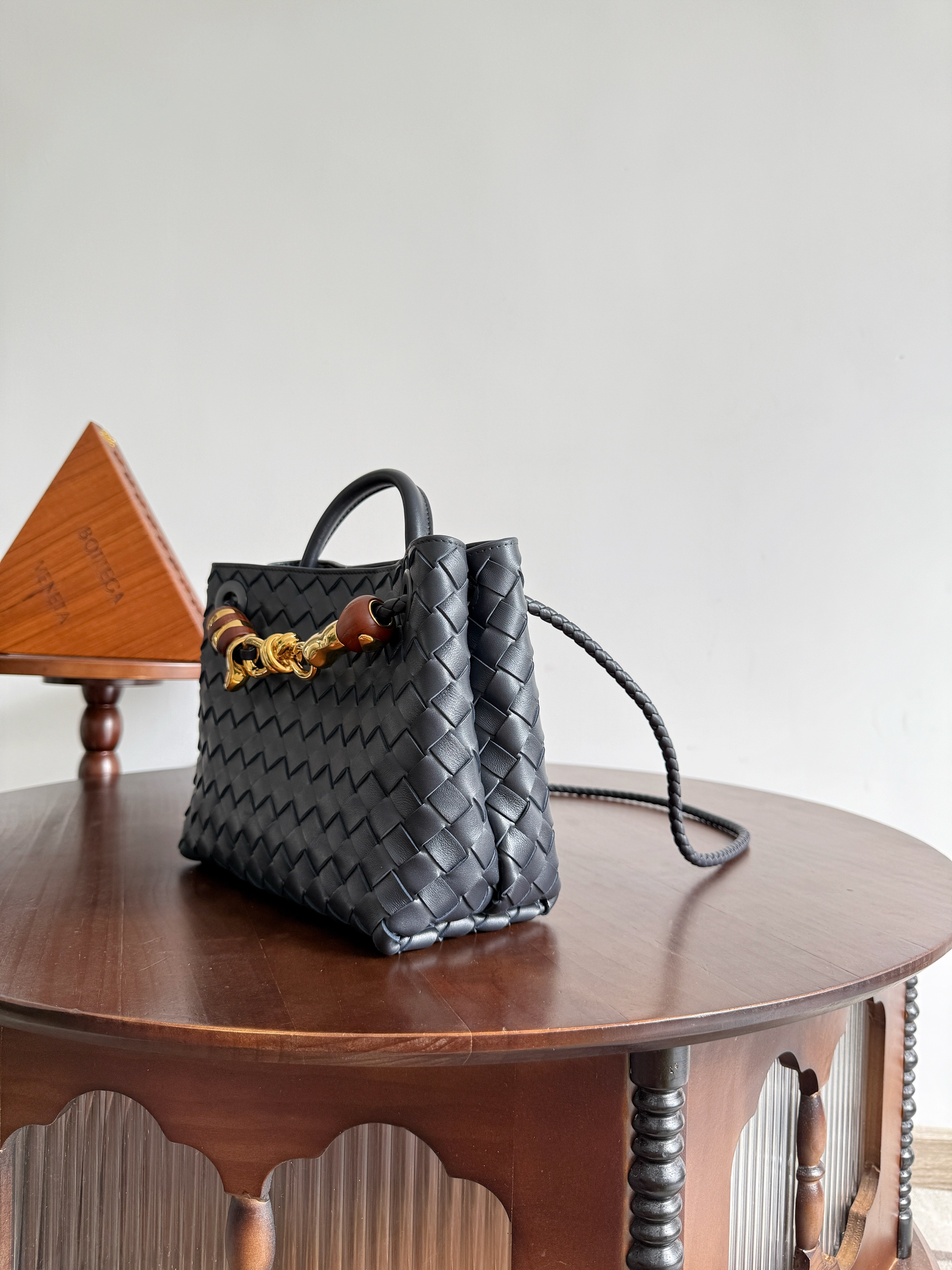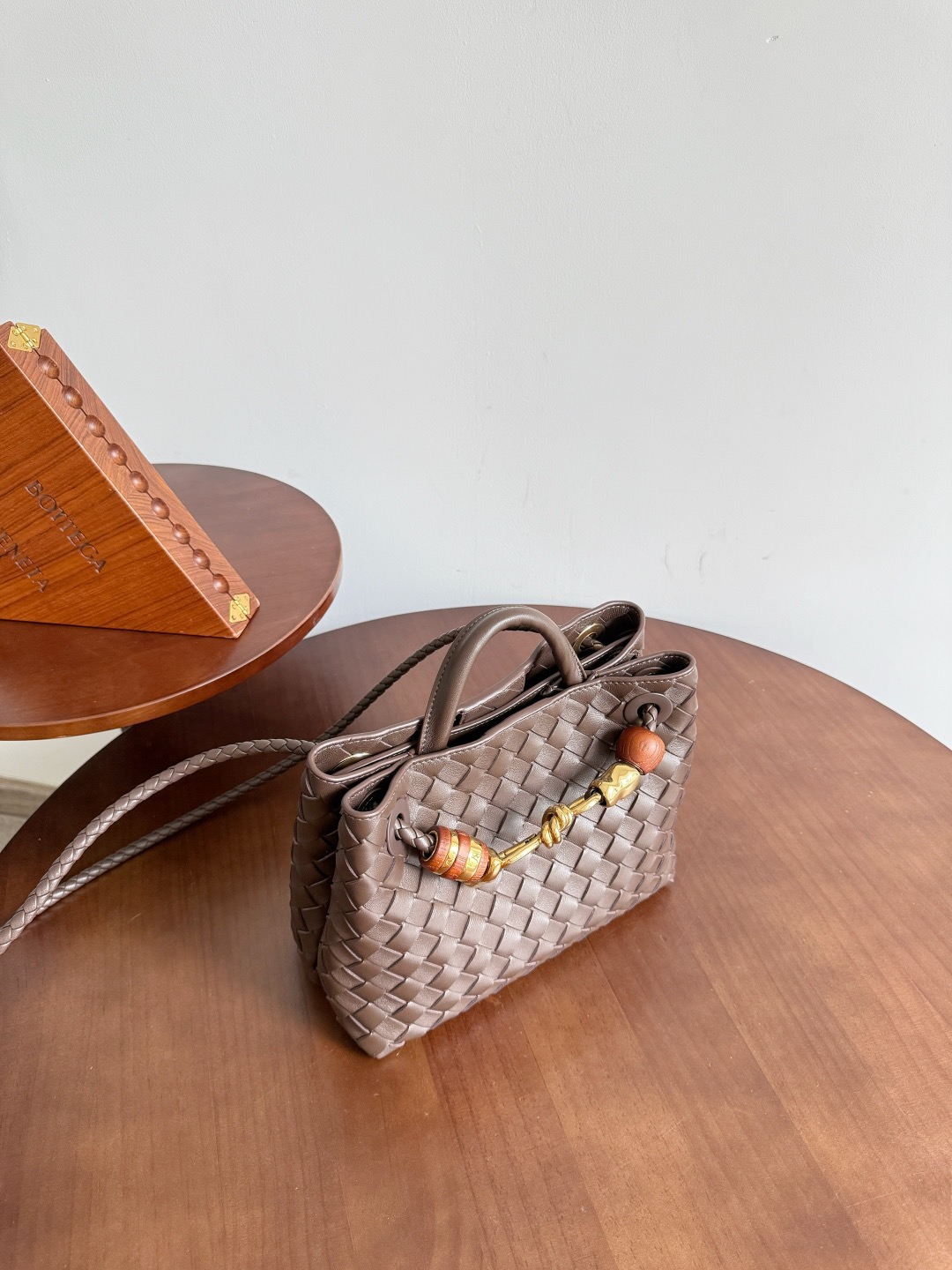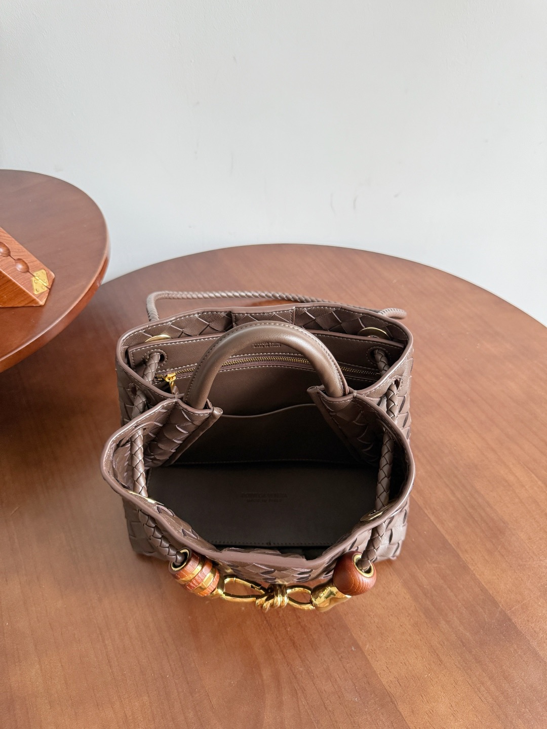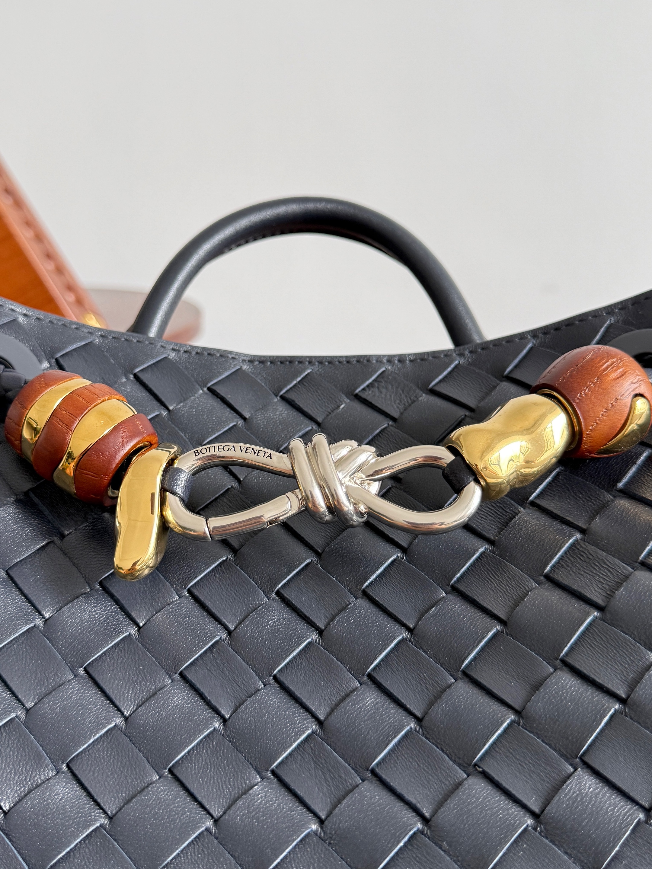 NIGO Bottega Veneta Andiamo Woven Design Leather Single Room Tote Women's Brown #nigo332699