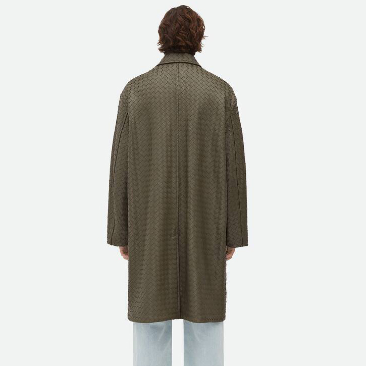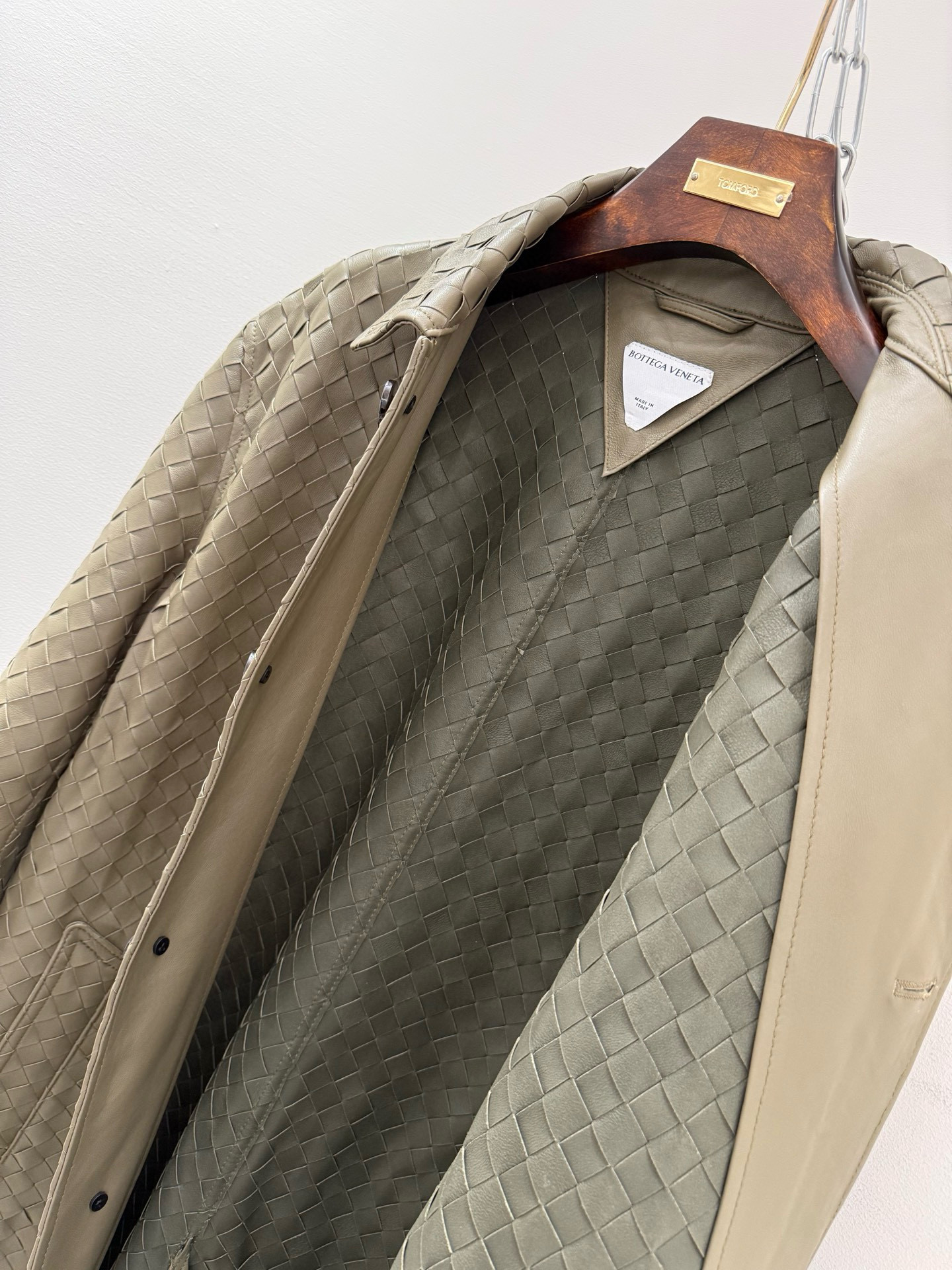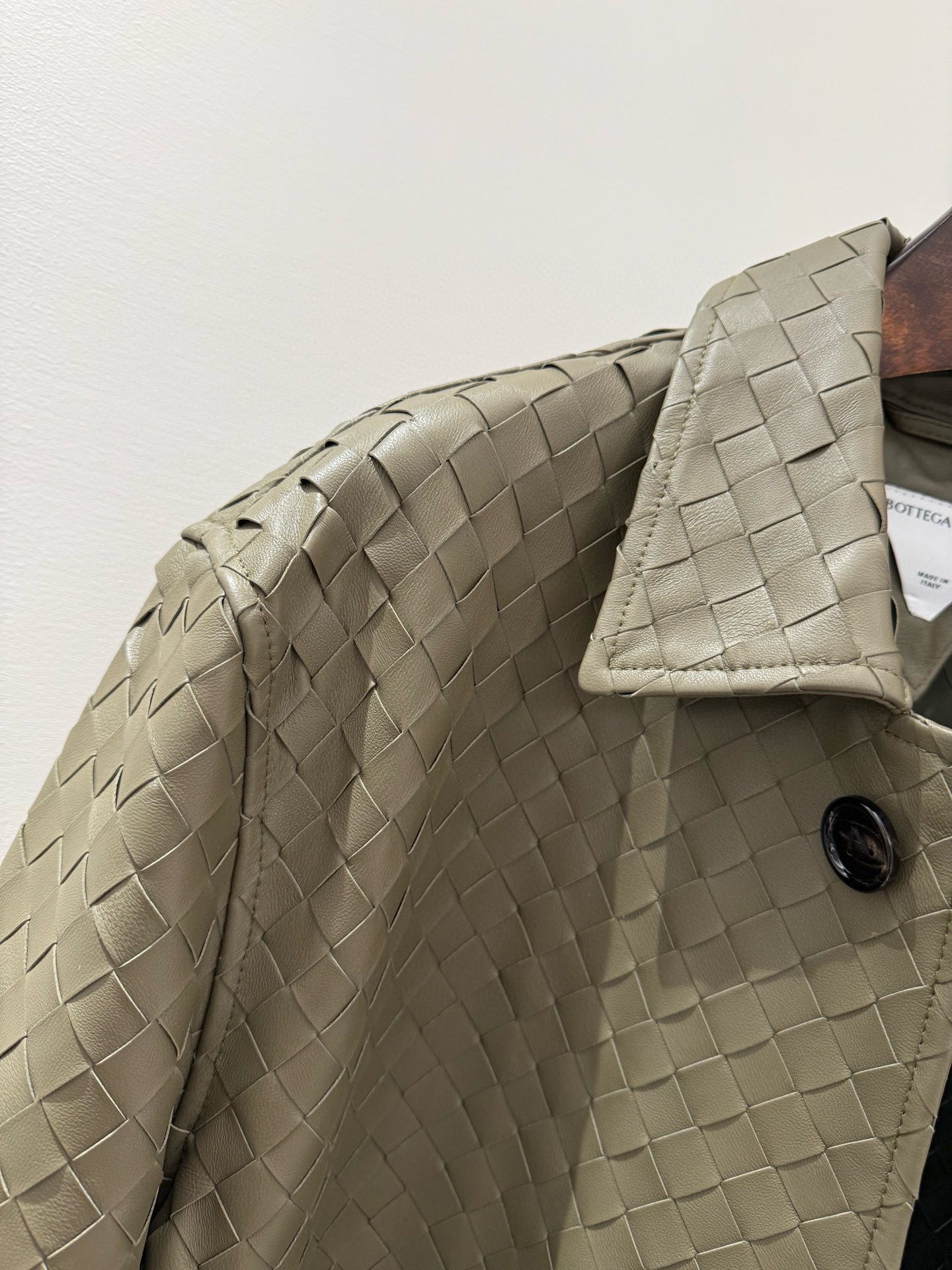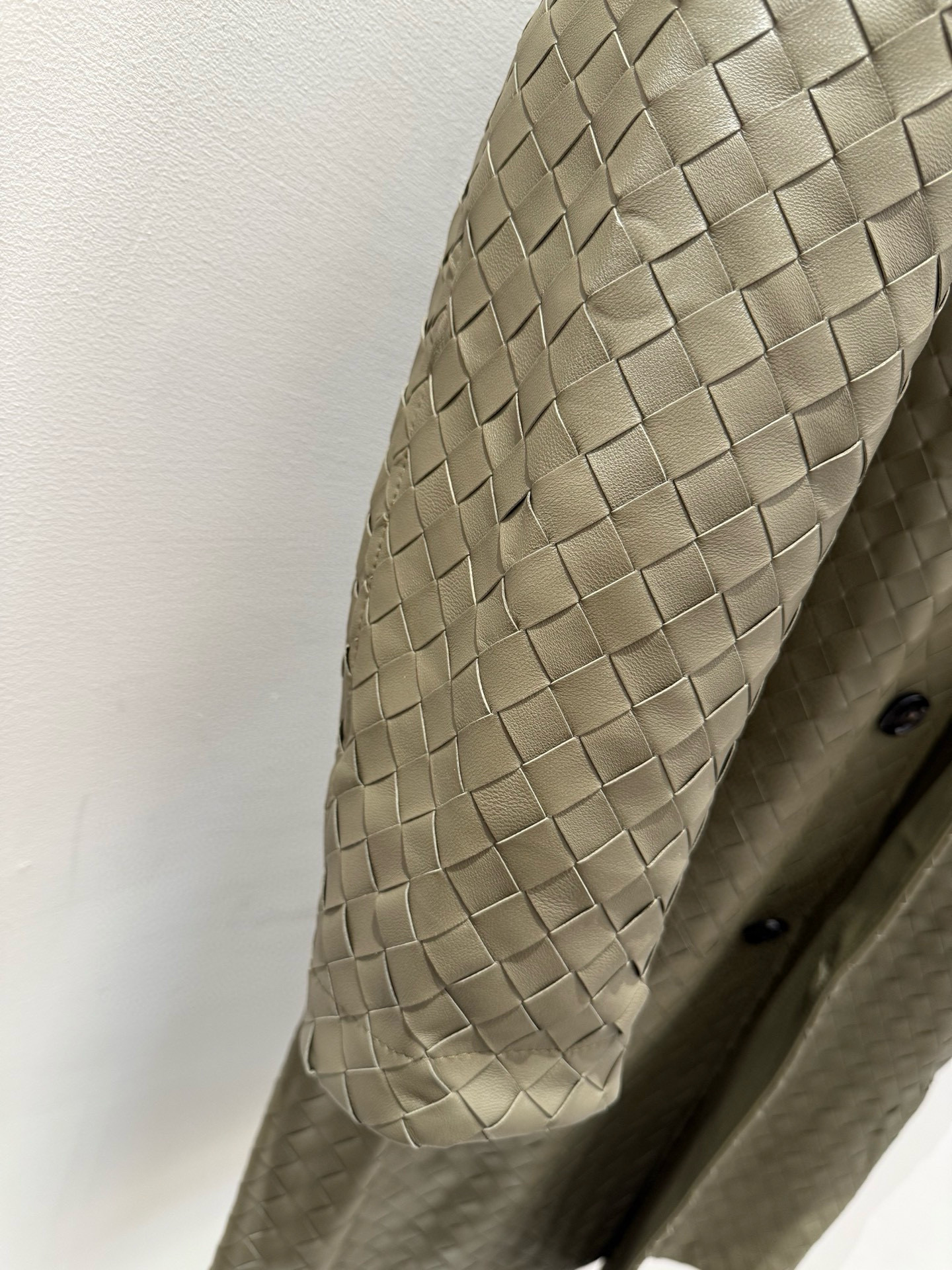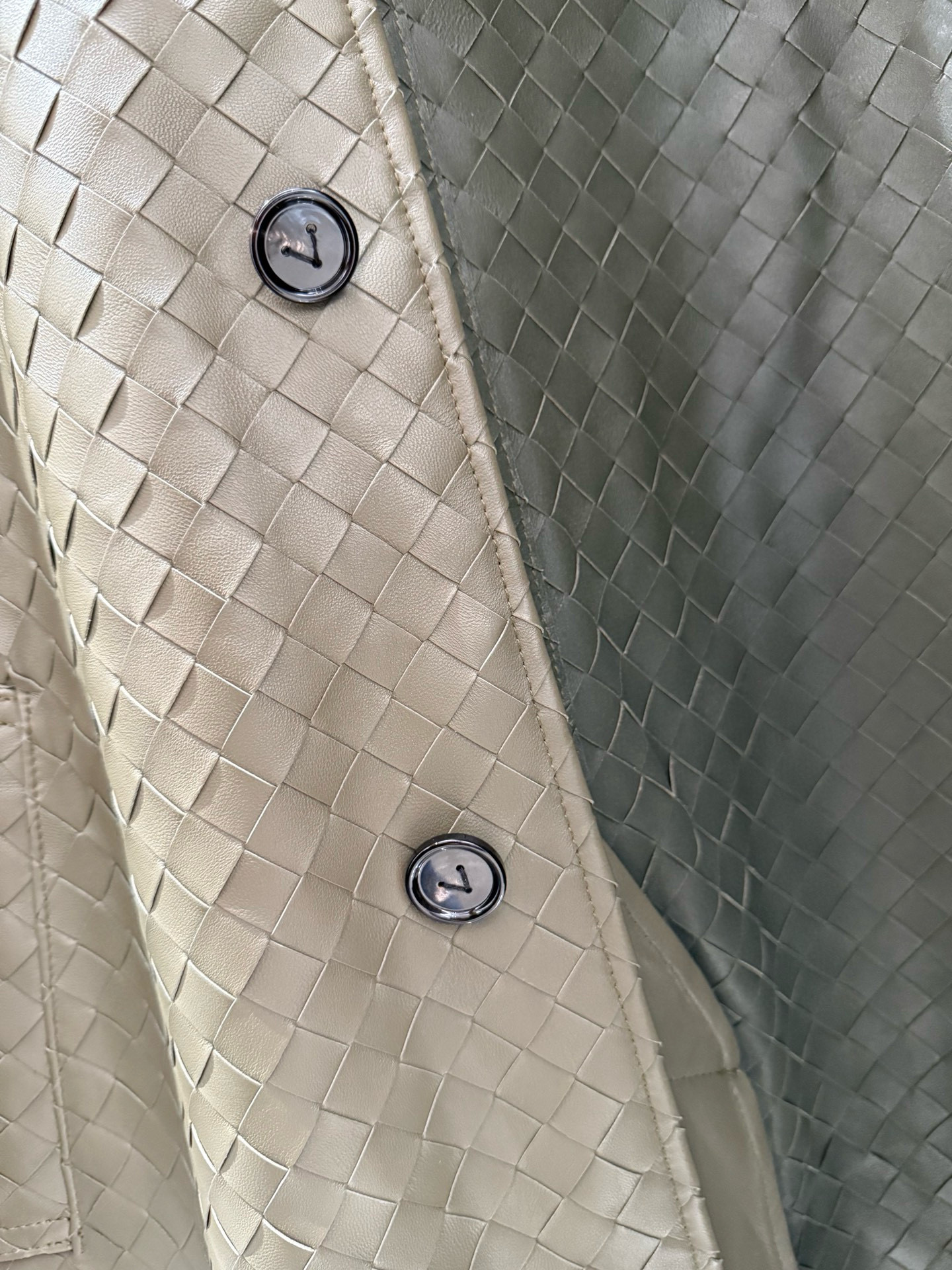 NIGO Bottega Veneta Men's And Women's Spring/Fall Fashion Casual Leather Hand Woven Collar Single Breasted Mid-Length Trench Coat Jacket #nigo78931