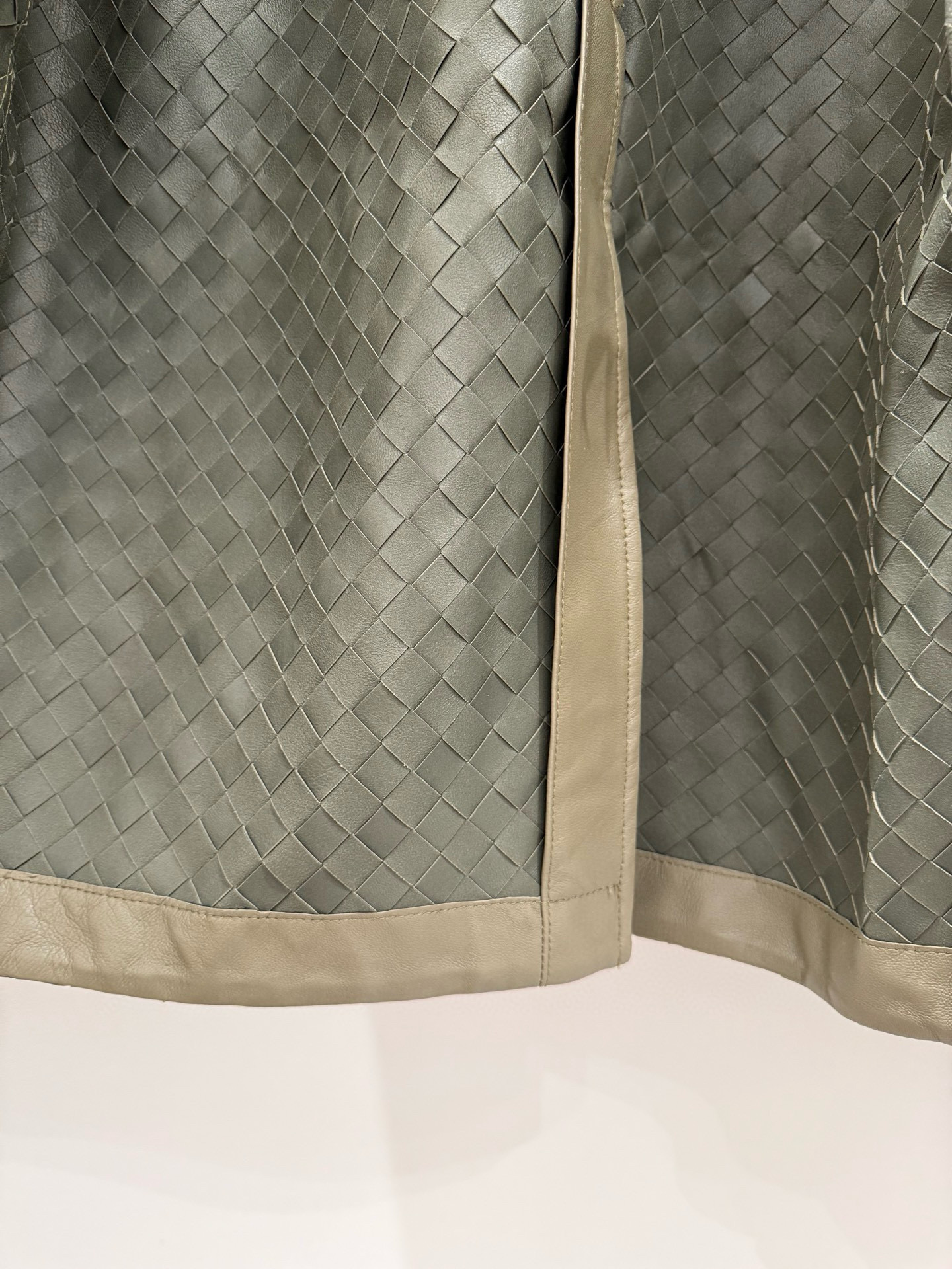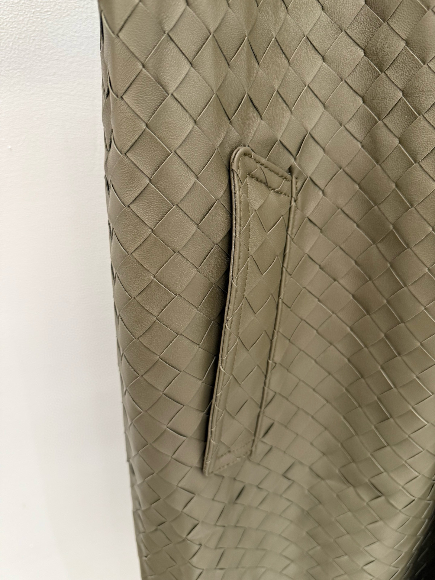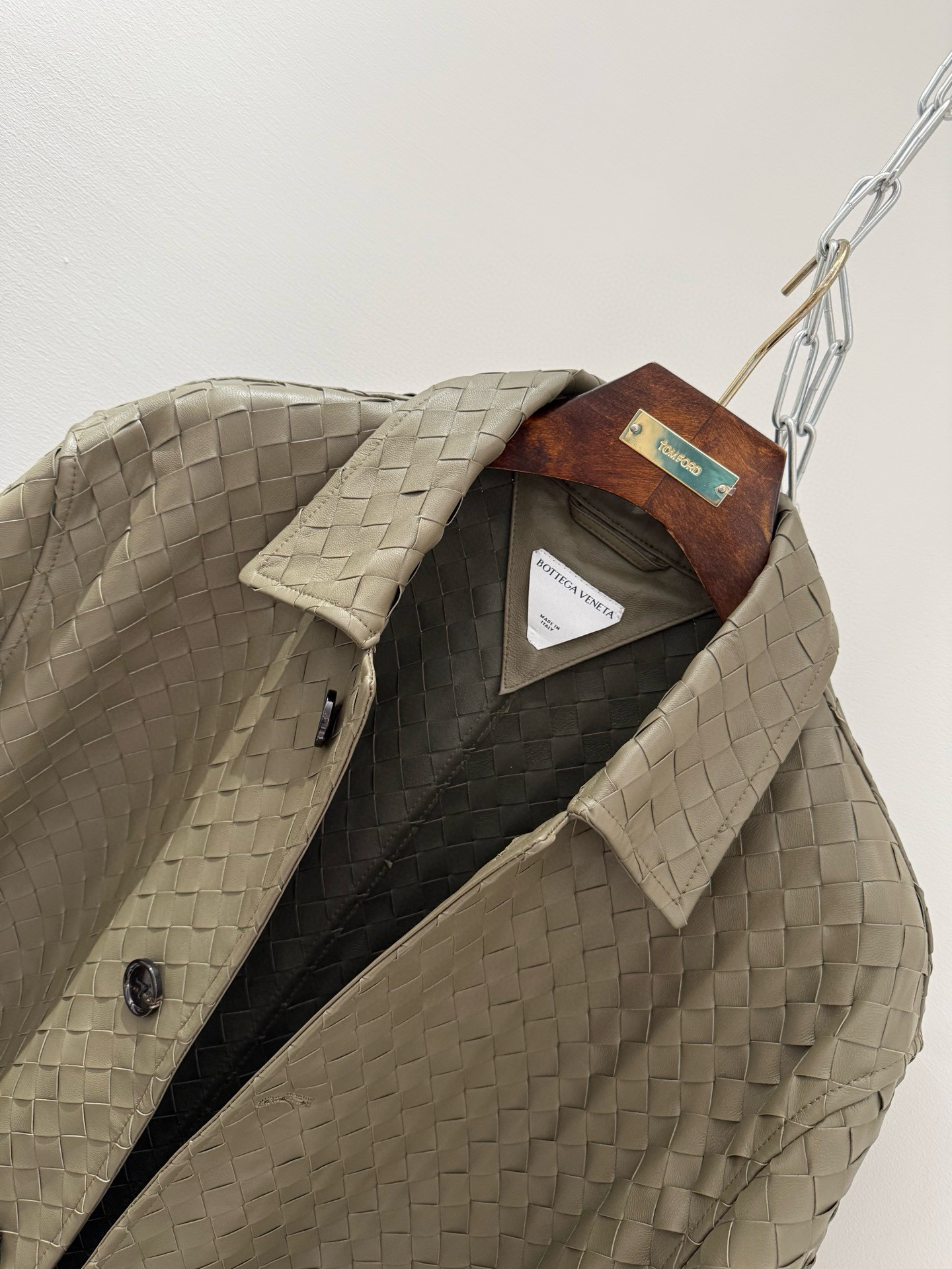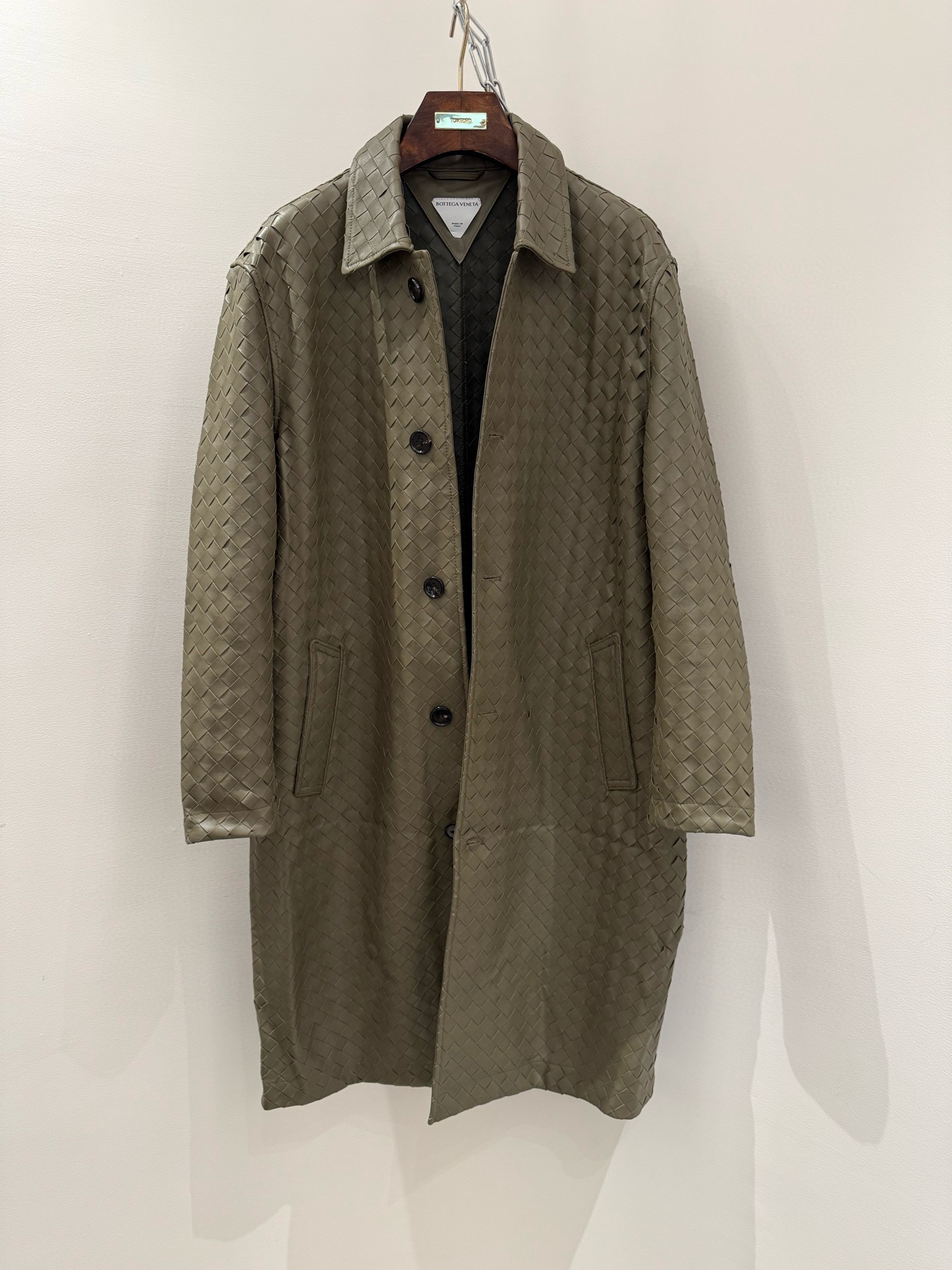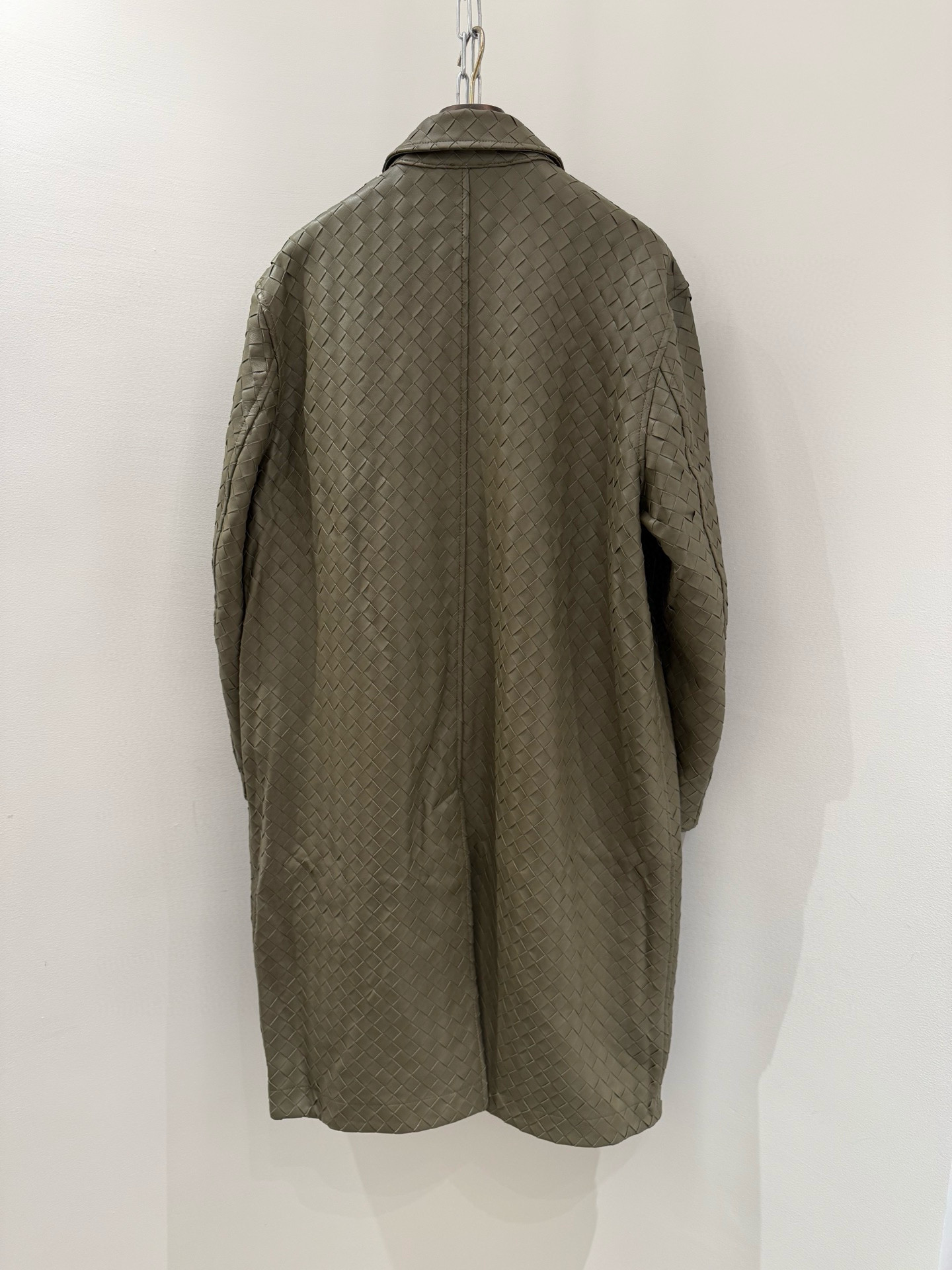 NIGO Bottega Veneta Men's And Women's Spring/Fall Fashion Casual Leather Hand Woven Collar Single Breasted Mid-Length Trench Coat Jacket #nigo78931