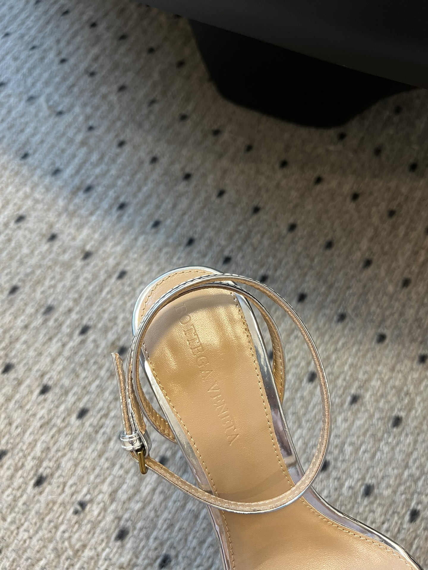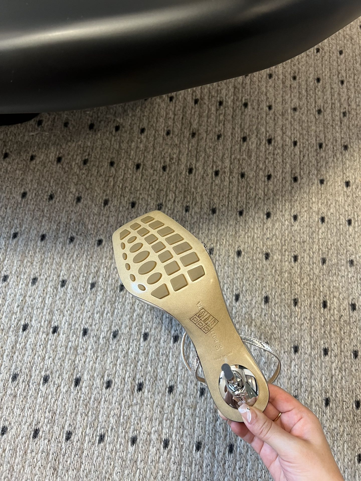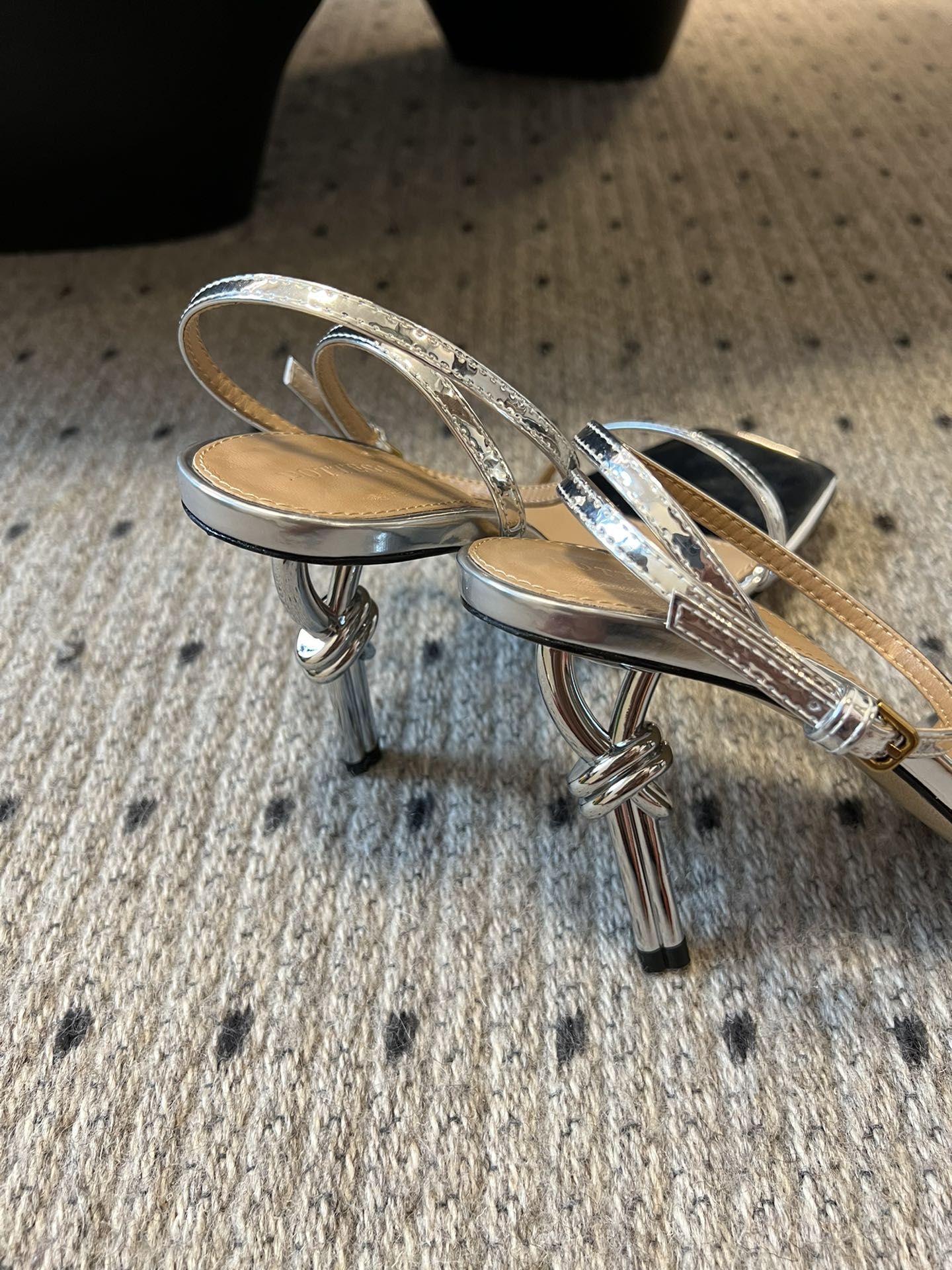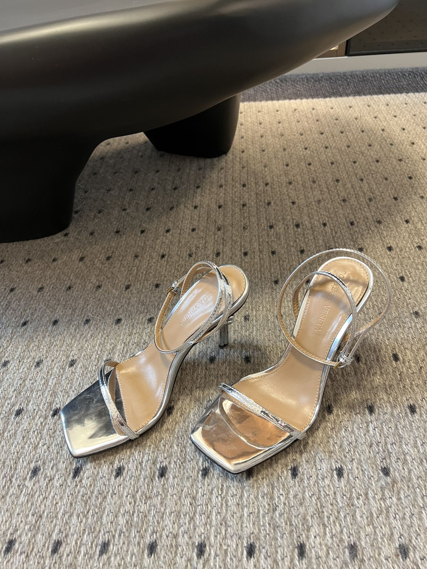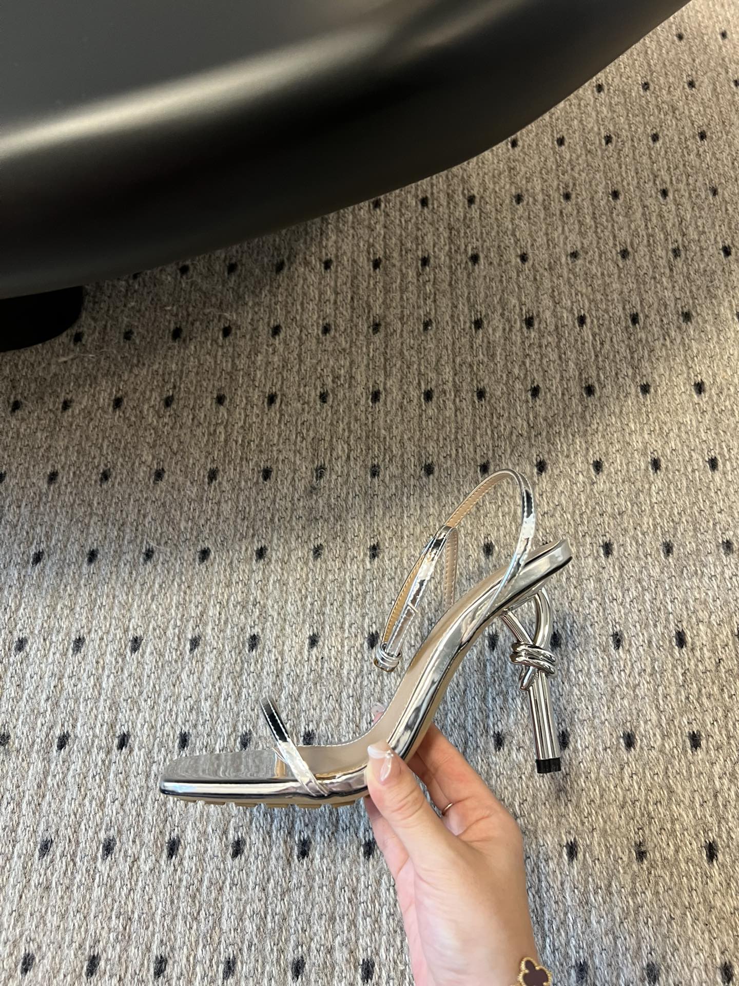 NIGO Bottega Veneta Women's Sandali Knot Woven Metallic Silver Heels Sheepskin Square Toe Sandals Temperament Shoes #nigo71339