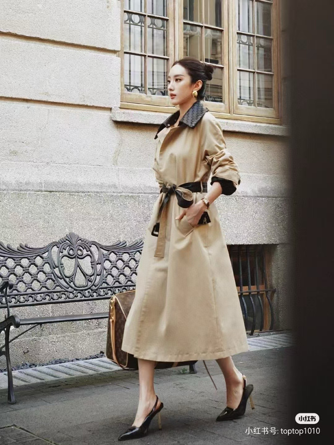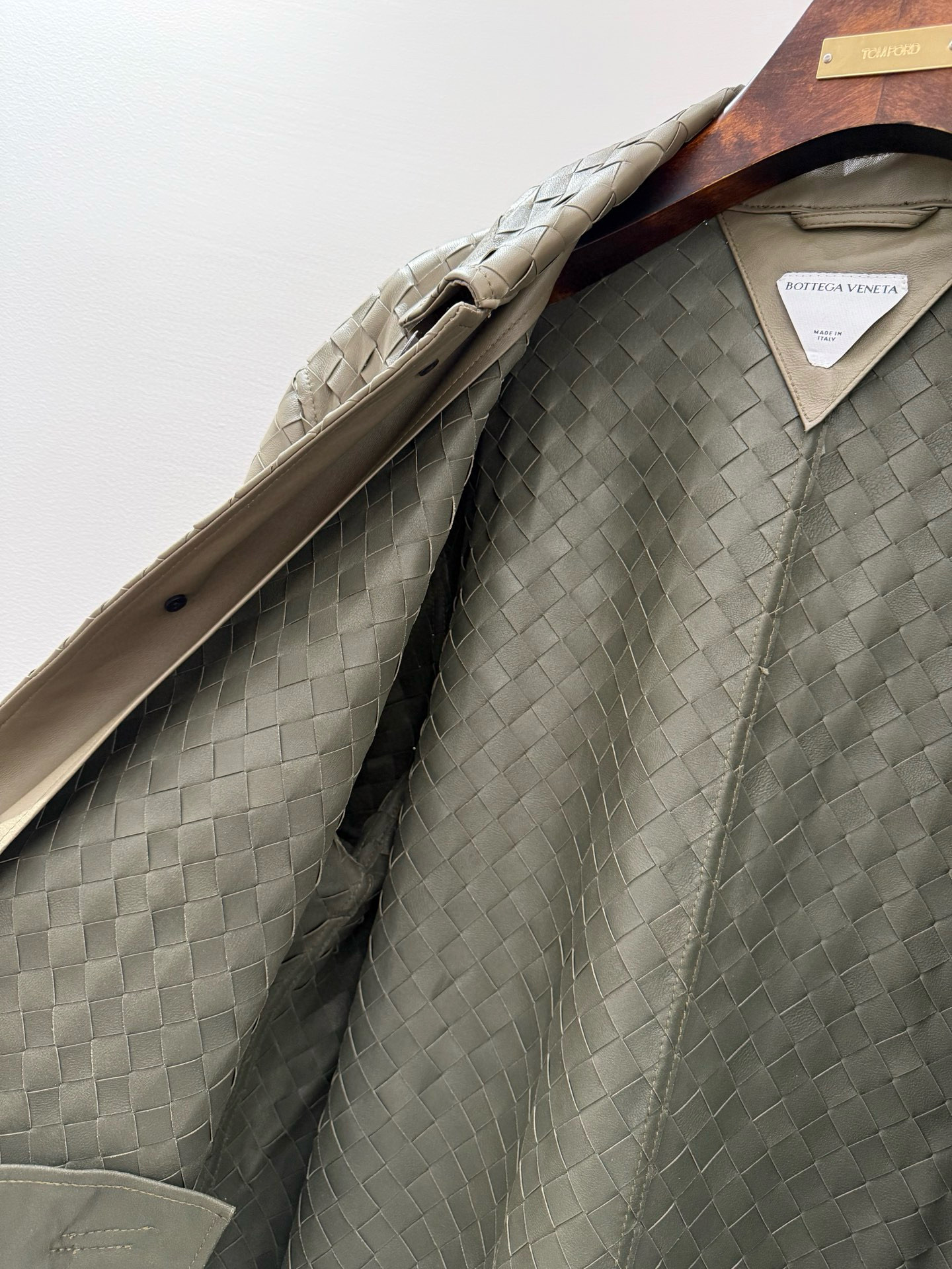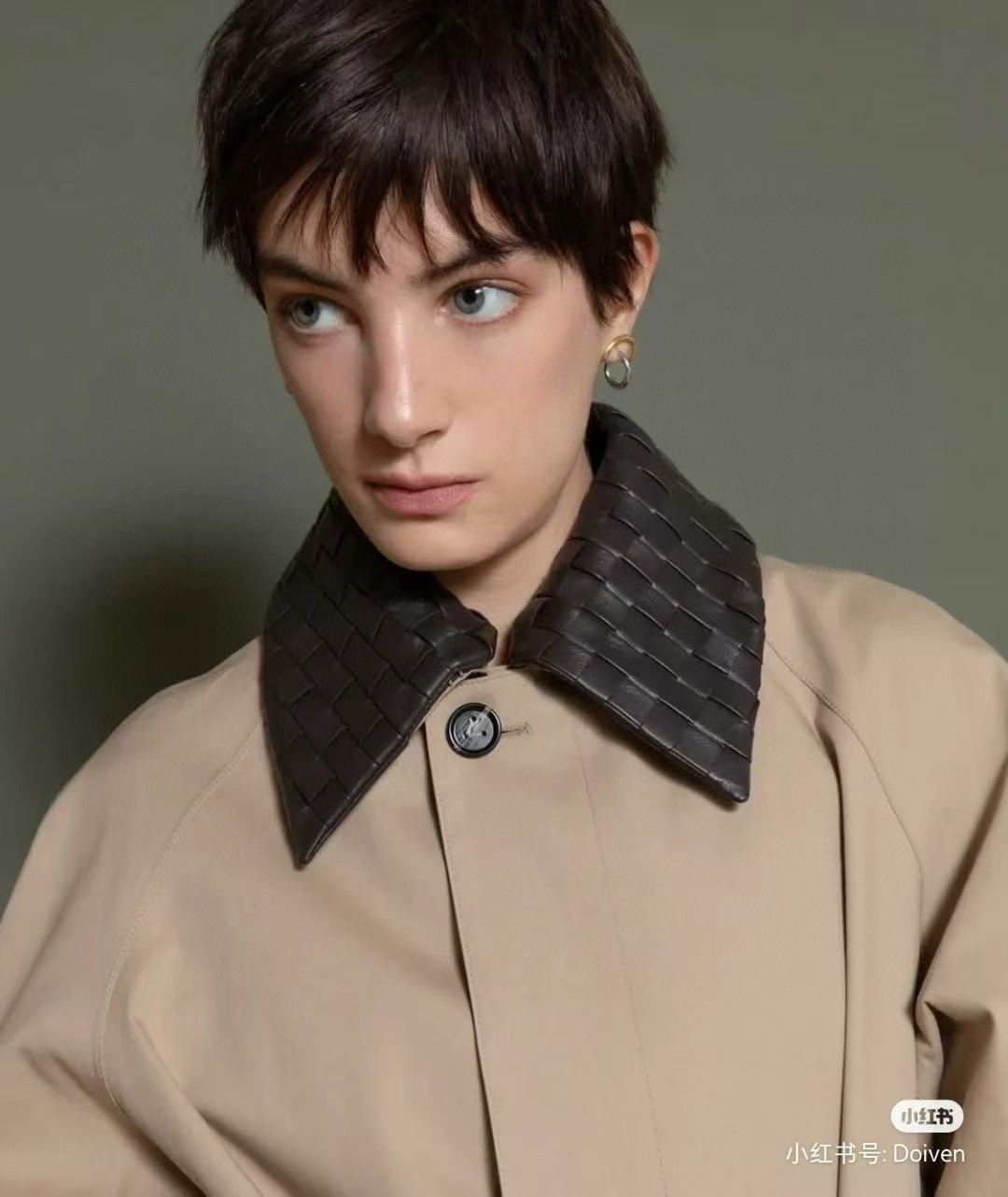 NIGO Bottega Veneta Women's Knitted Collar Solid Color Double-Breasted Spring/Fall Lapel Tie-Front Trench Coat Ngvp #nigo2515
