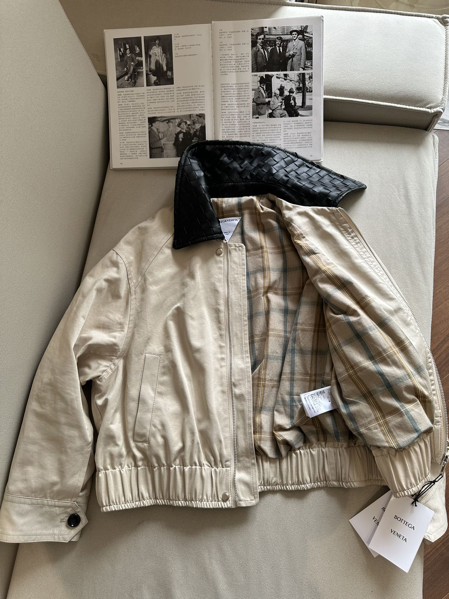 NIGO Bottega Veneta Men's Spring/Autumn Contrasting Collar Zipper Long Sleeve Leather Jacket #nigo77115