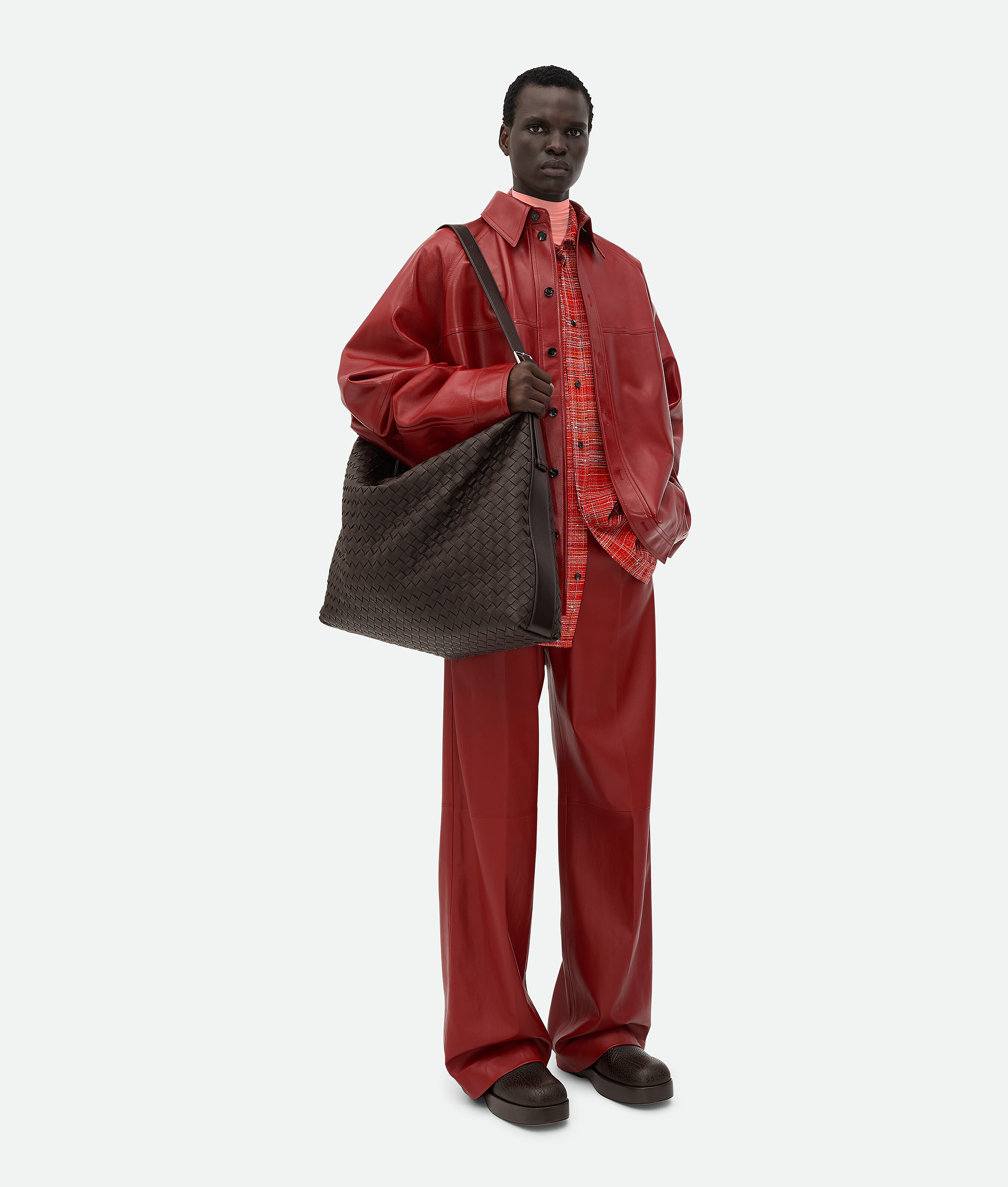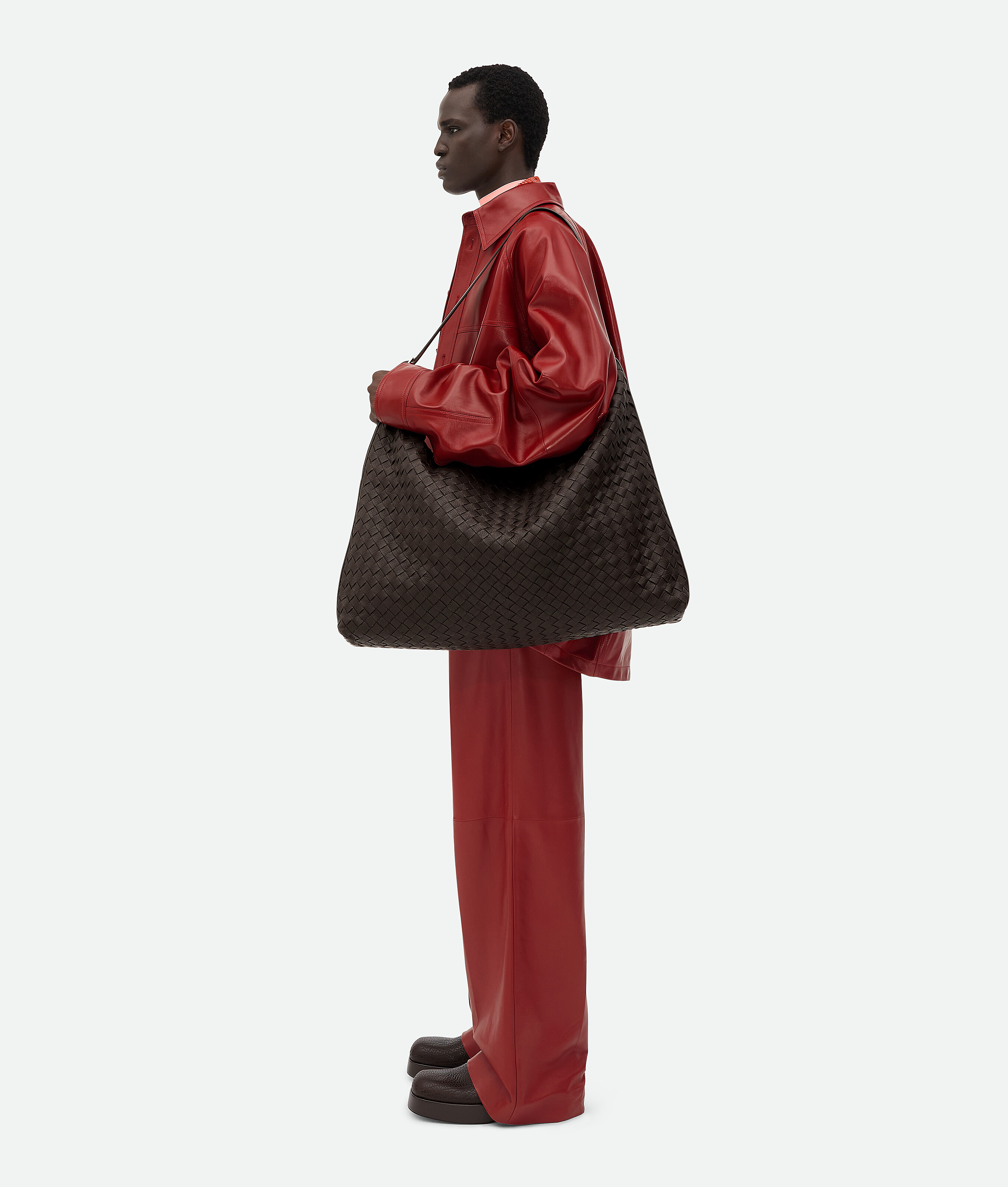 NIGO Bottega Veneta Intrecciato Men's Solid Color Adjustable Detachable Shoulder Strap Woven Calfskin Travel Bag #nigo77472