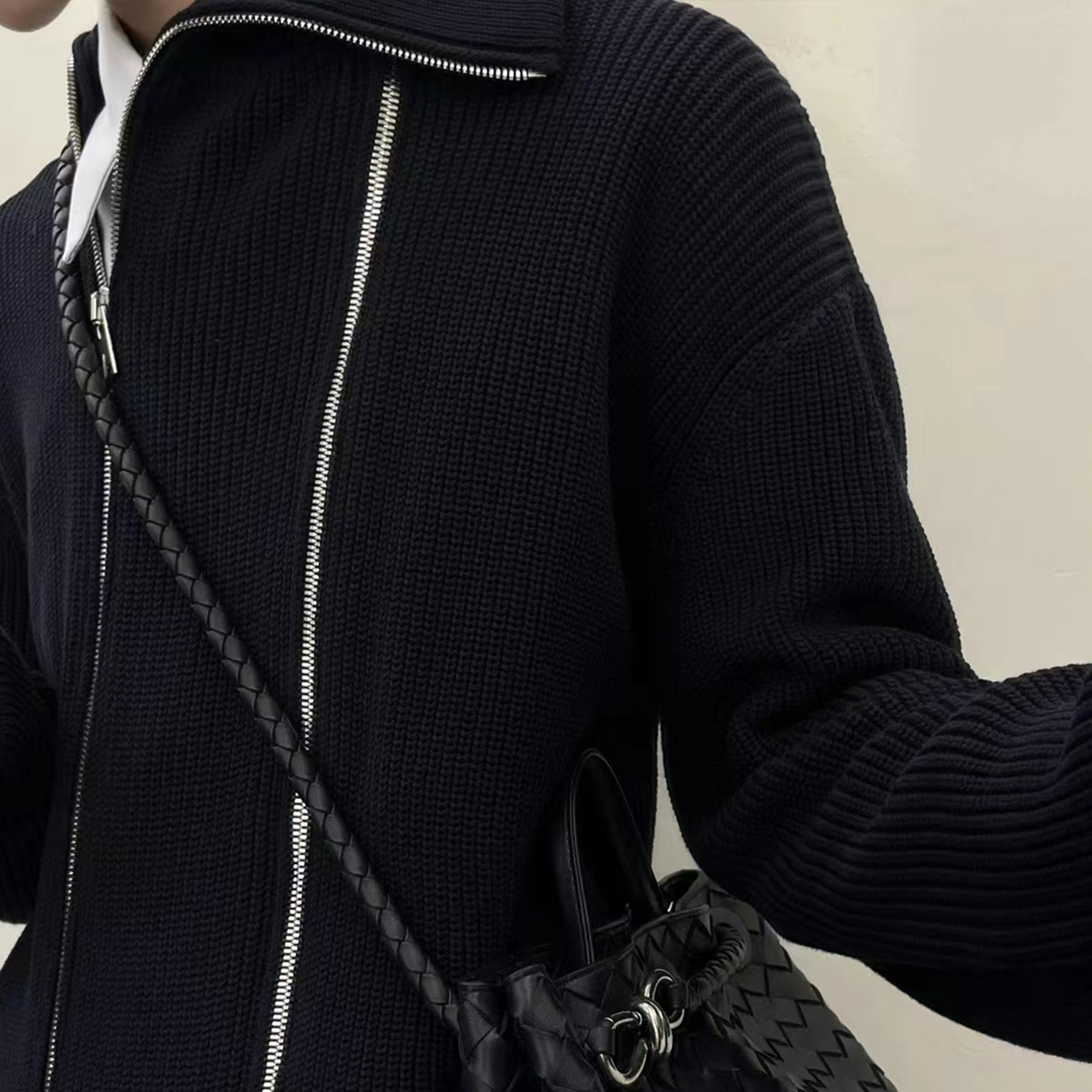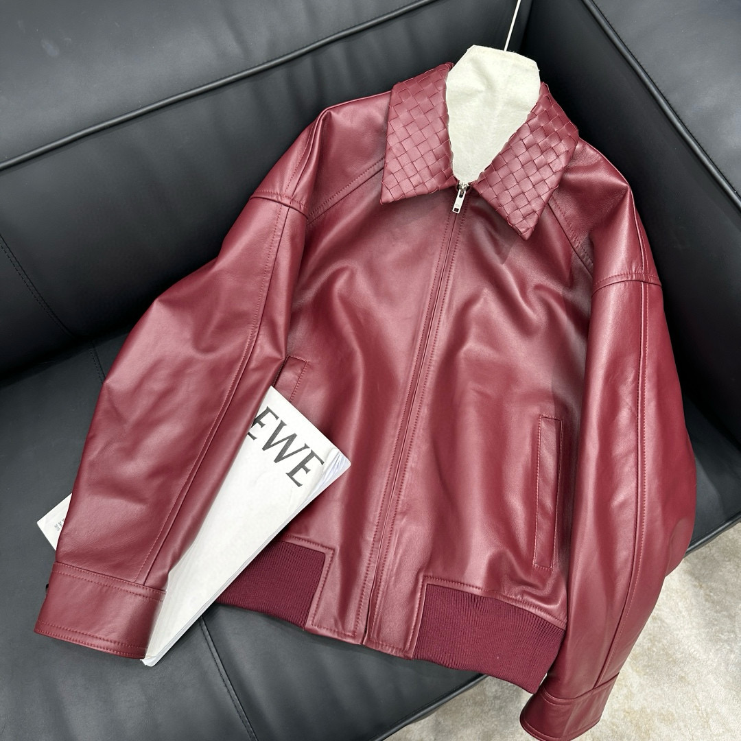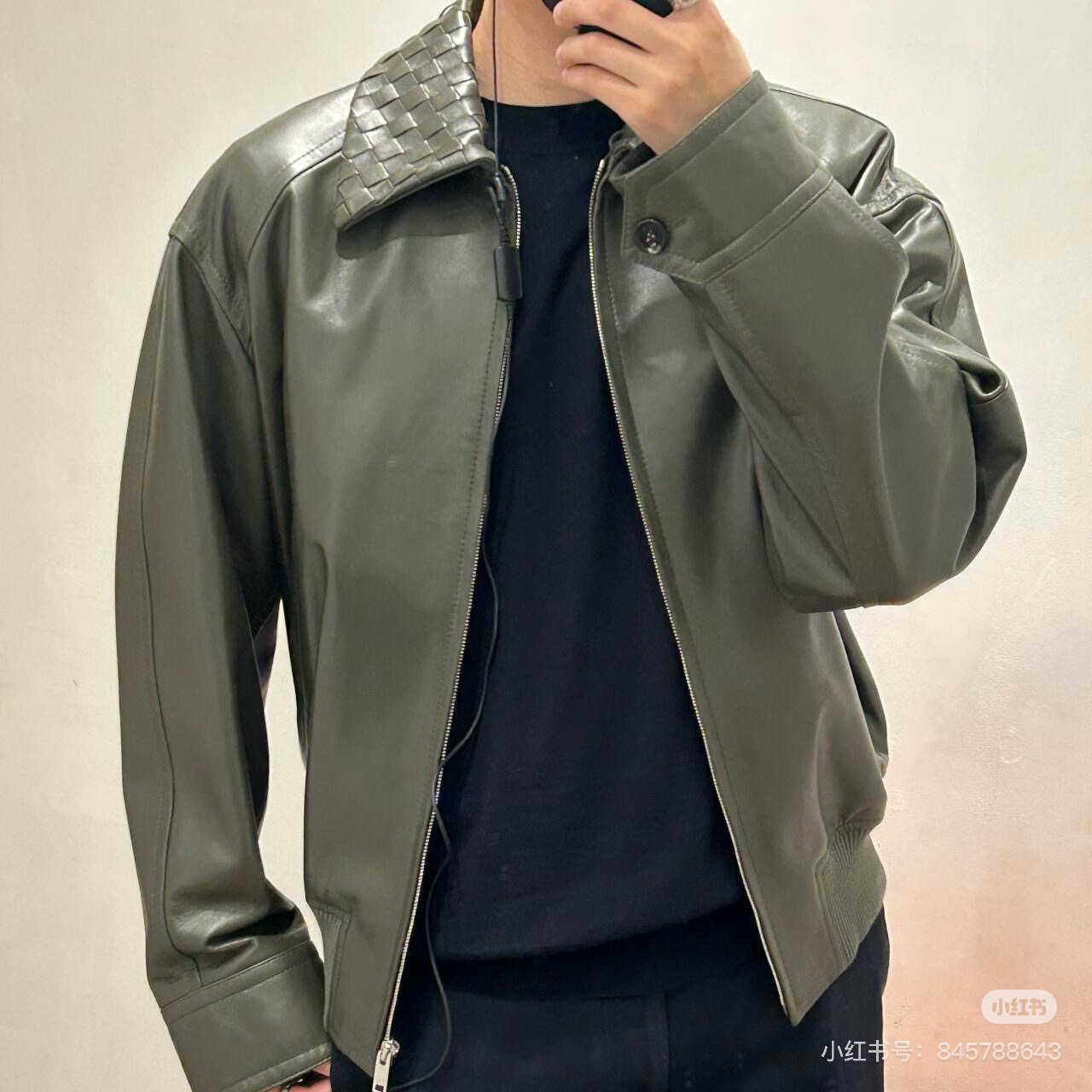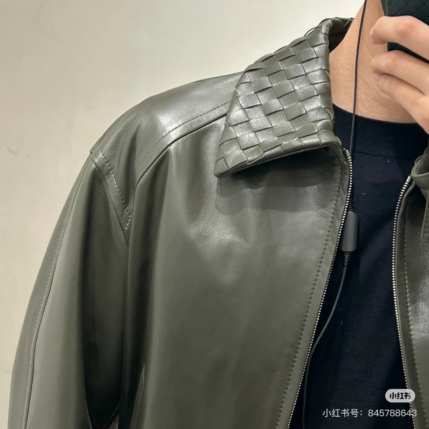 NIGO Bottega Veneta Men's Spring And Autumn Woven Lapel Zipper Solid Color Leather Long Sleeve Jacket Ngvp #nigo1412
