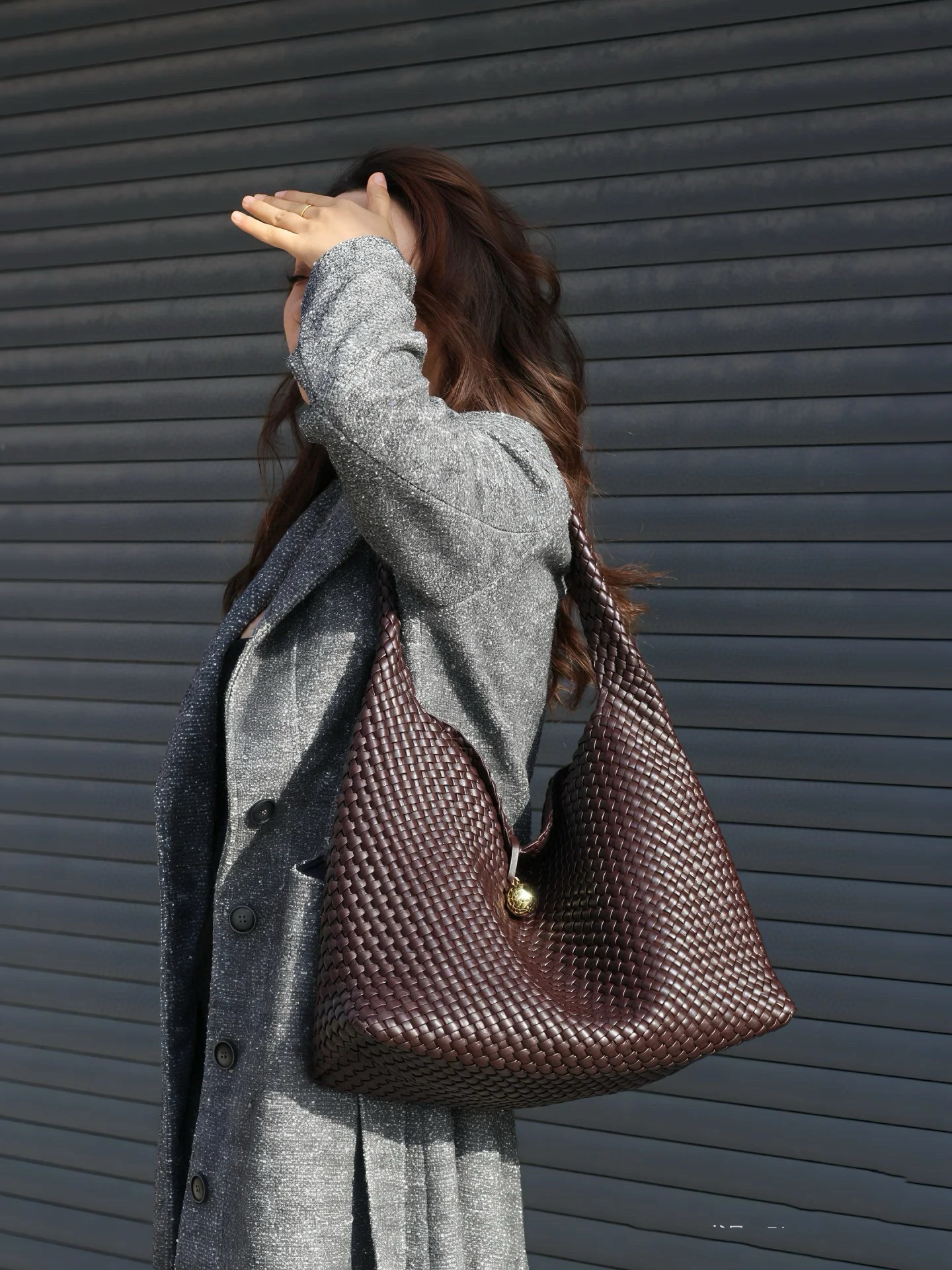 NIGO Bottega Veneta Tosca Woven Solid Colour Woven Leather Metallic Ball Decoration Flap Closure Handbag Shoulder Bag Bags #nigo76882