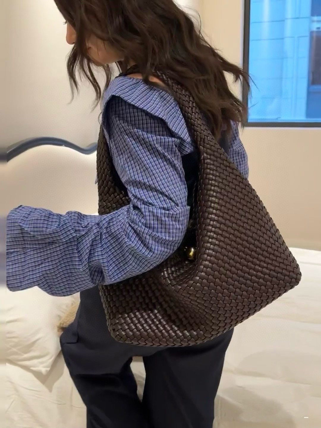NIGO Bottega Veneta Large Andiamo Women's Woven Solid Color Magnetic Clasp Closure Sheepskin Tote Bag Bags #nigo76912