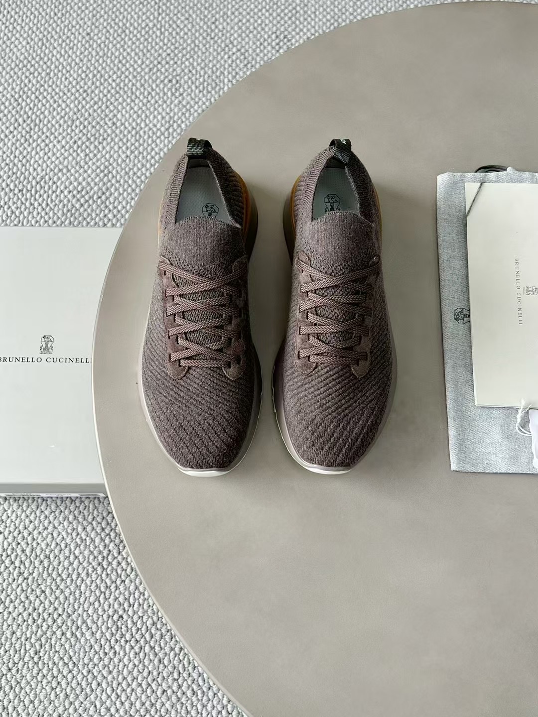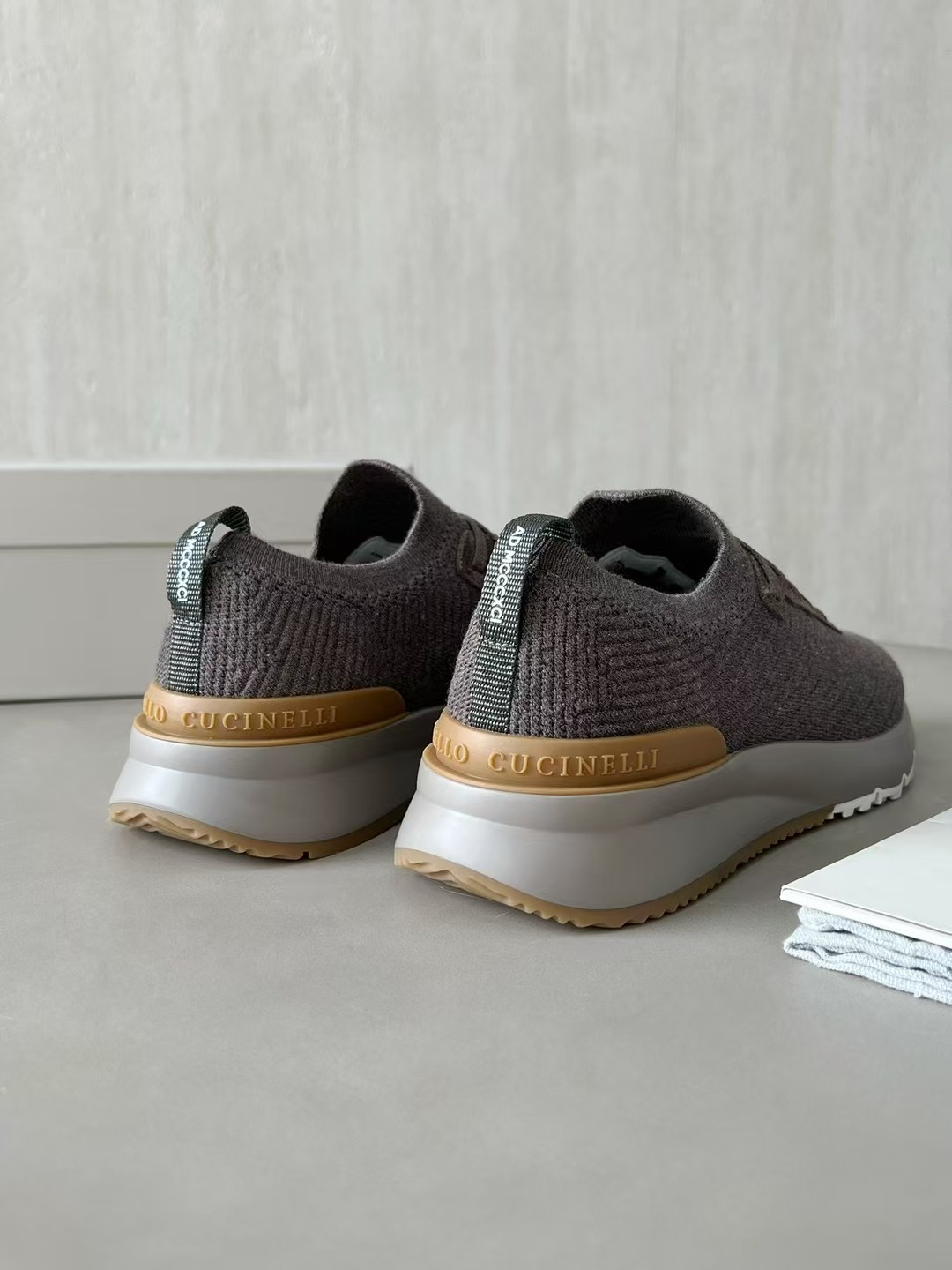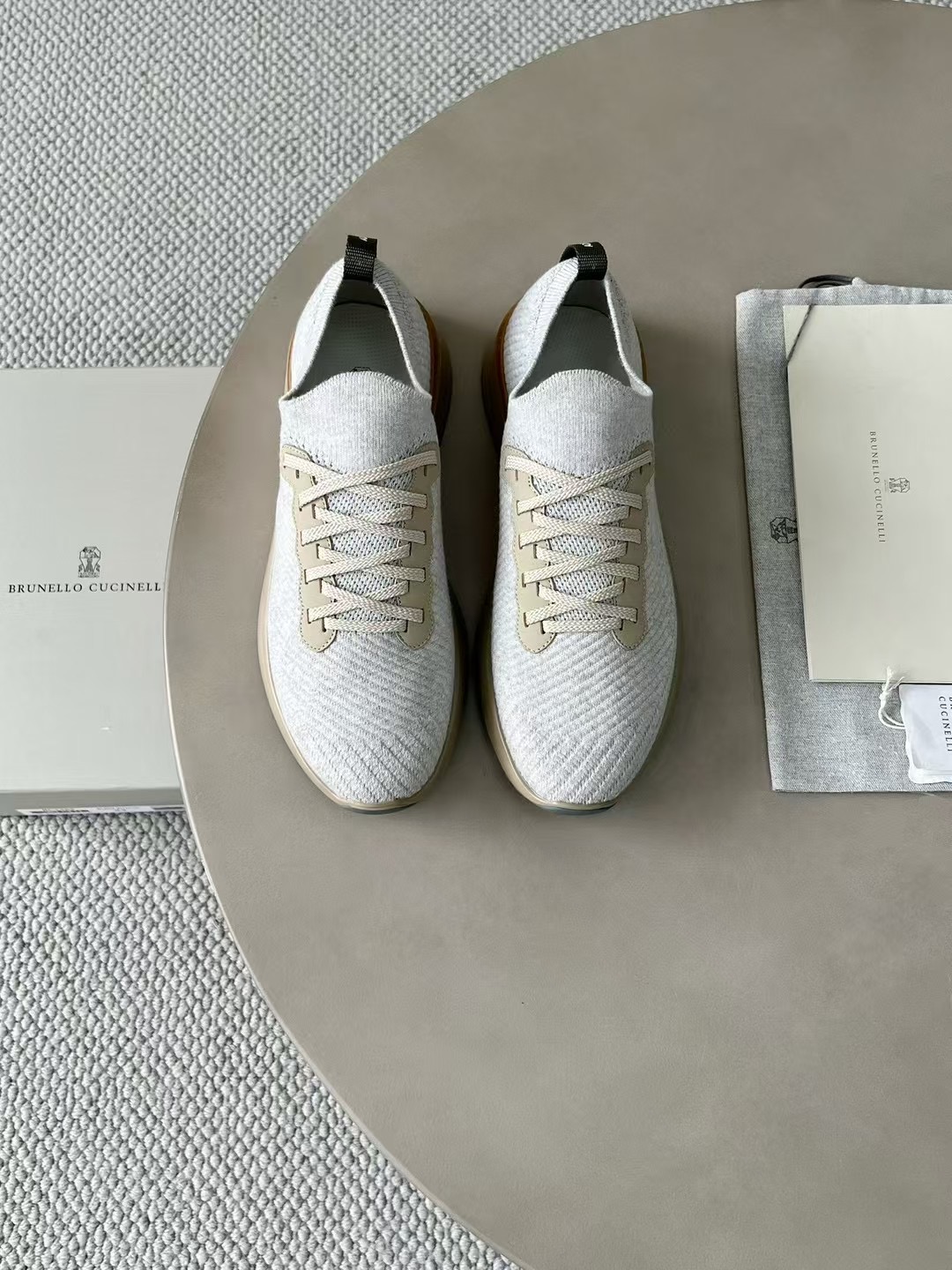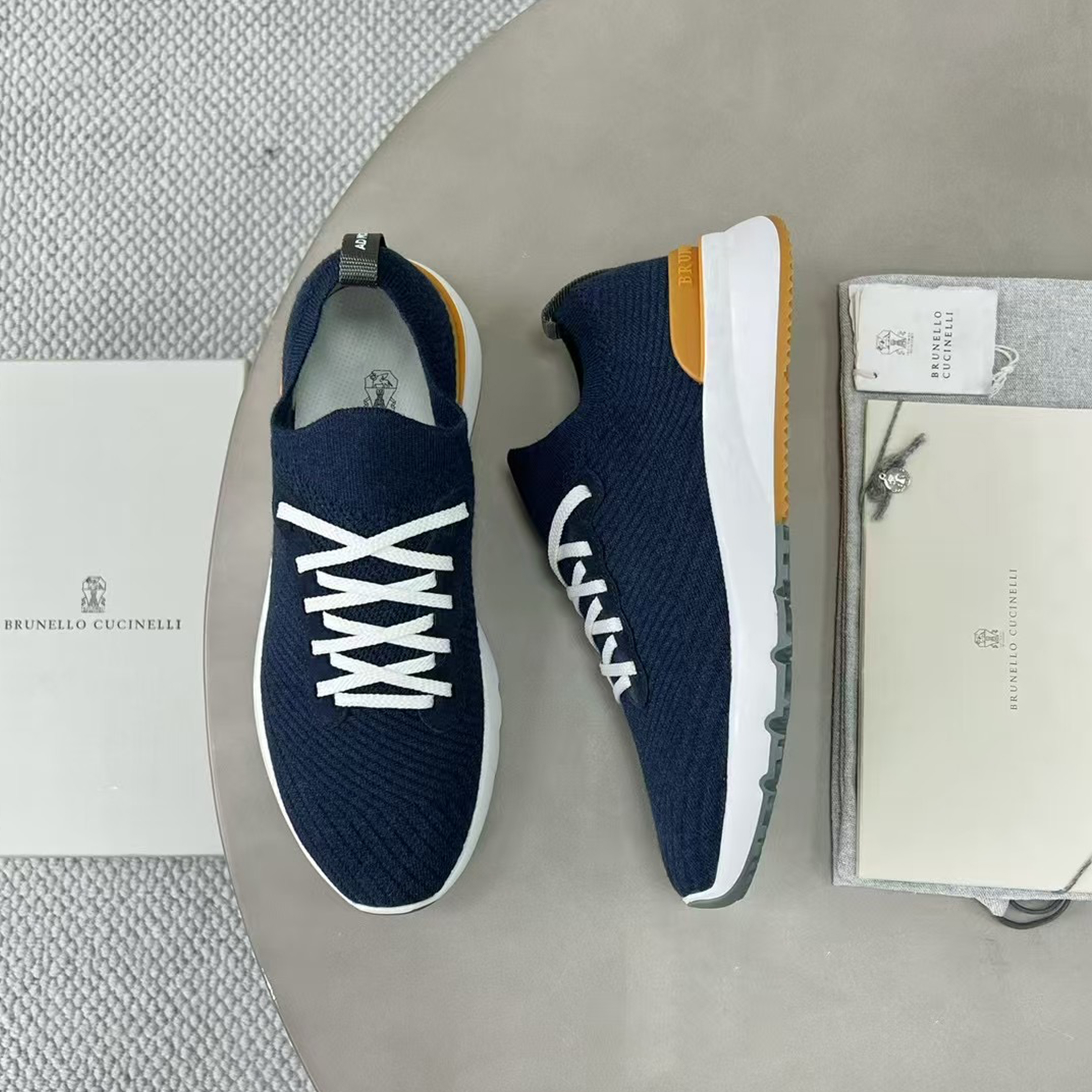 NIGO Brunello Cucinelli Men's Spring Autumn Knitted Cotton Fabric Patchwork Semi-Polished Calfskin Sneakers Fashion Comfort Sports Running Shoes #nigo81233