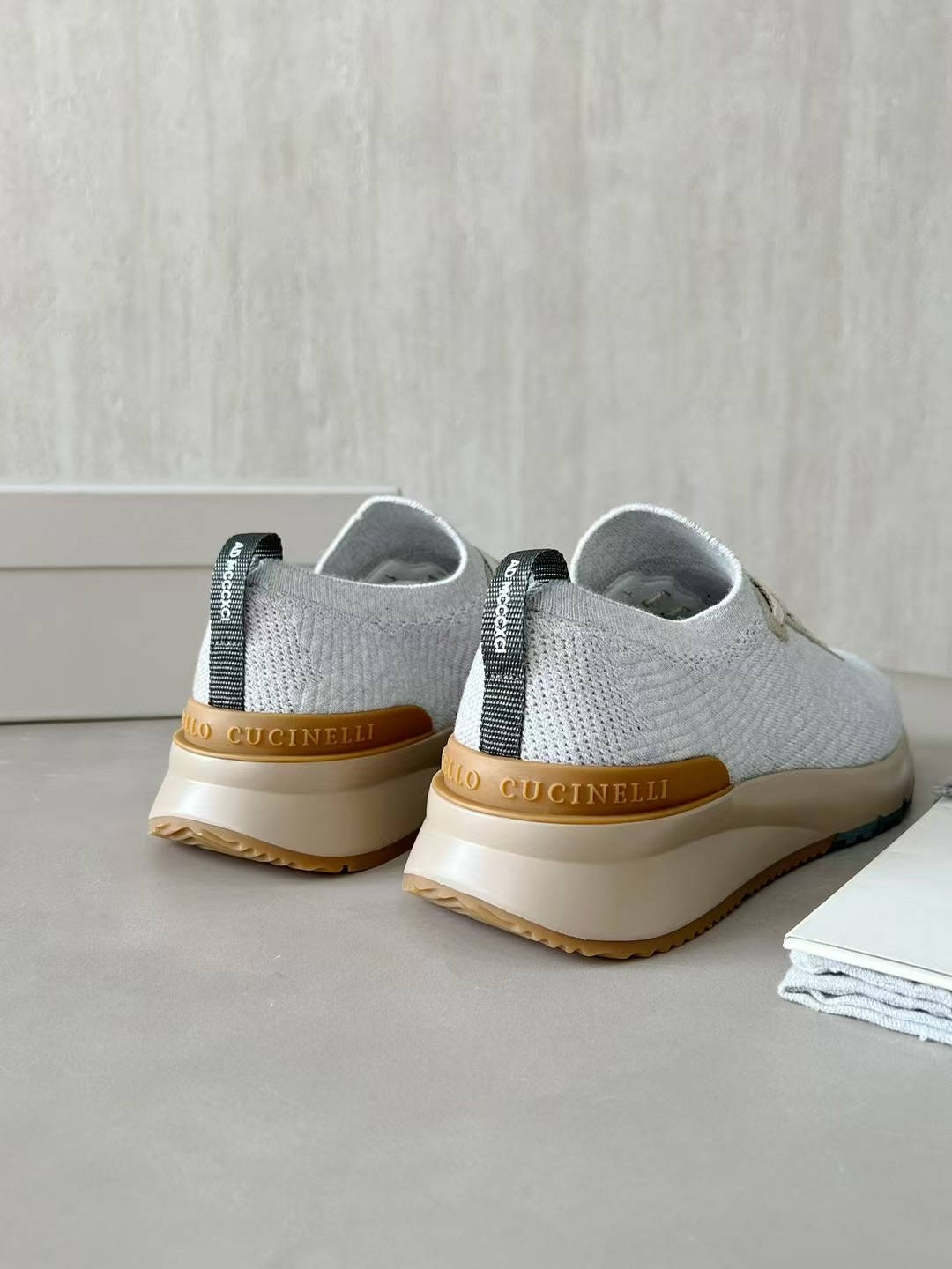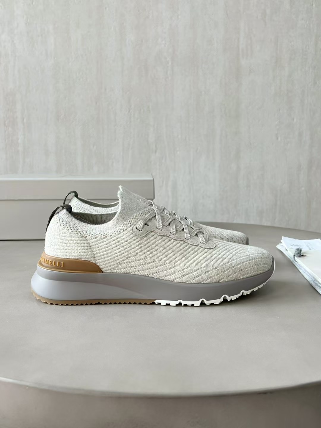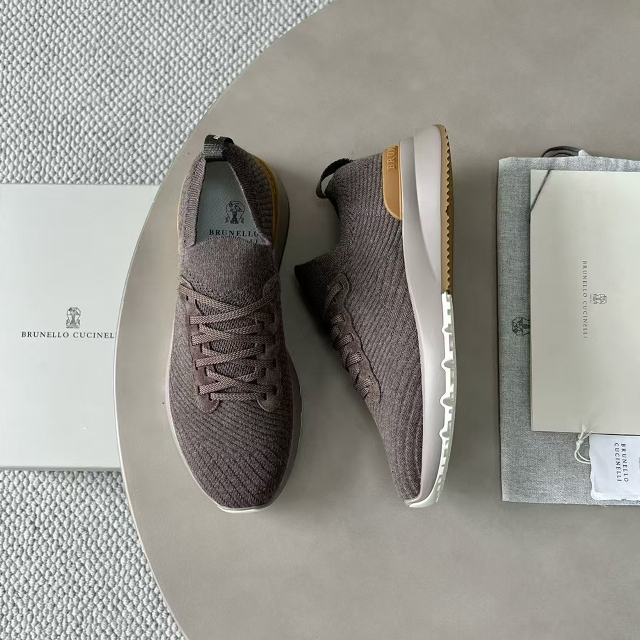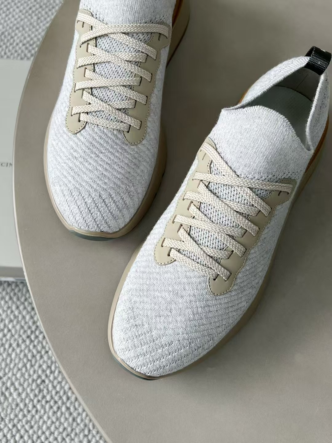 NIGO Brunello Cucinelli Men's Spring Autumn Knitted Cotton Fabric Patchwork Semi-Polished Calfskin Sneakers Fashion Comfort Sports Running Shoes #nigo81233