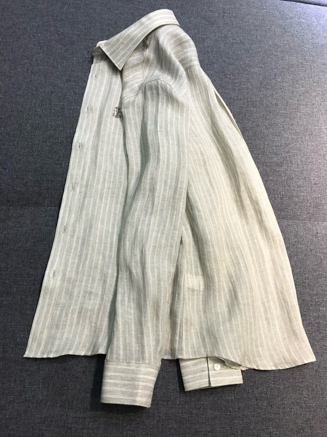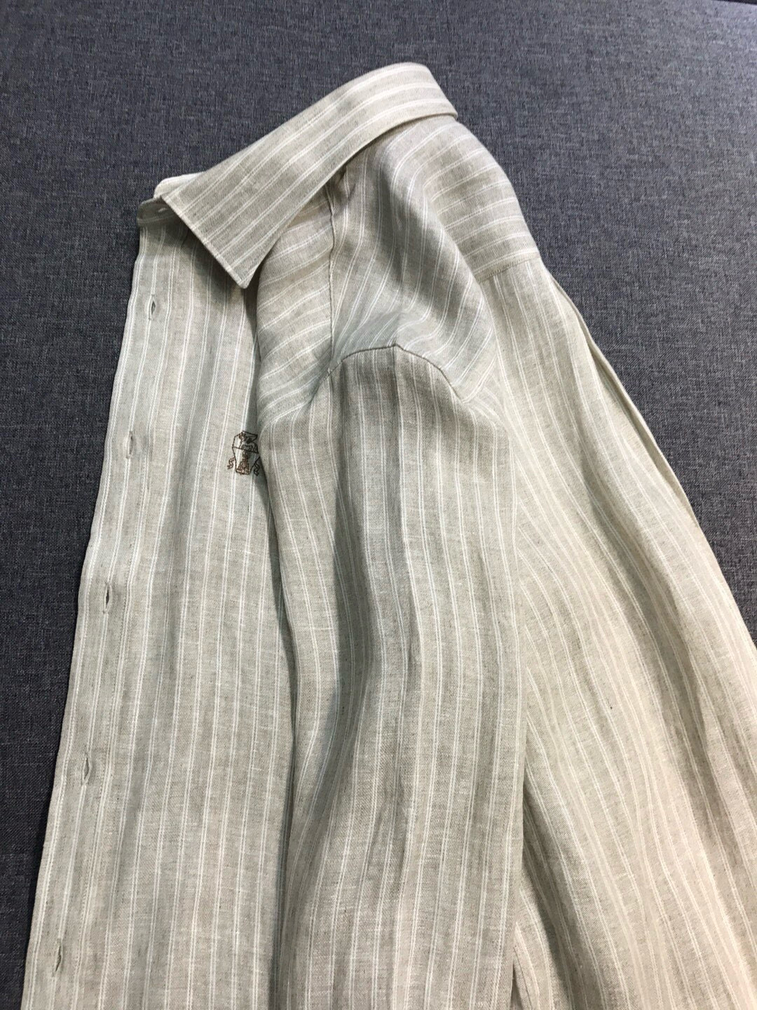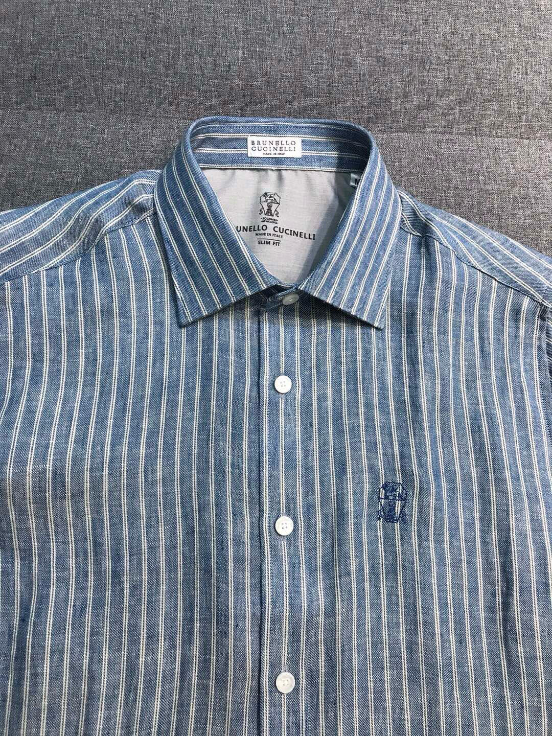 NIGO Brunello Cucinelli Men's Spring/Fall Fashion Casual Striped Collared Logo Business Linen Long Sleeve Shirt #nigo78637