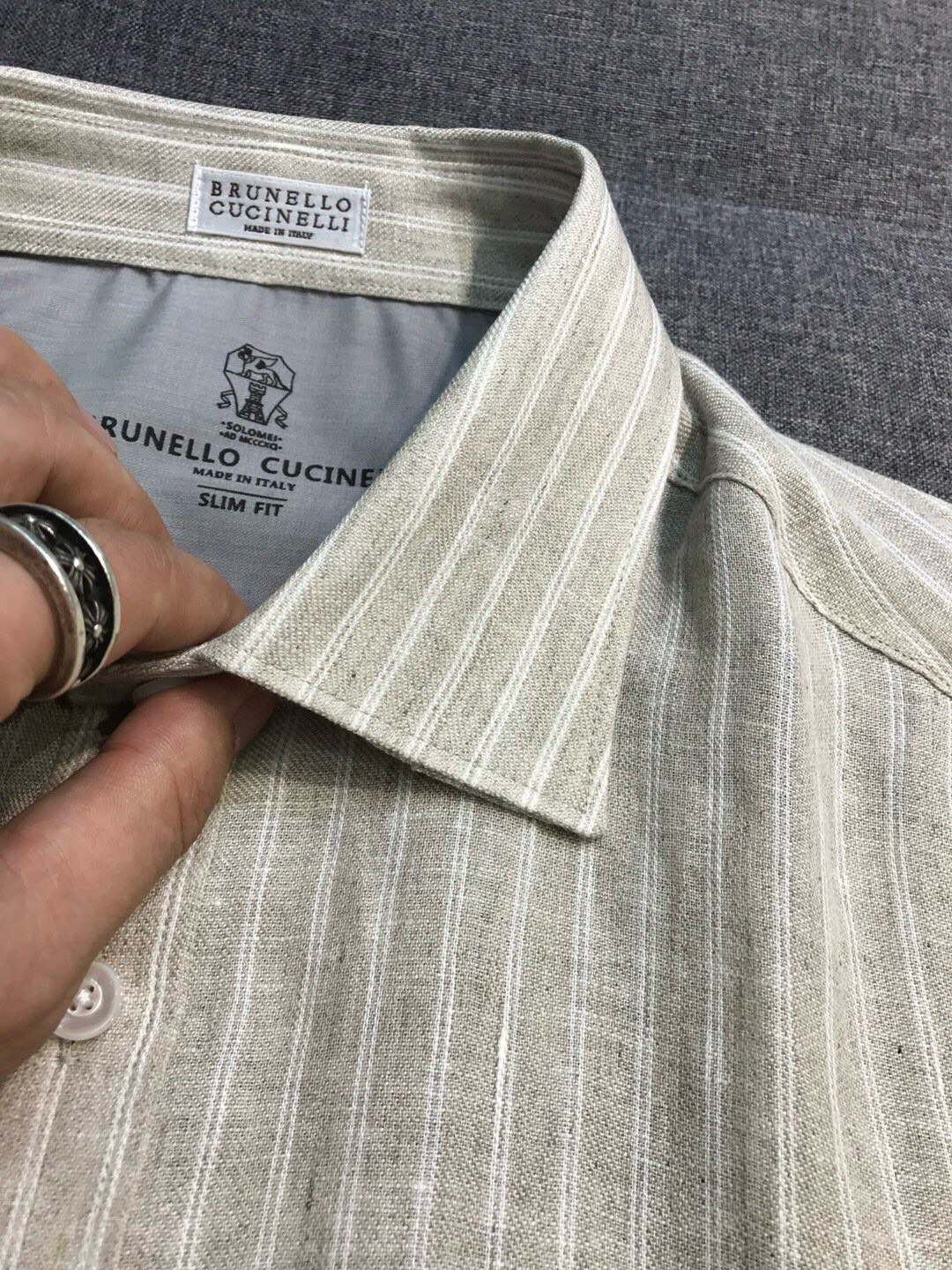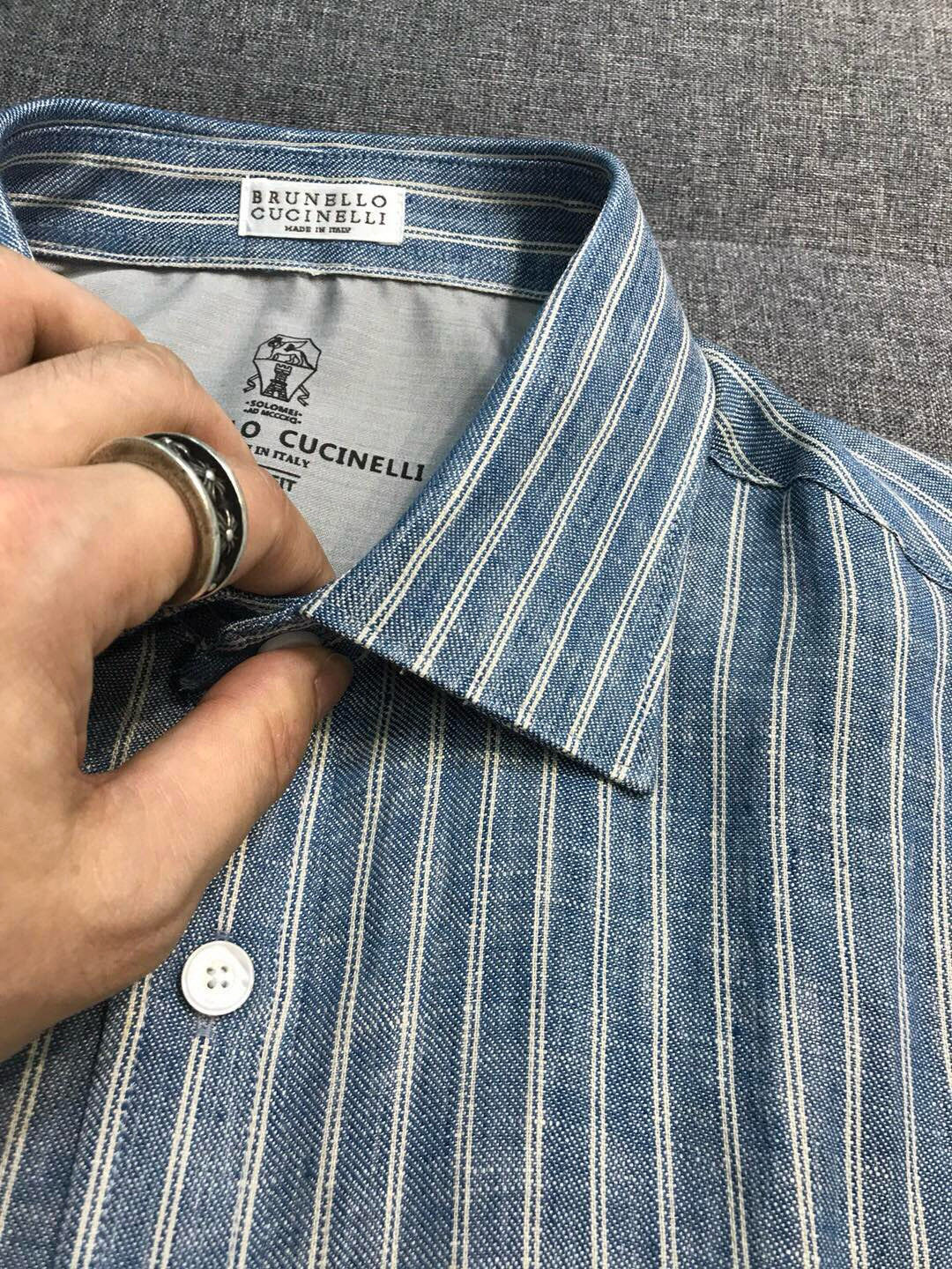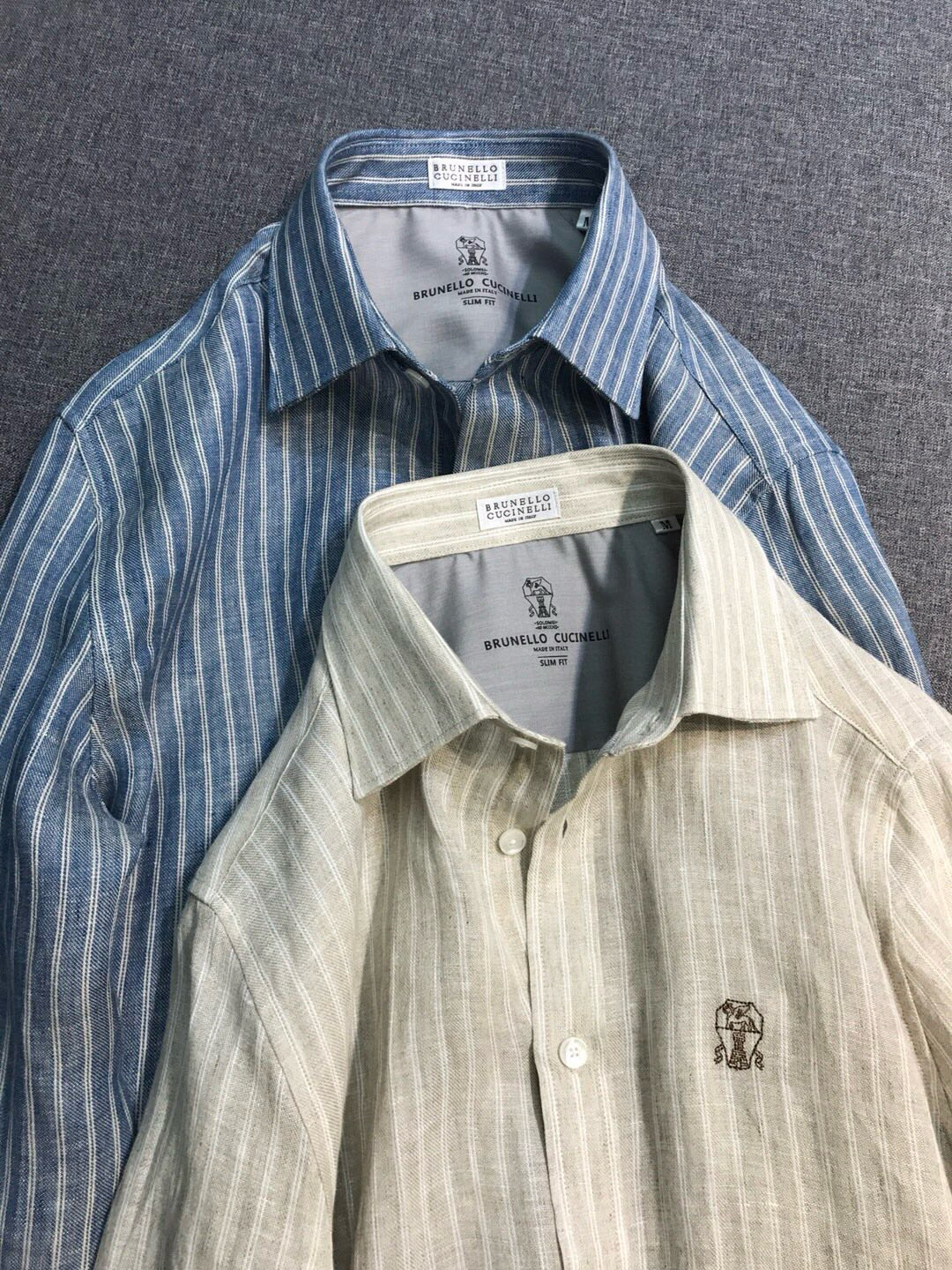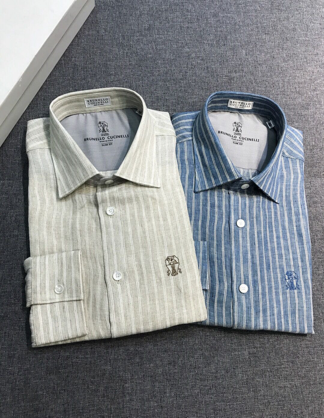 NIGO Brunello Cucinelli Men's Spring/Fall Fashion Casual Striped Collared Logo Business Linen Long Sleeve Shirt #nigo78637