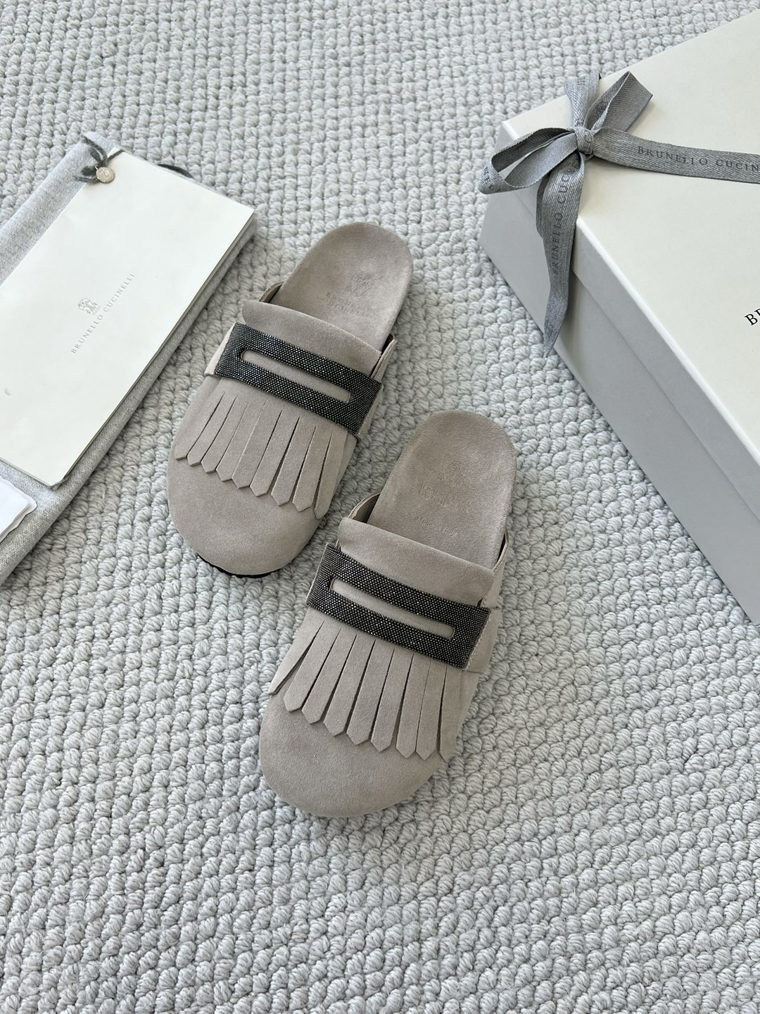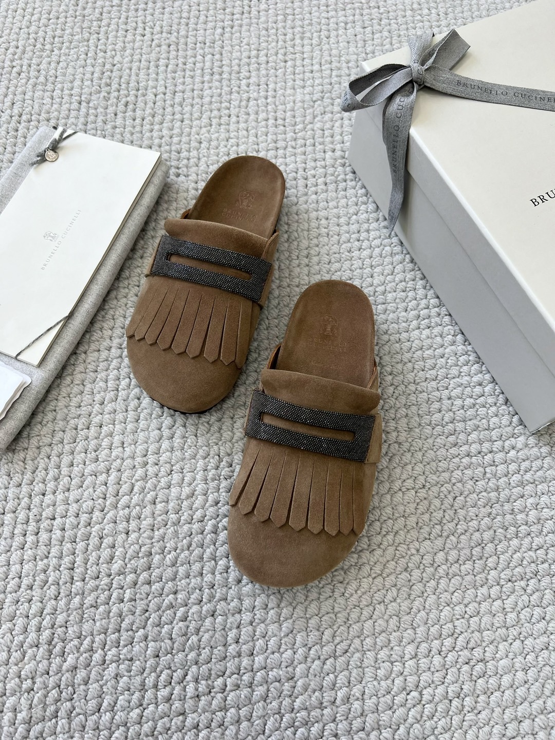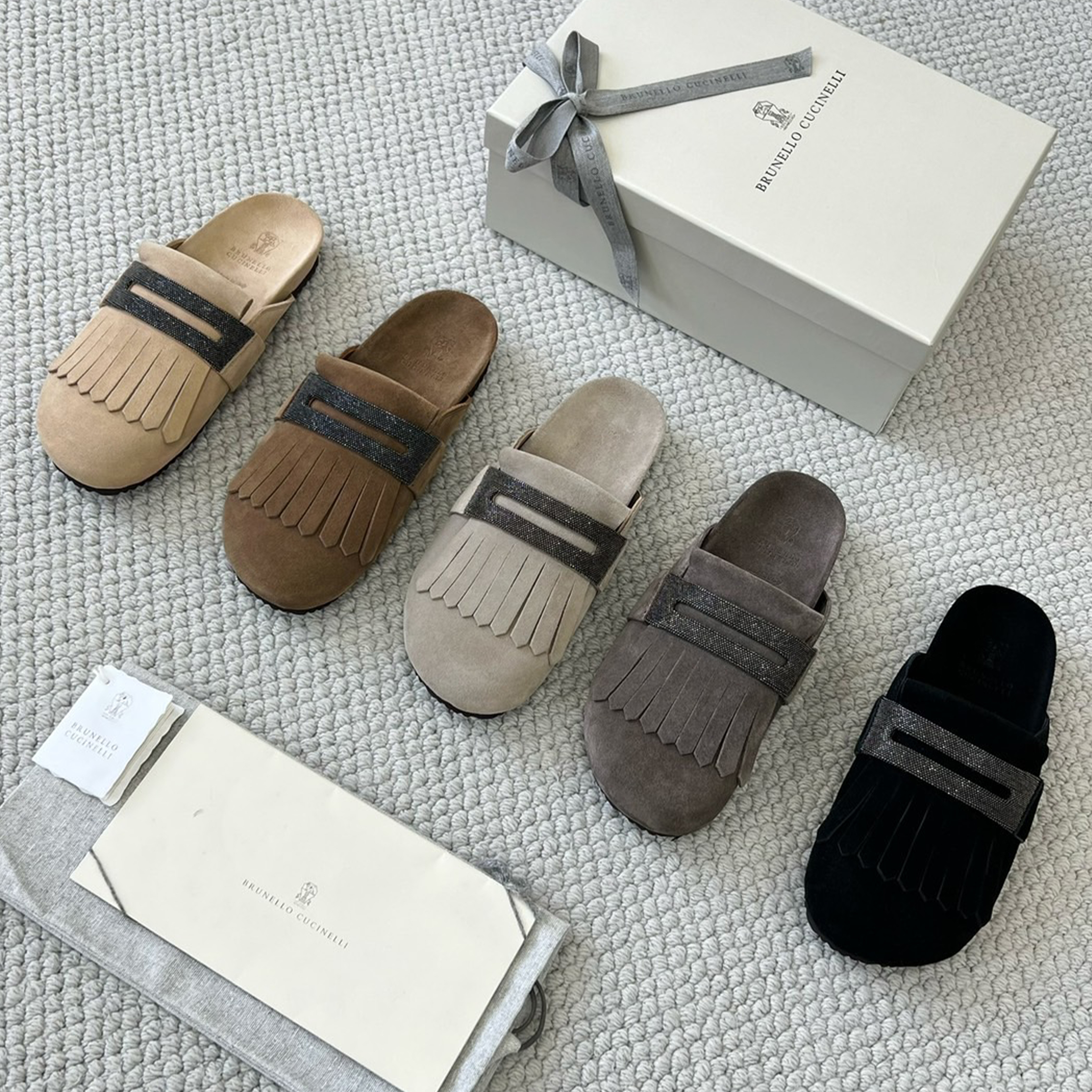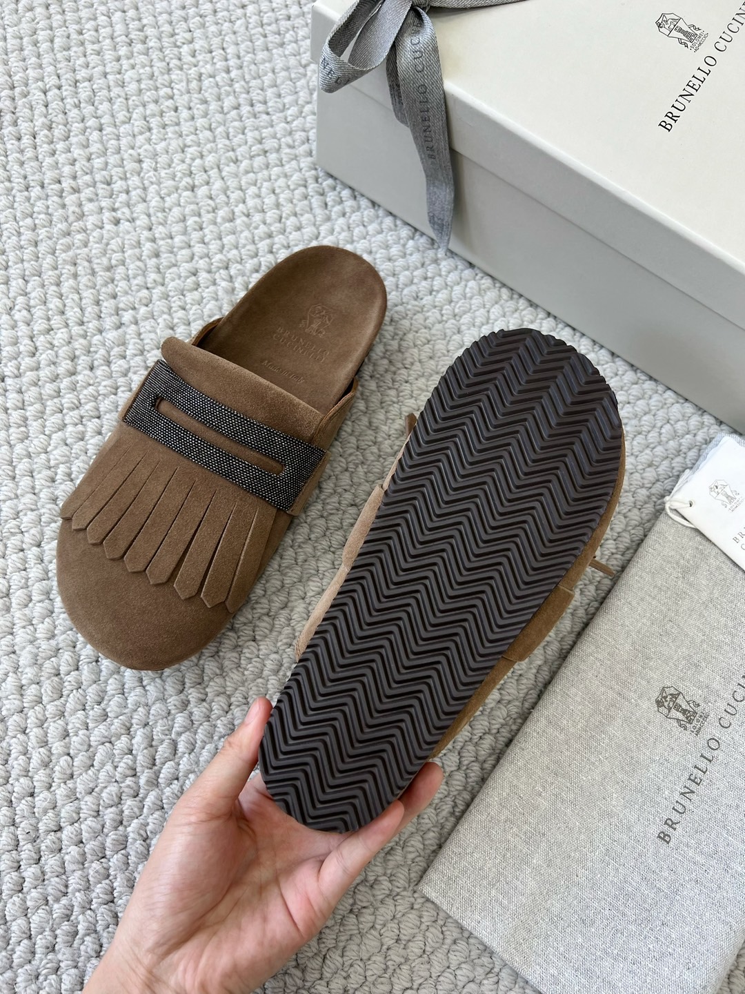 NIGO Brunello Cucinelli Monili Embellished Loafers Mule Shoes Women‘s Suede Slippers Solid Colour Fashion Trend Casual Comfort Slippers Sandals Ngvp #nigo1489