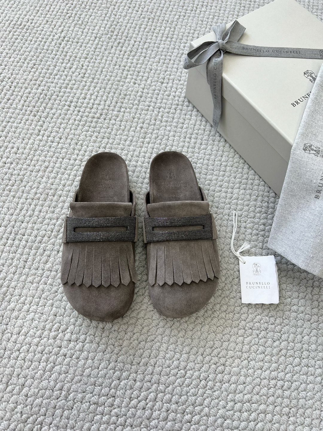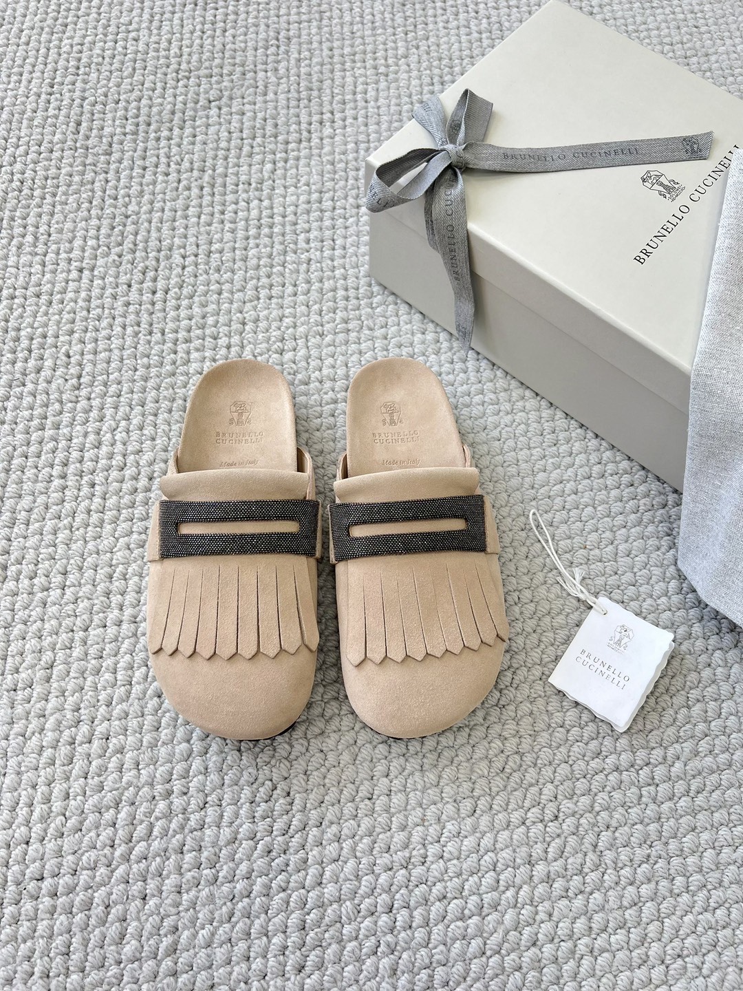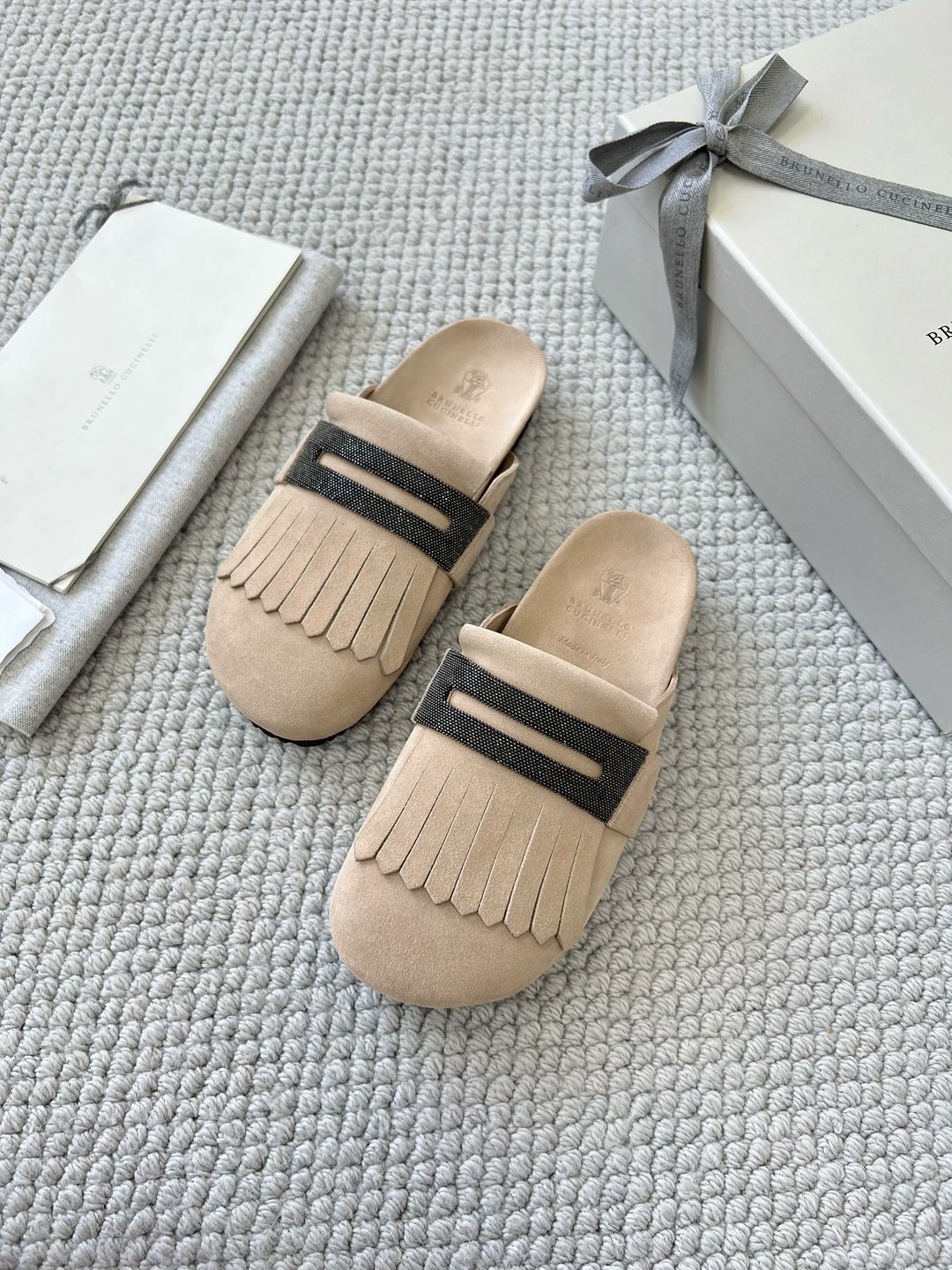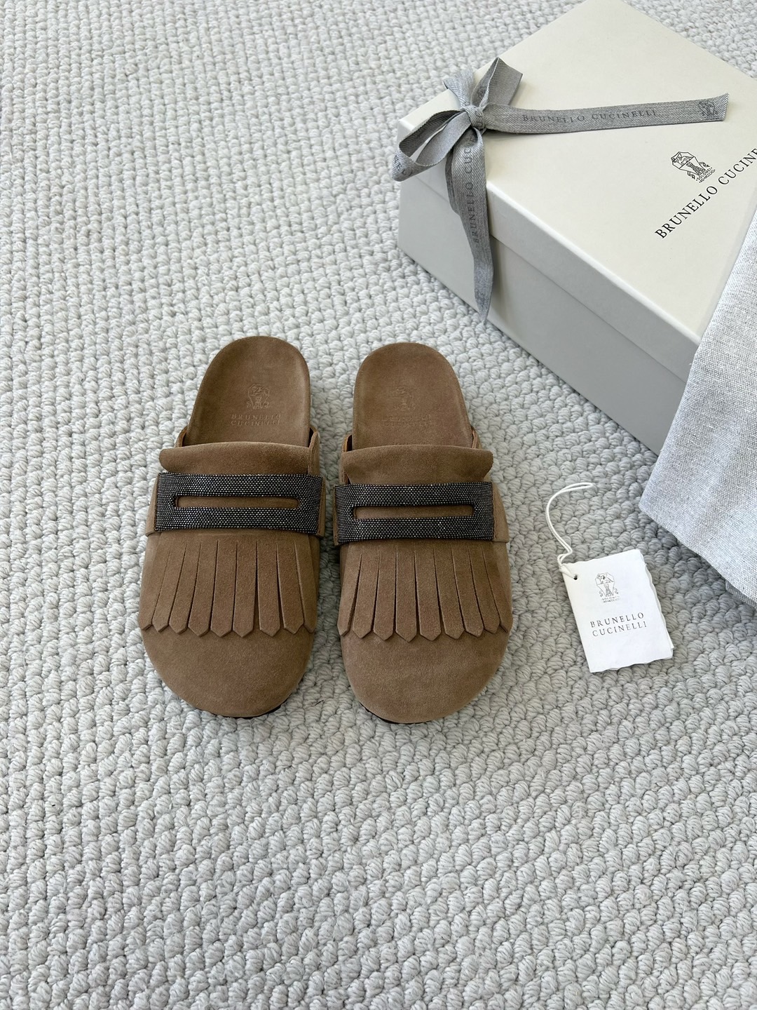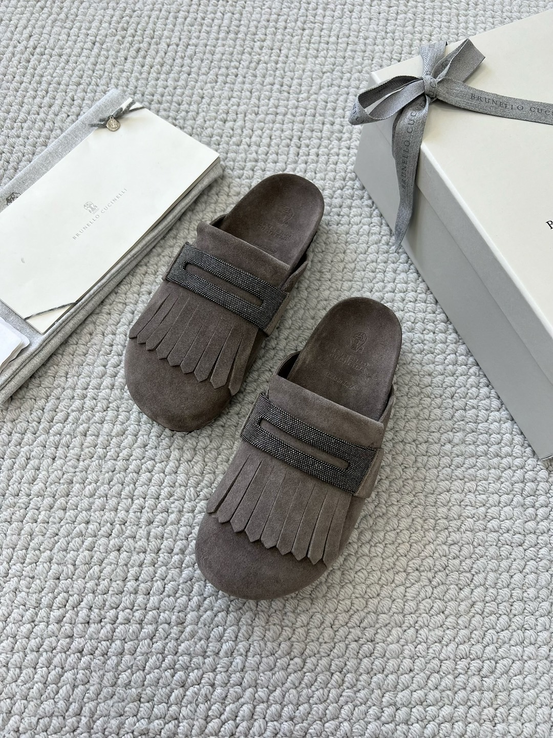 NIGO Brunello Cucinelli Monili Embellished Loafers Mule Shoes Women‘s Suede Slippers Solid Colour Fashion Trend Casual Comfort Slippers Sandals Ngvp #nigo1489