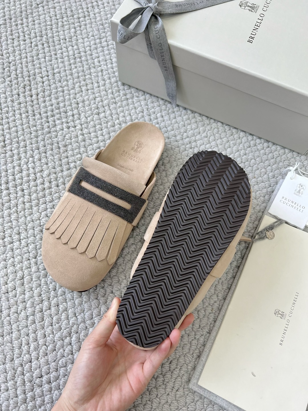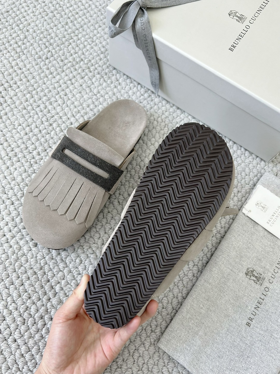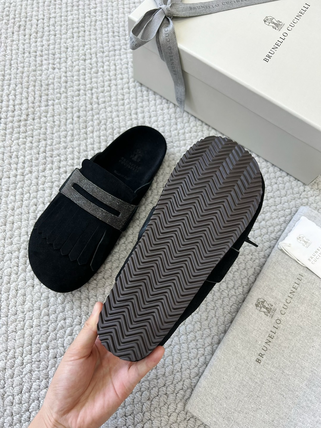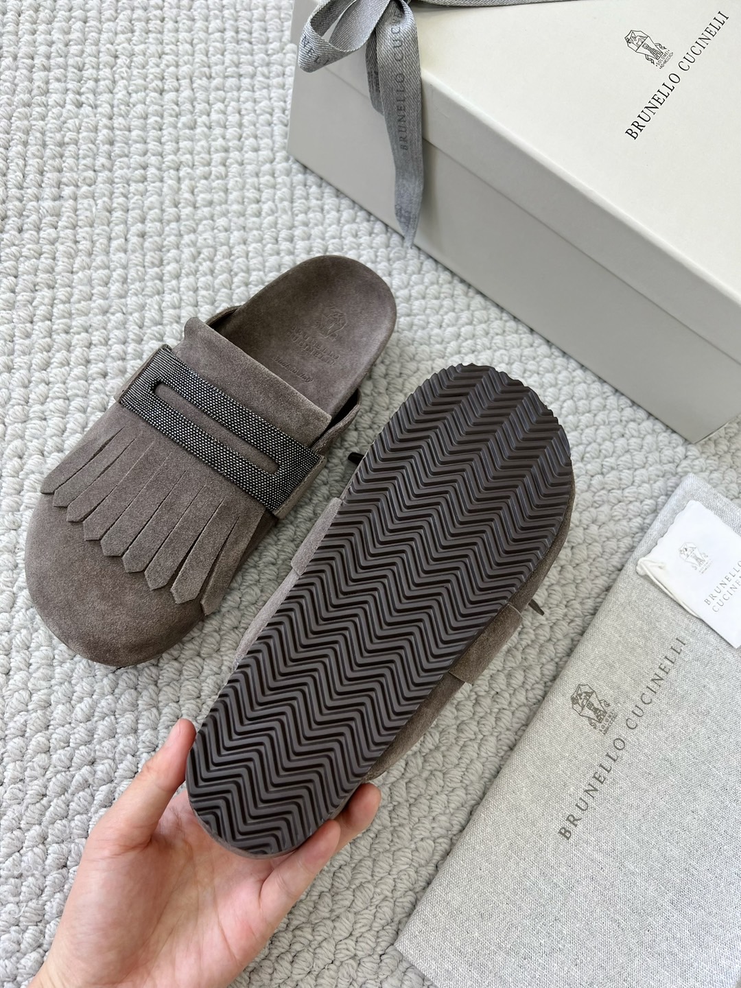 NIGO Brunello Cucinelli Monili Embellished Loafers Mule Shoes Women‘s Suede Slippers Solid Colour Fashion Trend Casual Comfort Slippers Sandals Ngvp #nigo1489