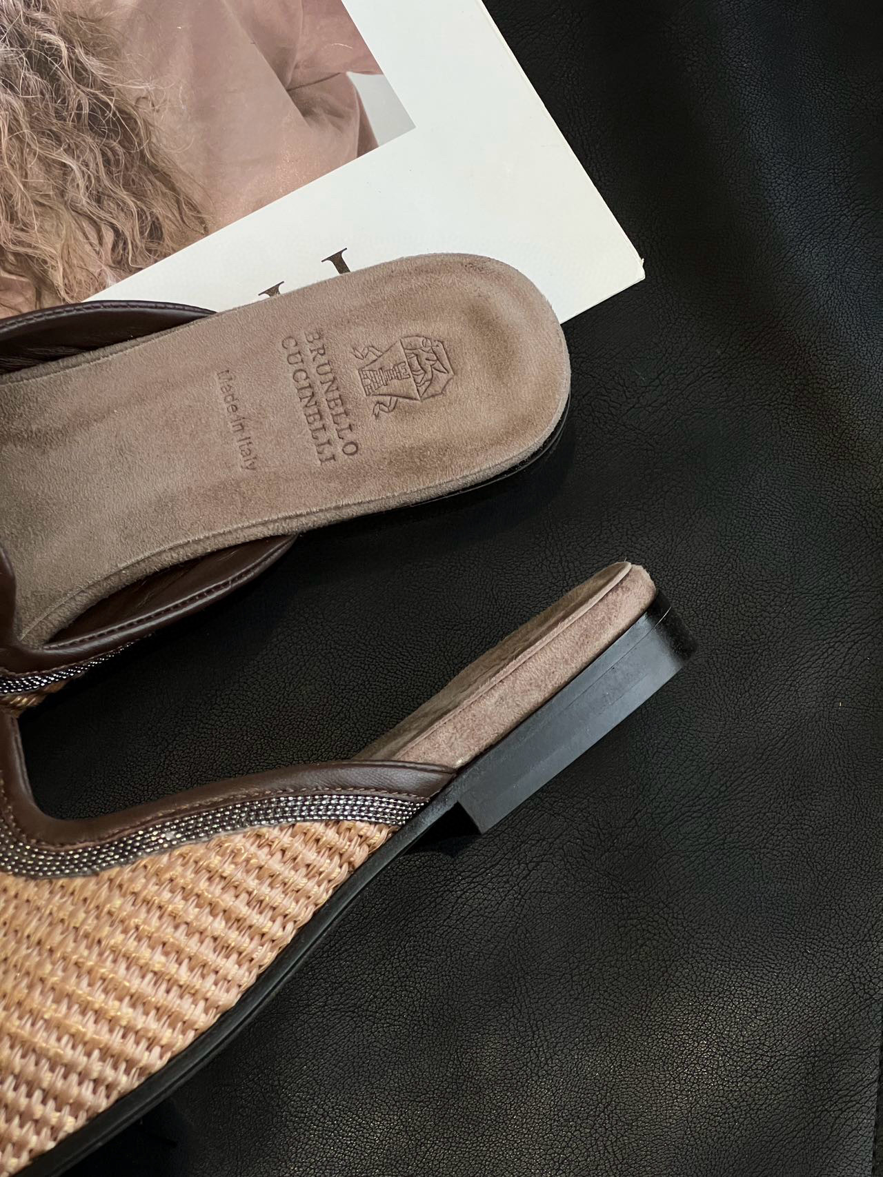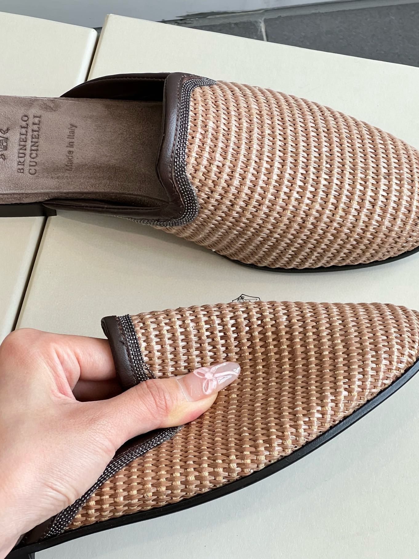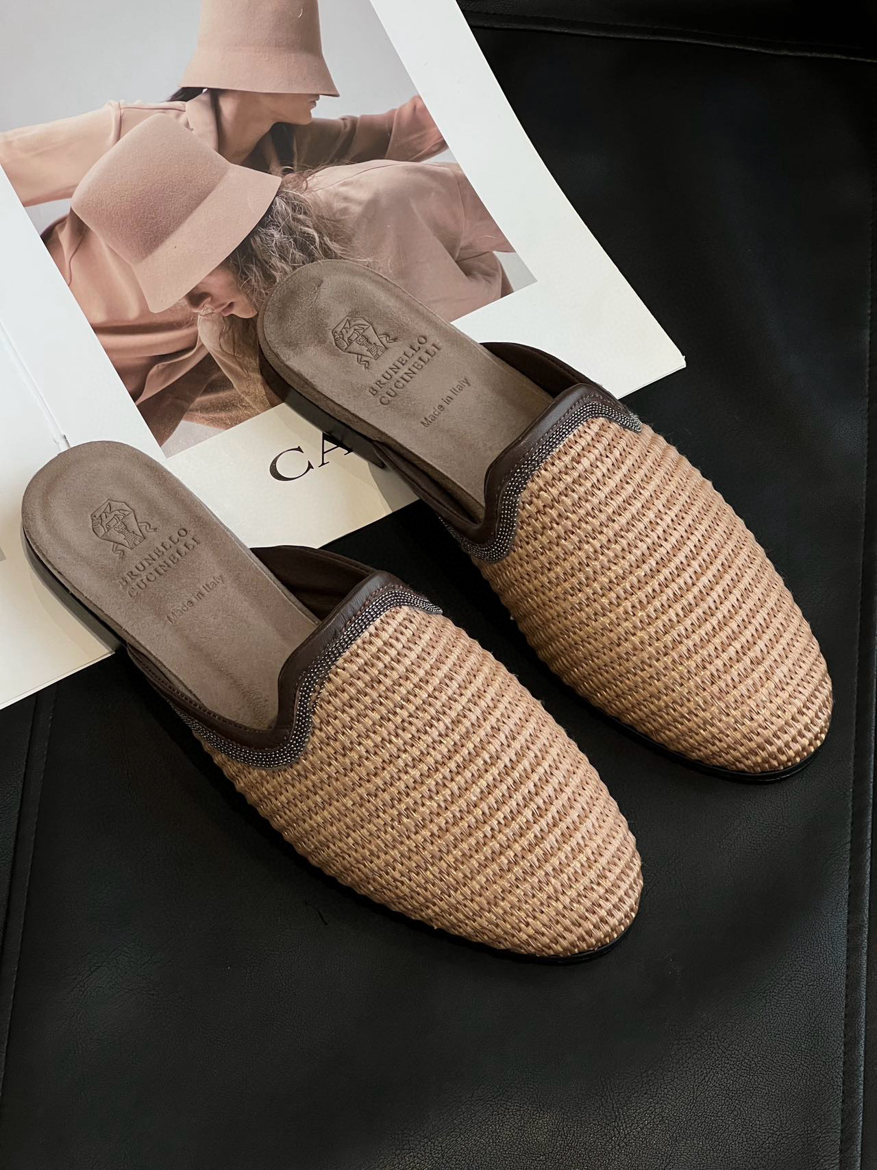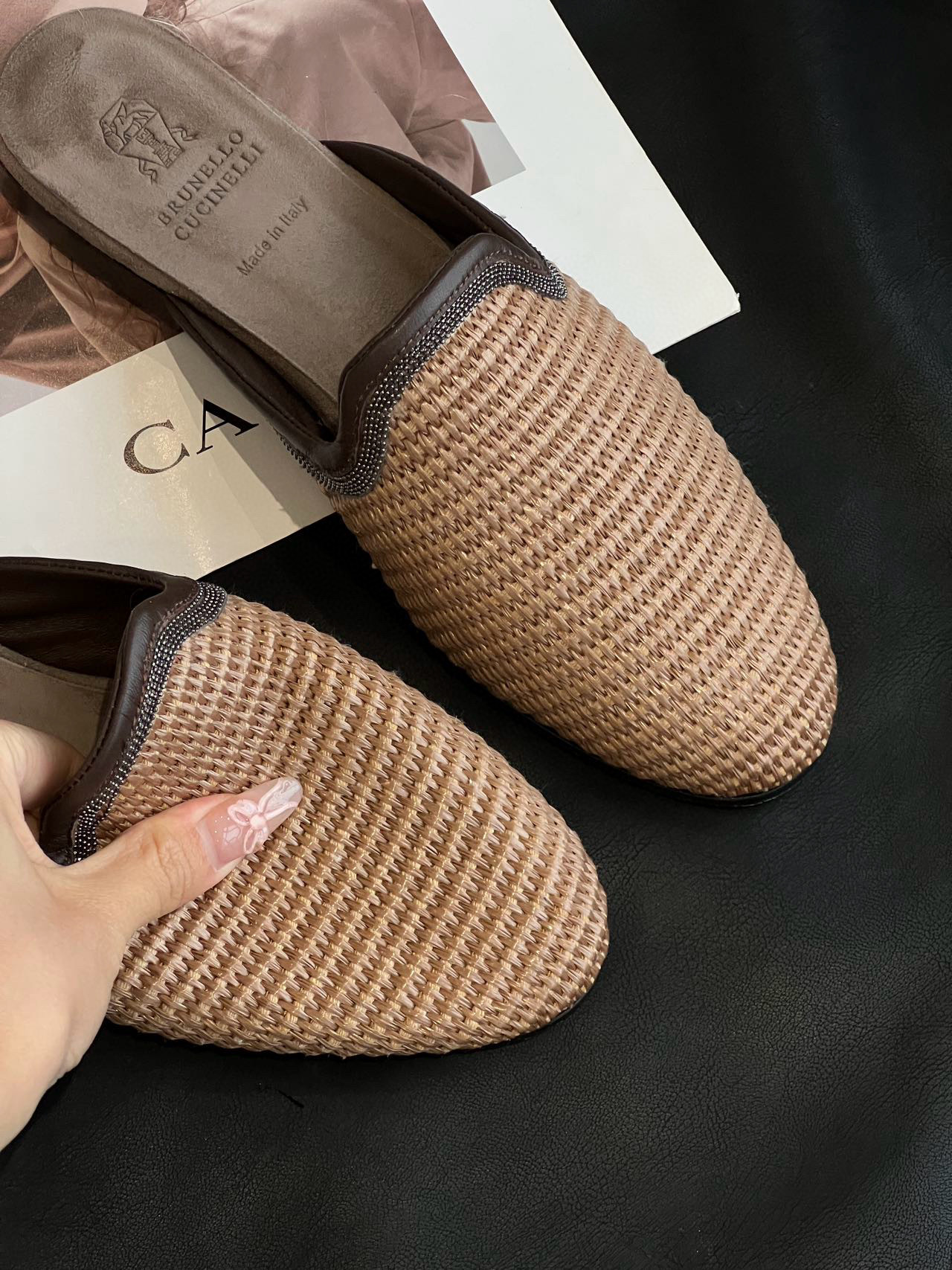 NIGO Brunello Cucinelli Techno Raffia Slippers With Precious Trim Women's Fashion Breathable Casual Shoes Comfortable Flat Heel Sandals 2cm Ngvp #nigo1589